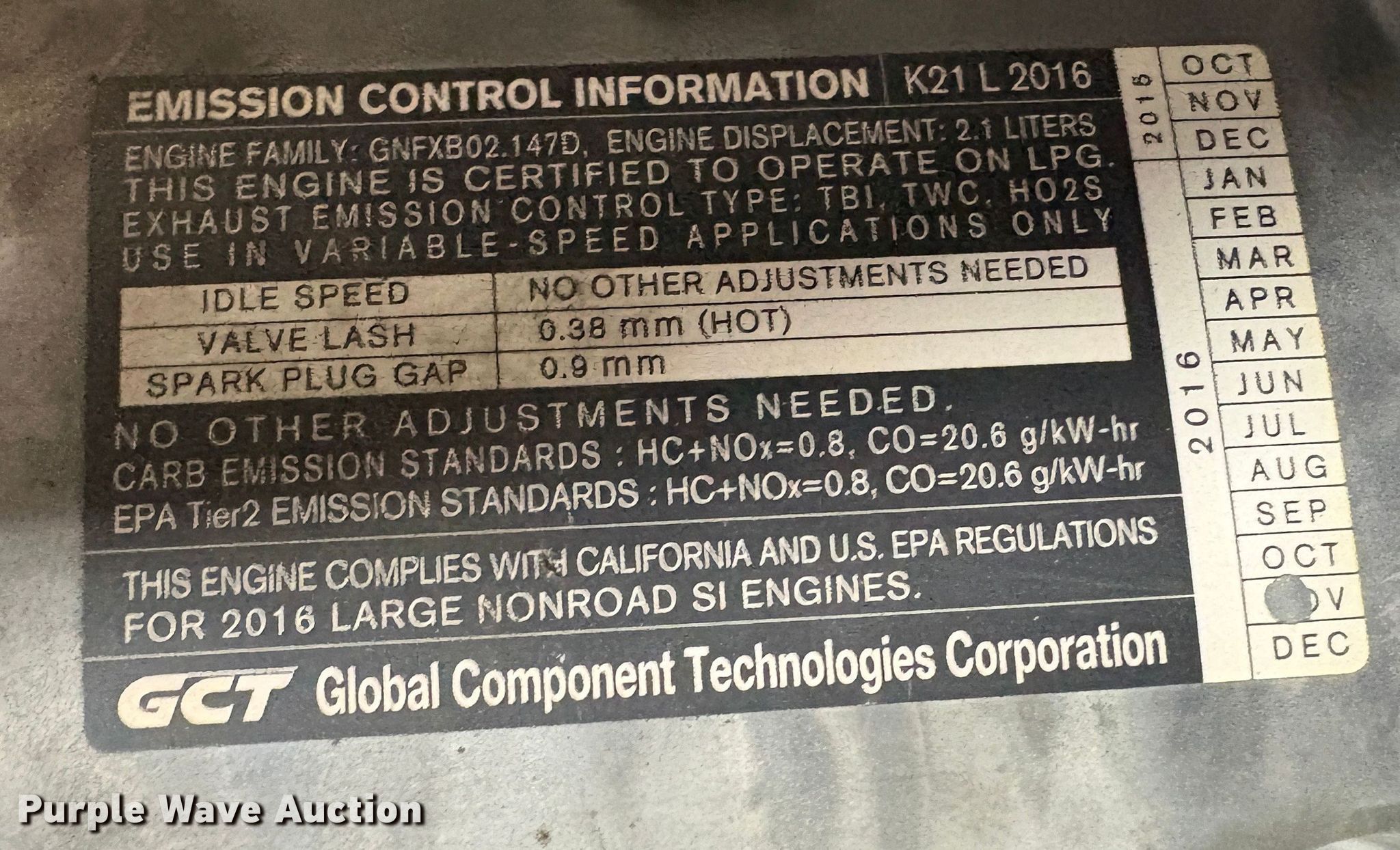 2017 UniCarriers CFS40 forklift. Hours: 1,635 on meter, Serial: CP1F1-9N20887, Unit #: SFS2960. Engine GCT K21, Displacement: 2.1L, Cylinders: 4, Fuel type: LPG LP bottle: Not included. Transmission Automatic. Operators station OROPS. Features Maximum lift capacity: 3,000 lbs, Maximum lift height: 203", Collapsed mast height: 86", Mast stages: 3, Side shift, Mast tilt, Fork length: 48". Tires Front: 18x6x12 1/8, Rear: 14x5x10, Solid. Ferguson. Tualatin, OR 97062