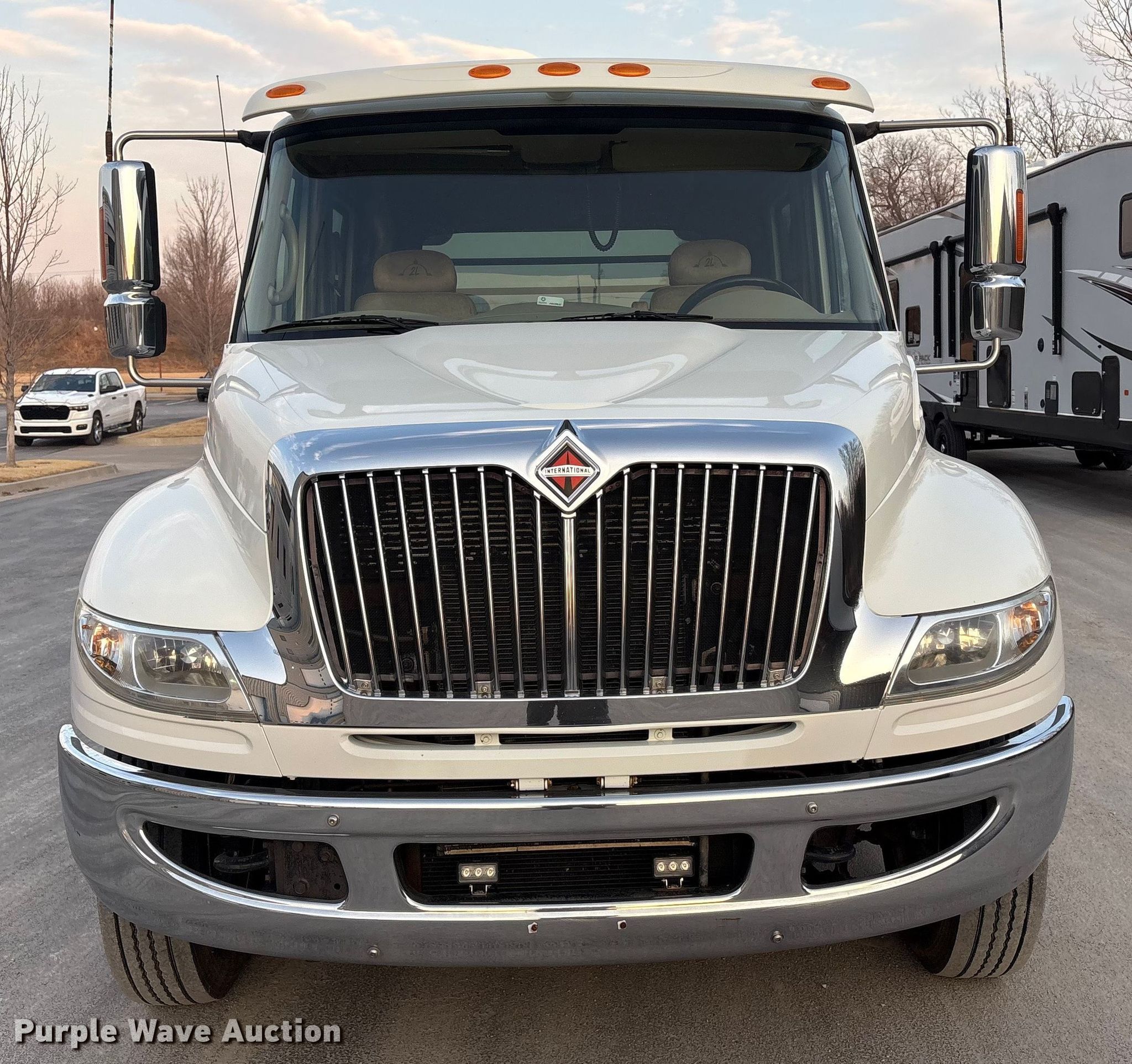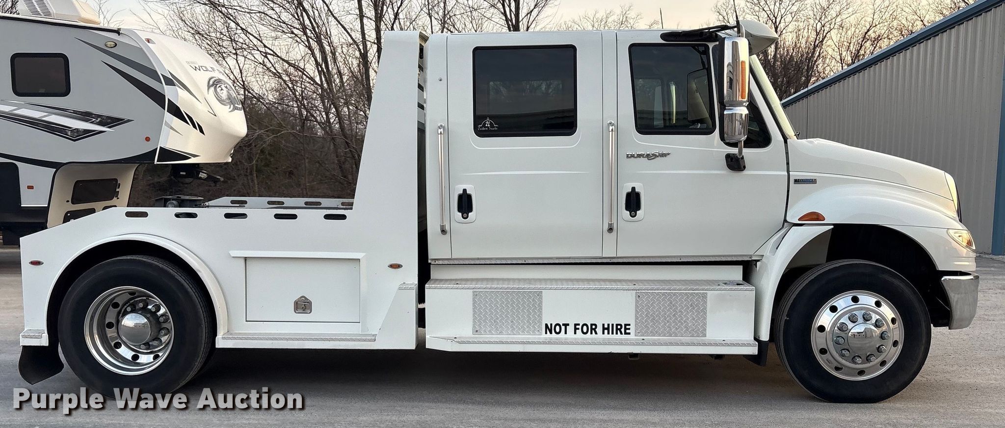 Purple Wave is selling a used Flat Bed Truck in Oklahoma. This item is a 2009 International DuraStar 4400 SBA LP Crew Cab flatbed truck with the following: Miles: 156,466 on odometer, Hours: 4,131 on meter, VIN: 1HTMRAZK49H039743