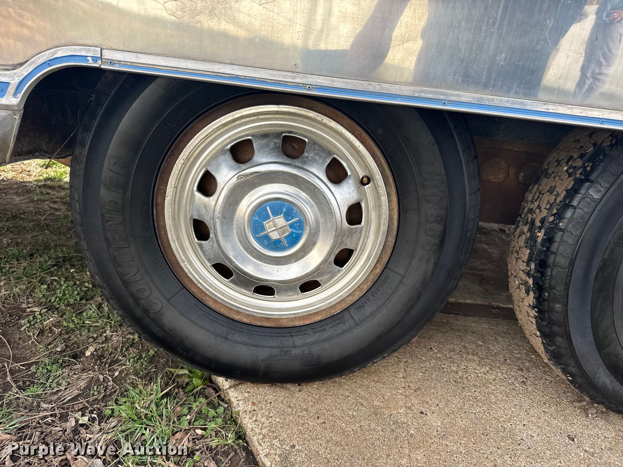 1973 Airstream Sovereign camper. Camper length: 31', VIN: 131A3S2376. Chassis Axles: Tandem, Suspension: Spring, Brakes: Electric, GVWR: 7,100 lbs, GAWR: 3,200 lbs. Interior Kitchen: Sink, Refrigerator, Freezer, Living room: Table, Bathroom, Beds: 1 Bed type: Queen, AC units: 1. Features Awnings: 1 Awning type: Manual, Ball hitch: 2 5/16". Tires Size: 225/75R15. Notes Awning spring damaged. Kansas title. Title distribution may be delayed up to 14 days from verification of funds. Salina, KS 67401