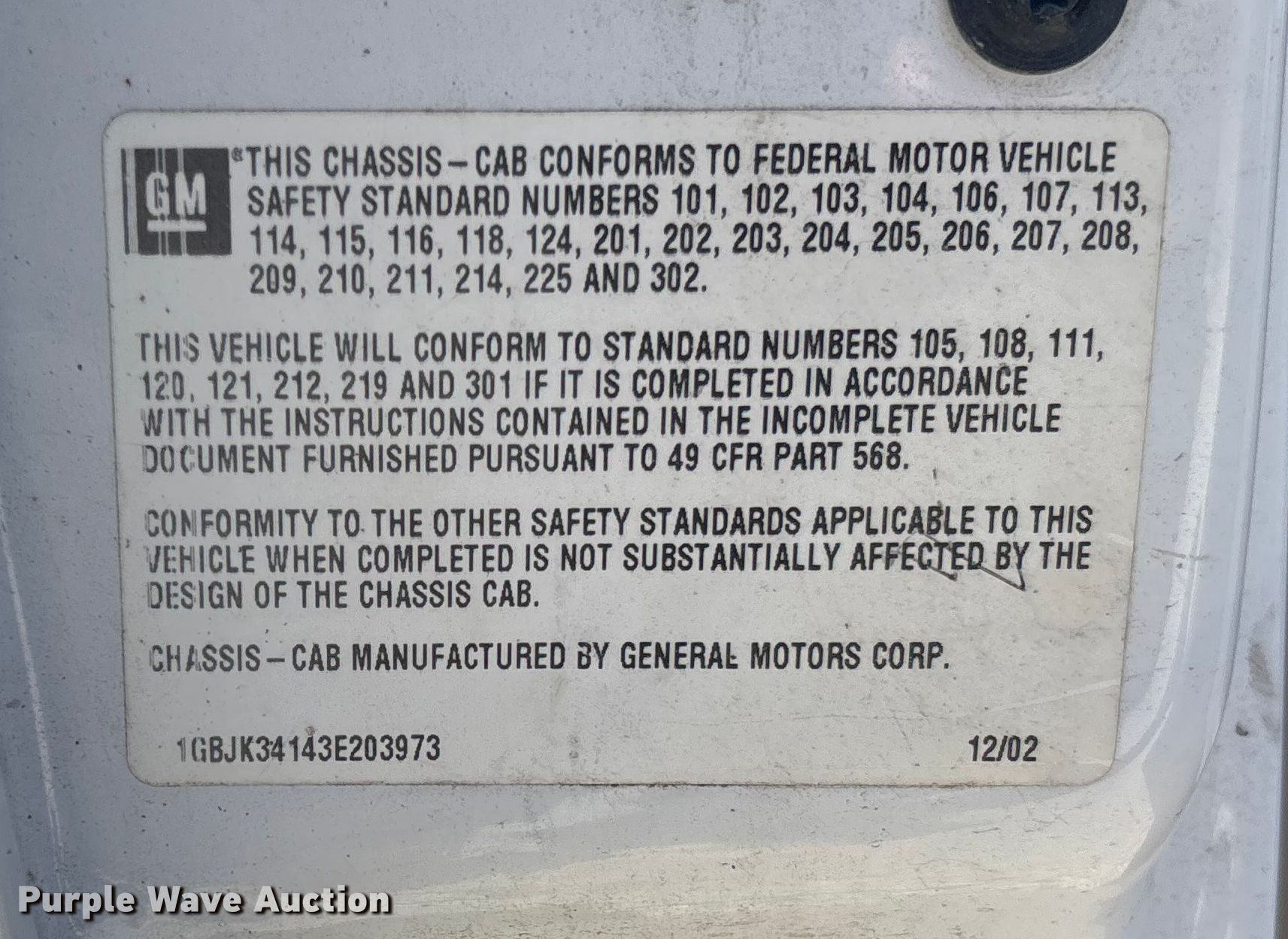 - VIN: 1GBJK34143E203973