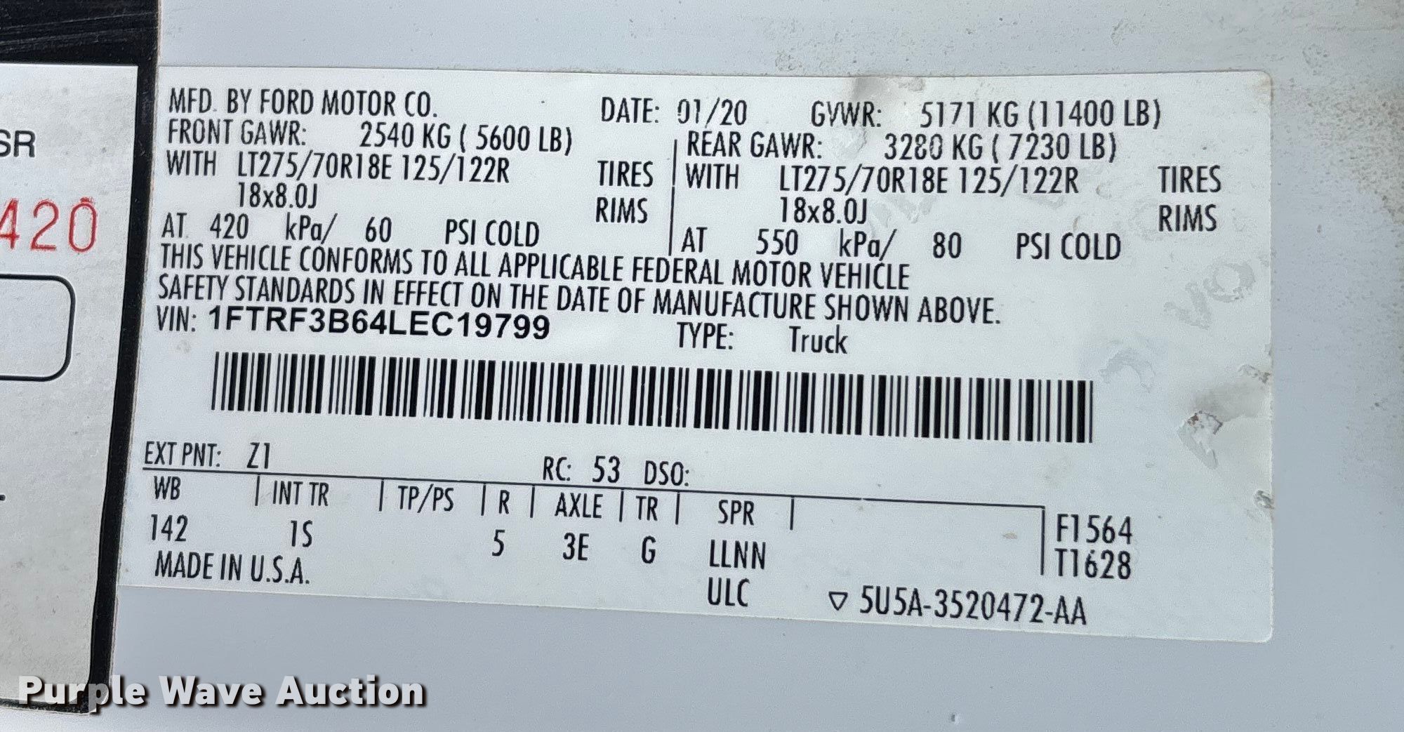 - VIN: 1FTRF3B64LEC19799