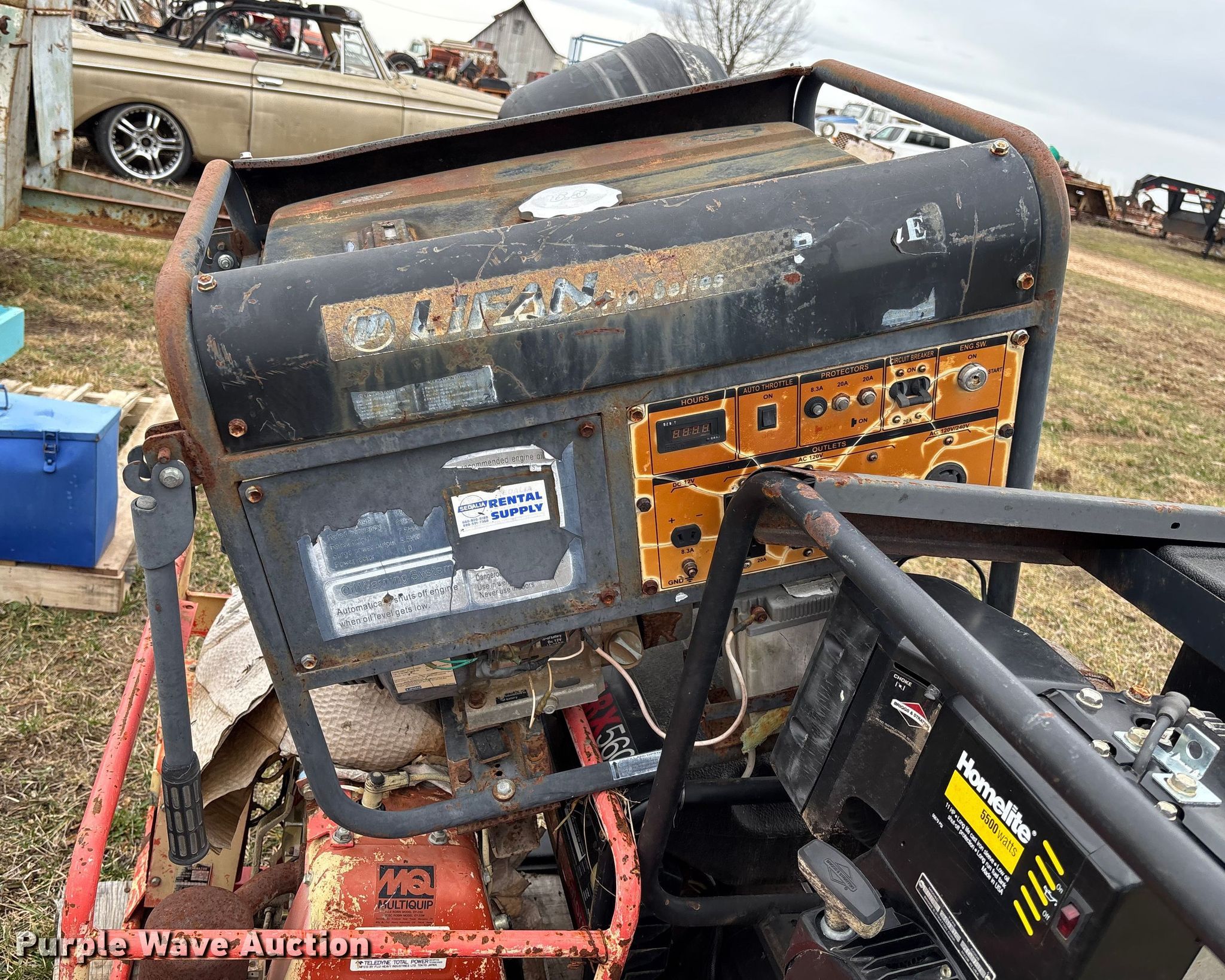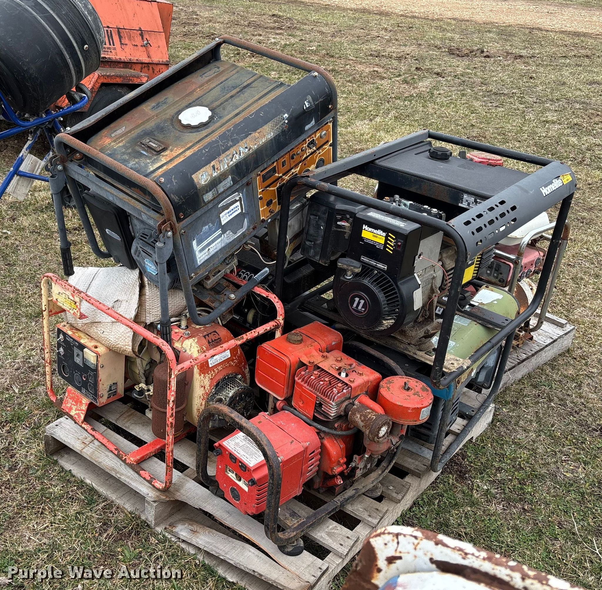 Purple Wave is selling a used Tools in Missouri. This item is a Tools with the following: Kobalt electric concrete mixer, (7) generators, Honda ES350, Homelite LRX5600, Powermate 433003, MQ GRF-3.5RZ, Lifan