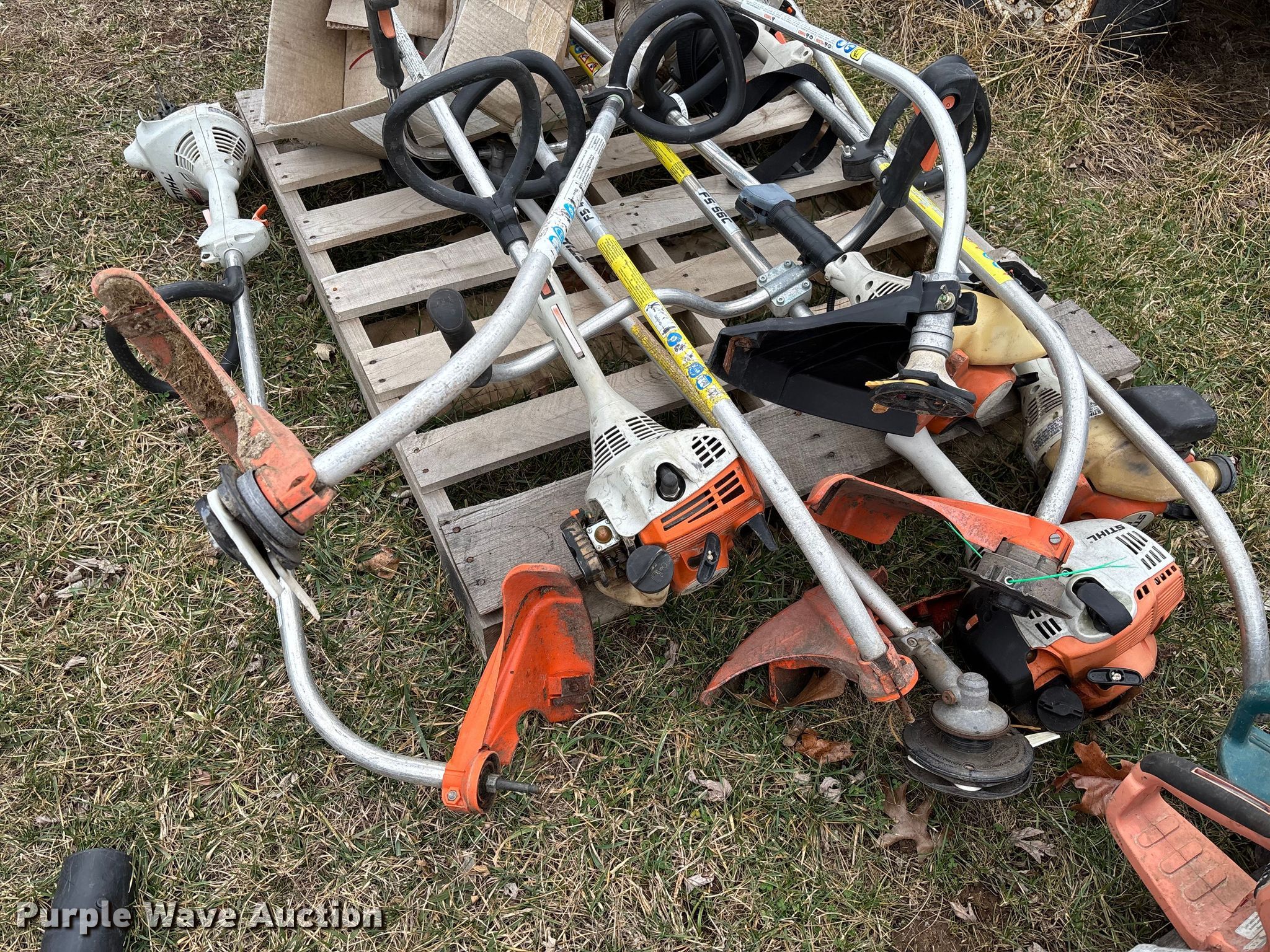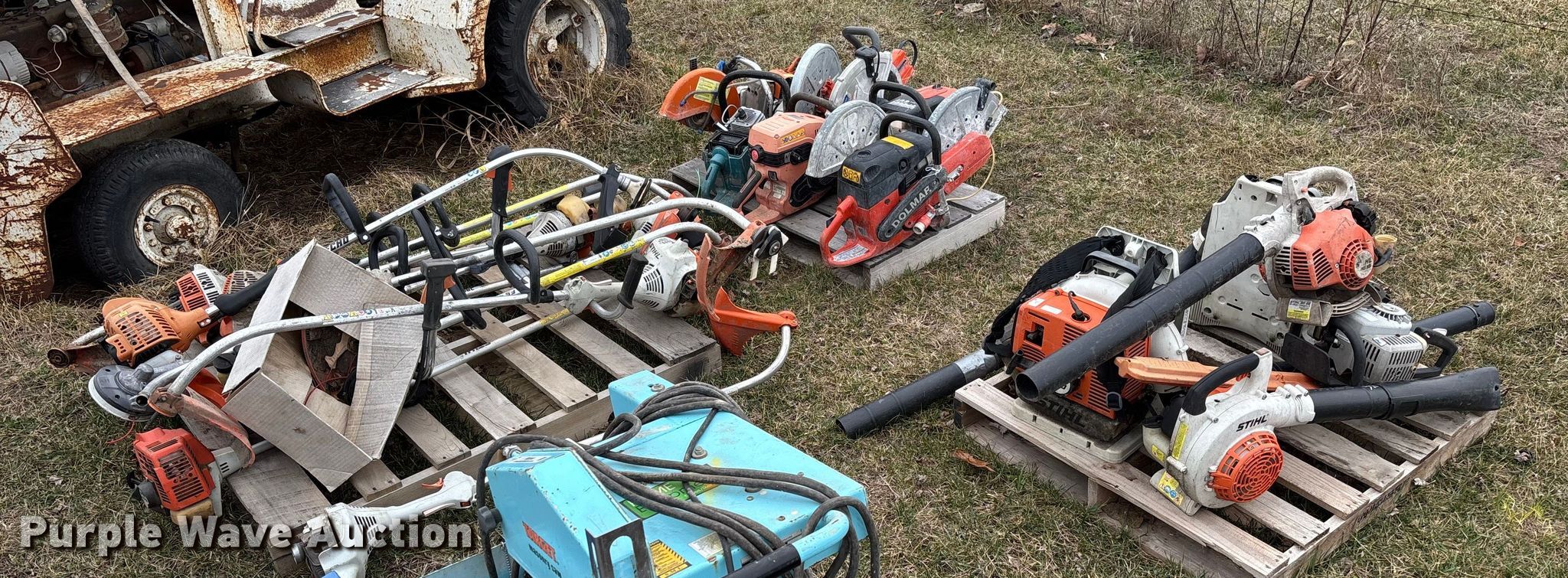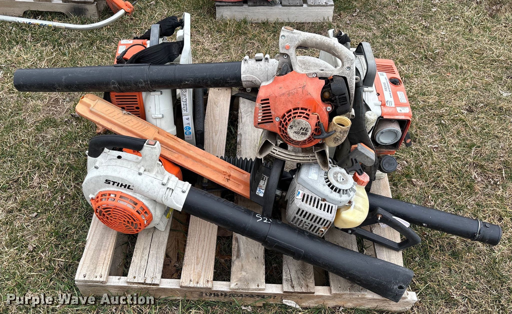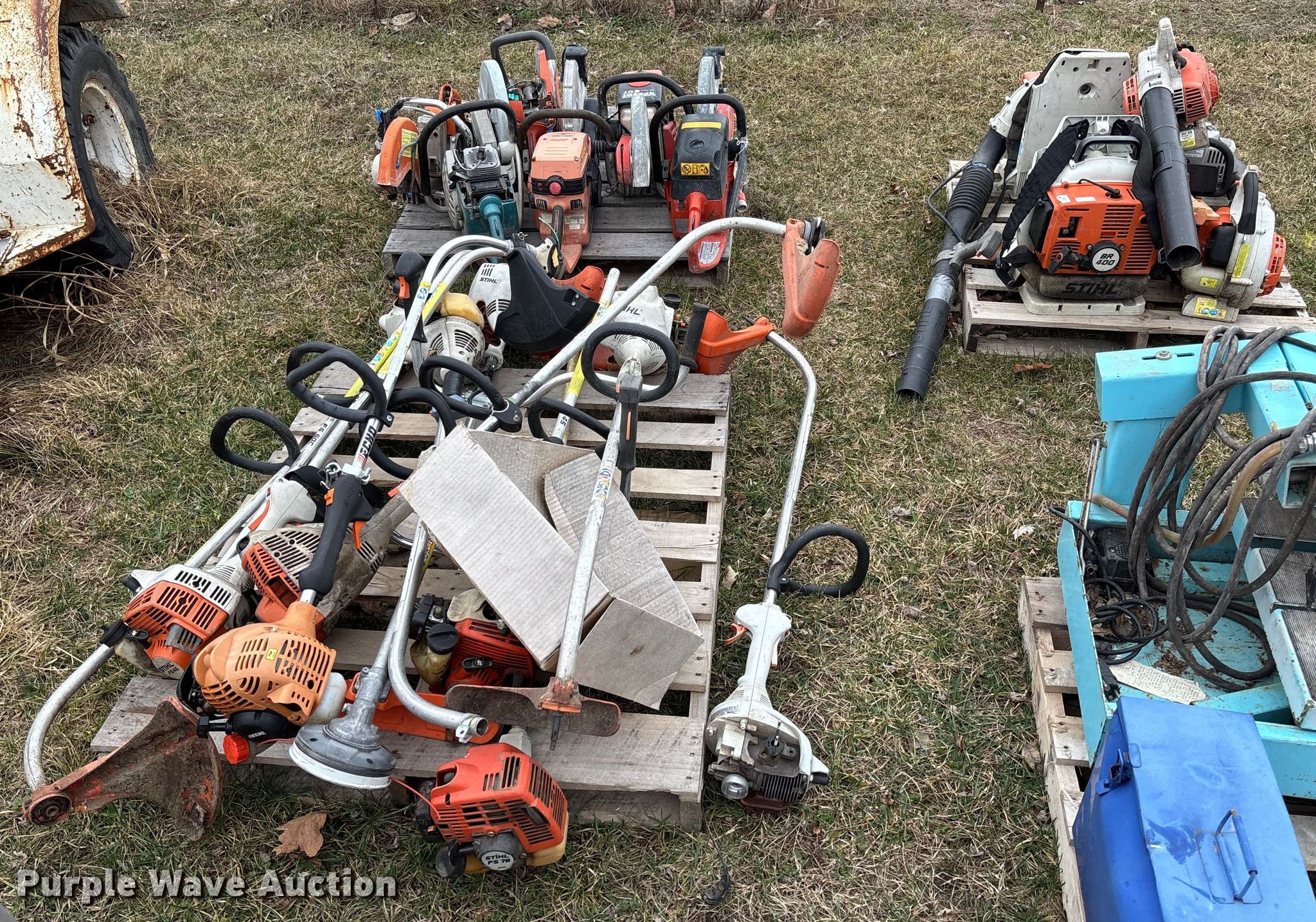 Purple Wave is selling a used Tools in Missouri. This item is a Tools with the following: Echo chainsaw, (2) Stihl leaf blowers, (2) Stihl backpack blowers, BR320, BR400, (9) Stihl string trimmers, FS38, (2)FS45, (2)FS46, FS50C, FS56C, FS76, Echo string trimmers, (5) hand held saws