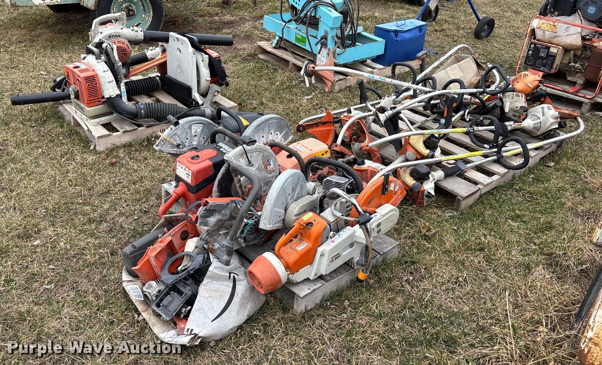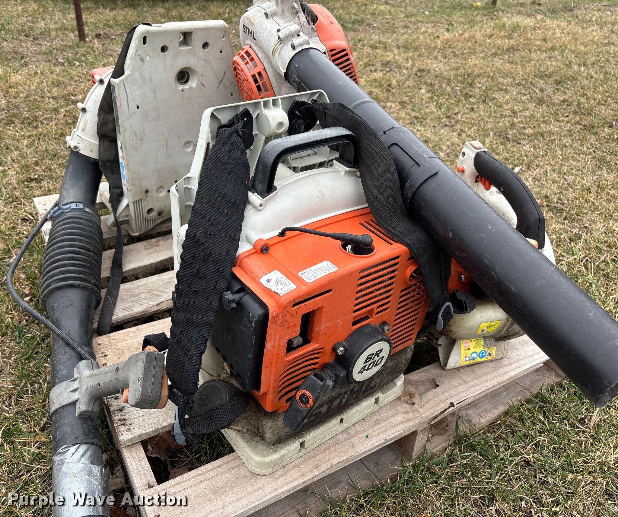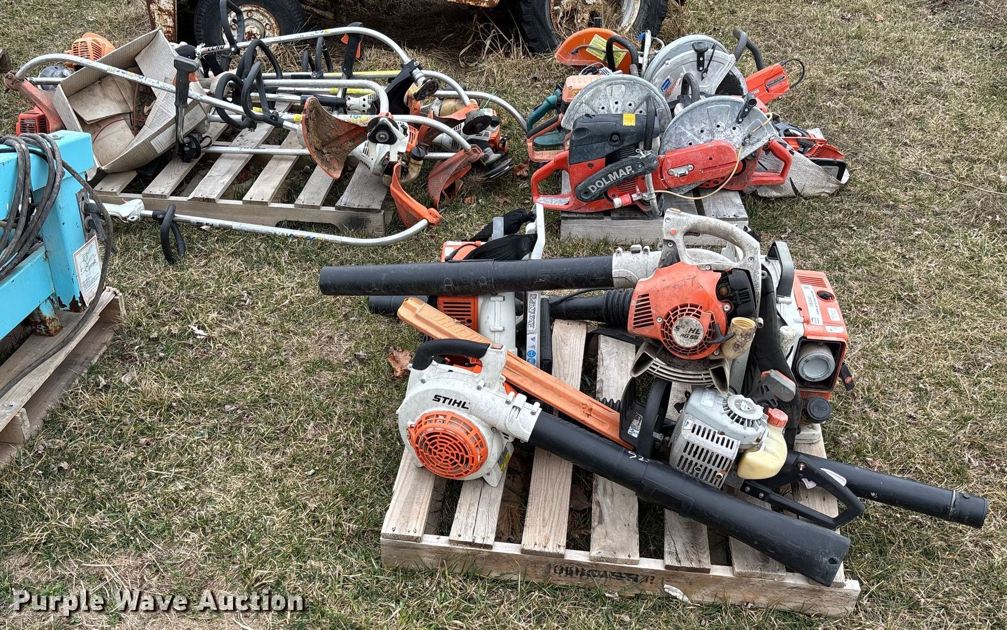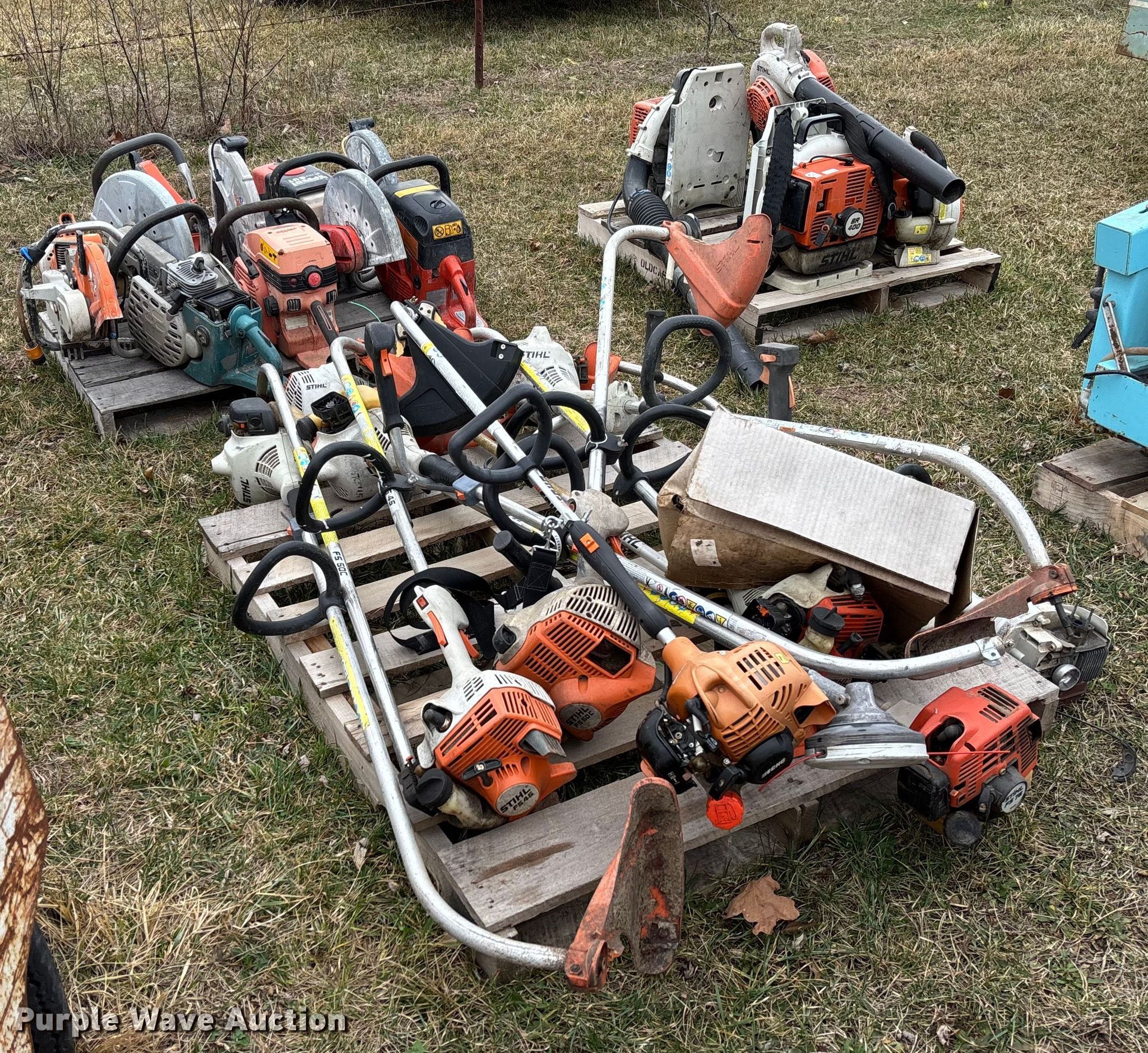 Purple Wave is selling a used Tools in Missouri. This item is a Tools with the following: Echo chainsaw, (2) Stihl leaf blowers, (2) Stihl backpack blowers, BR320, BR400, (9) Stihl string trimmers, FS38, (2)FS45, (2)FS46, FS50C, FS56C, FS76, Echo string trimmers, (5) hand held saws