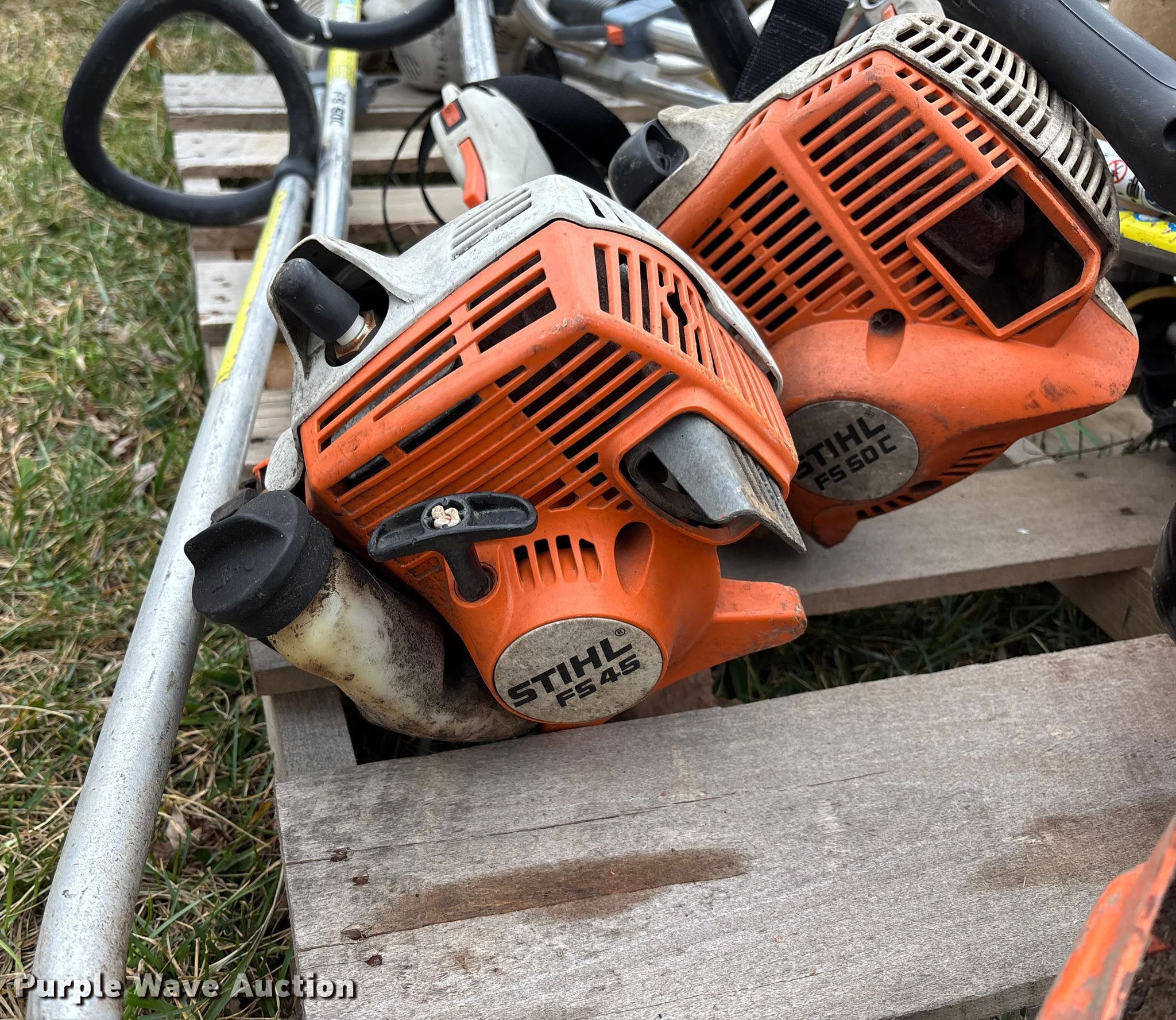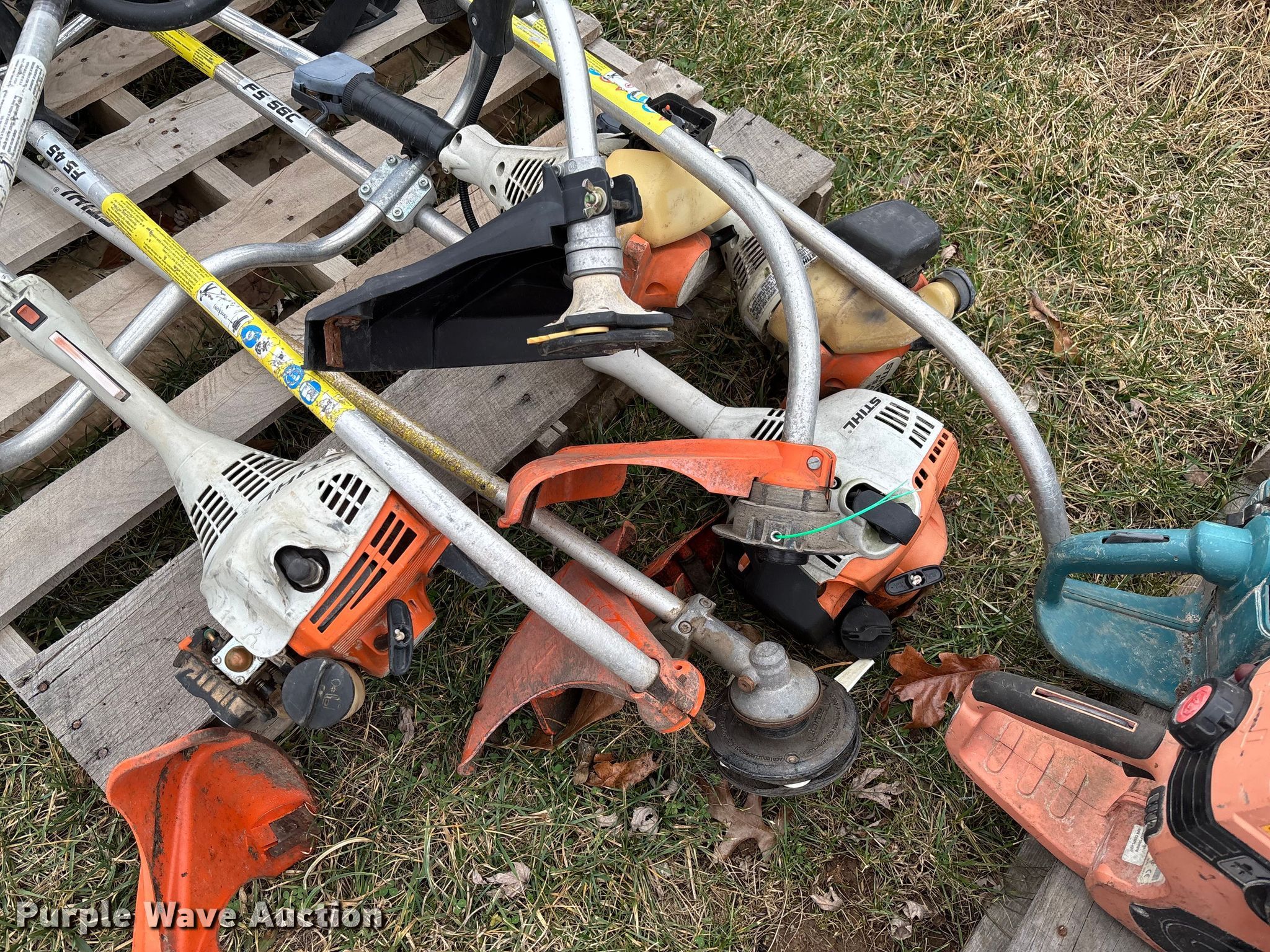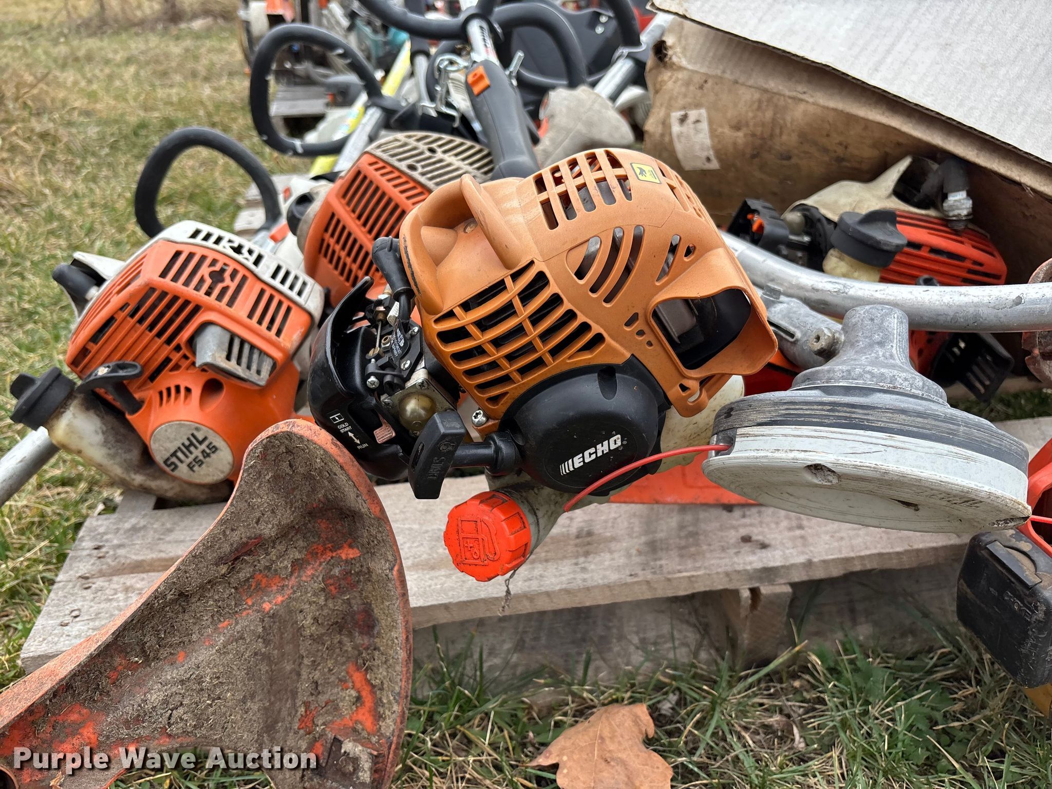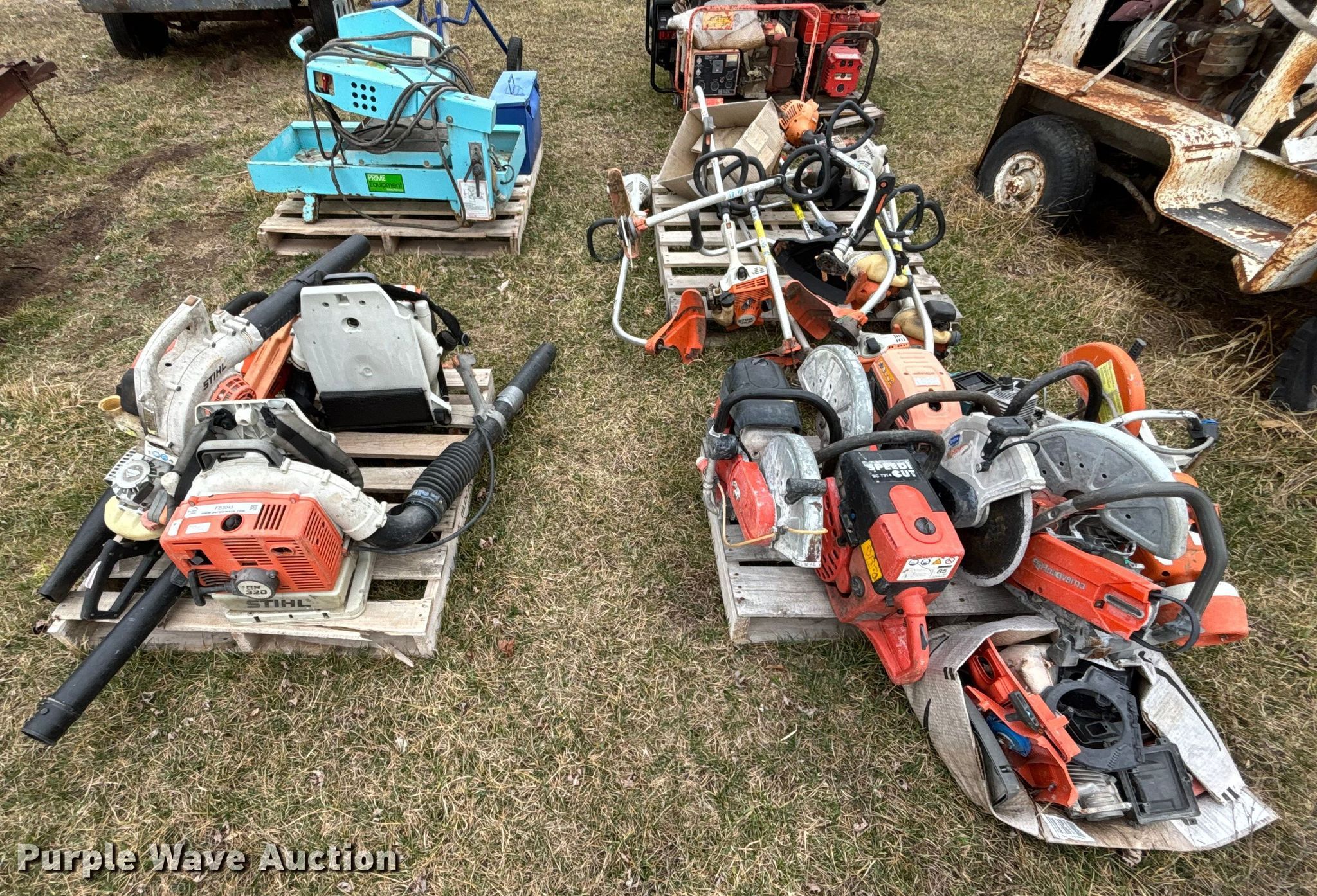 Purple Wave is selling a used Tools in Missouri. This item is a Tools with the following: Echo chainsaw, (2) Stihl leaf blowers, (2) Stihl backpack blowers, BR320, BR400, (9) Stihl string trimmers, FS38, (2)FS45, (2)FS46, FS50C, FS56C, FS76, Echo string trimmers, (5) hand held saws
