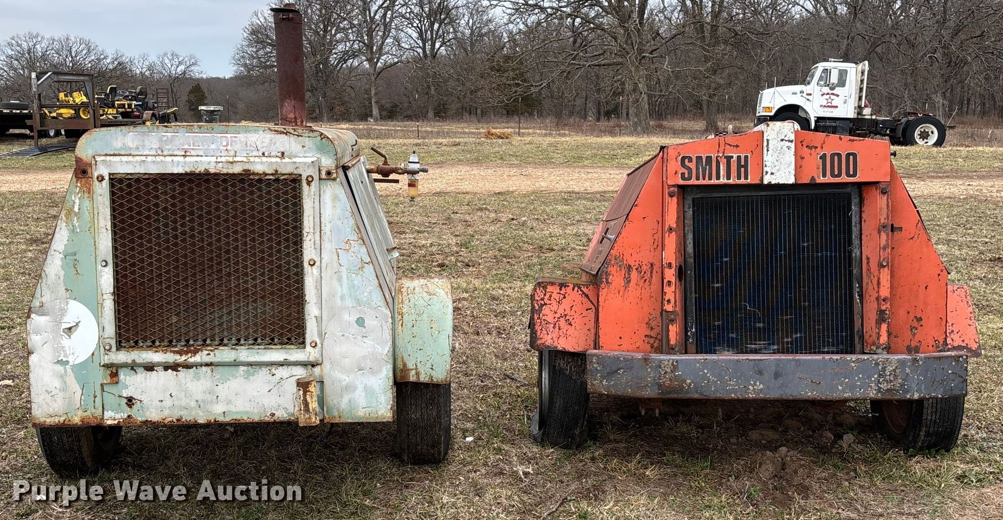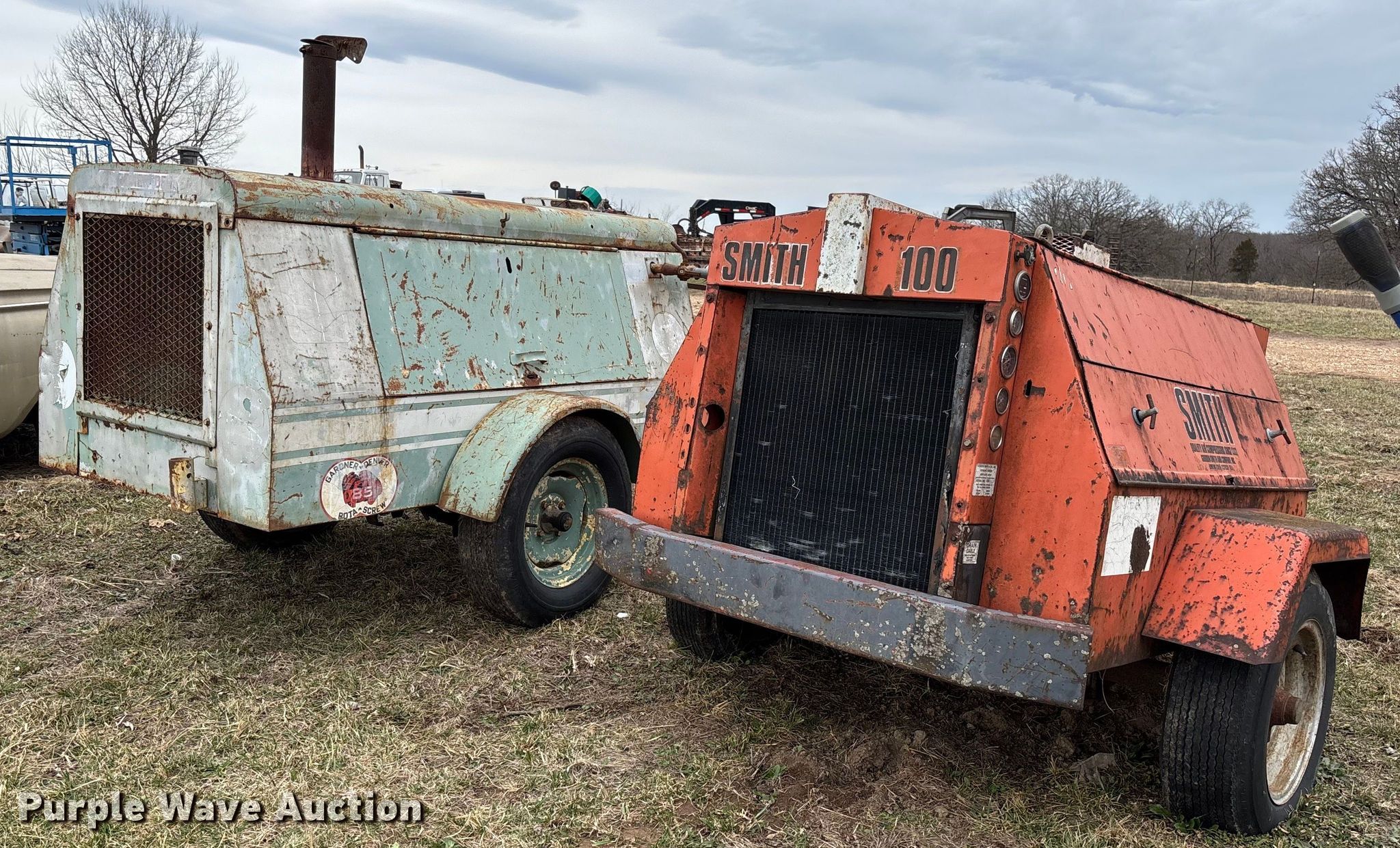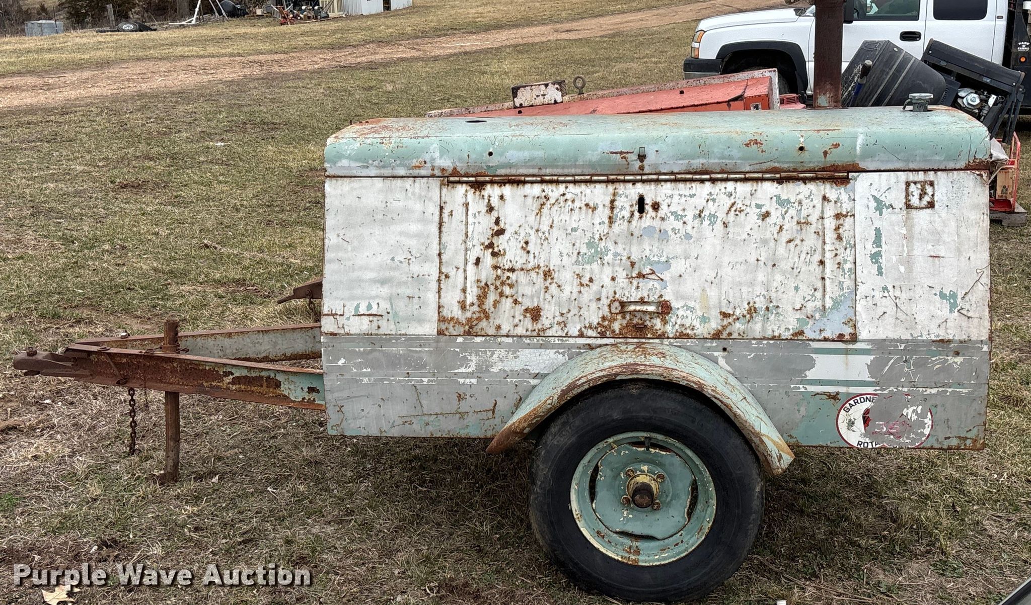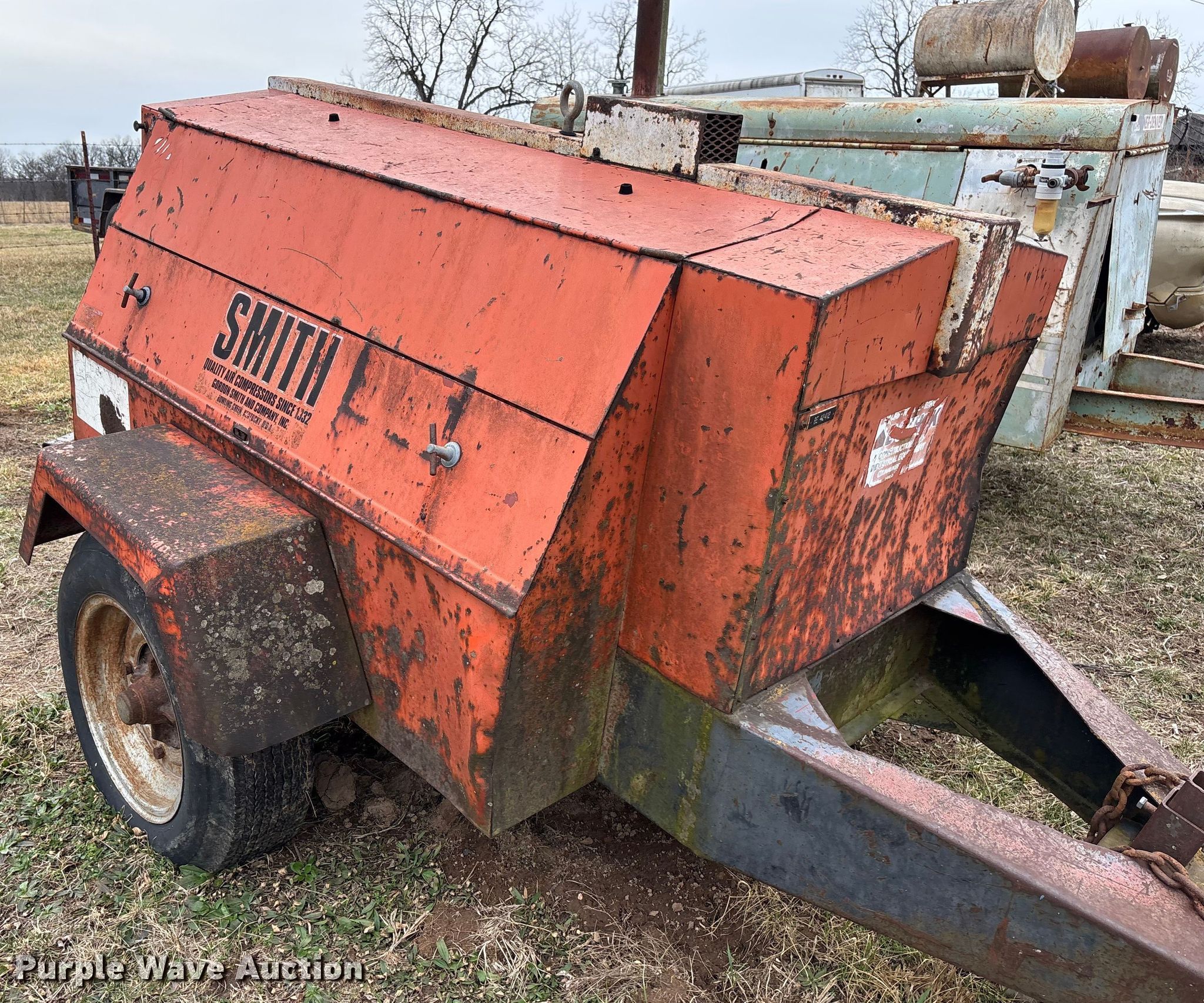 (2) air compressors. Hours: 4,775 on meter, Hours: 1,465 on meter. Engine Cylinders: 4, Fuel type: Gas. Features Air compressor CFM: 85. Trailer Hitch: Pintle, Ball hitch size: 2", Hitch: Pintle, Suspension: Spring, Axles: Single, Tire size: 215/75B15. Notes Non-operational units. This is worksite support equipment and will not come with a title. Transfer of ownership documentation will be a bill of sale. Florence, MO 63363