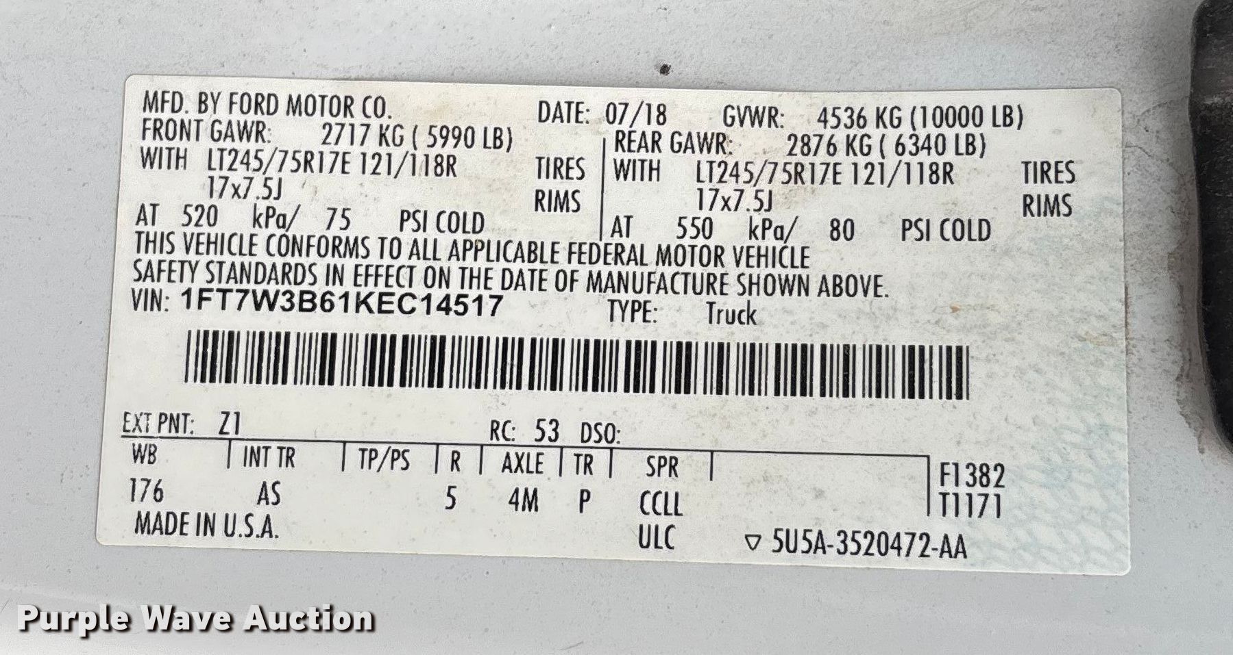 Purple Wave is selling a used 3/4 or 1 Ton Pickup or Van in Missouri. This item is a 2019 Ford F350 Crew Cab pickup truck with the following: Miles: 188,530 on odometer, Hours: 9,944 on meter, VIN: 1FT7W3B61KEC14517