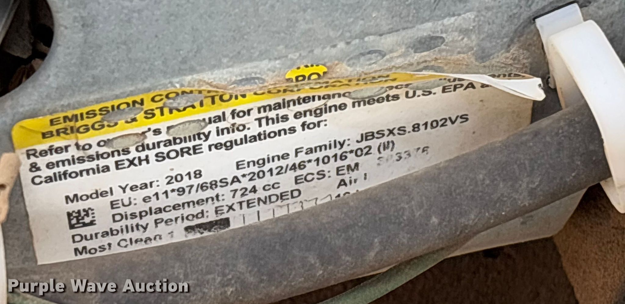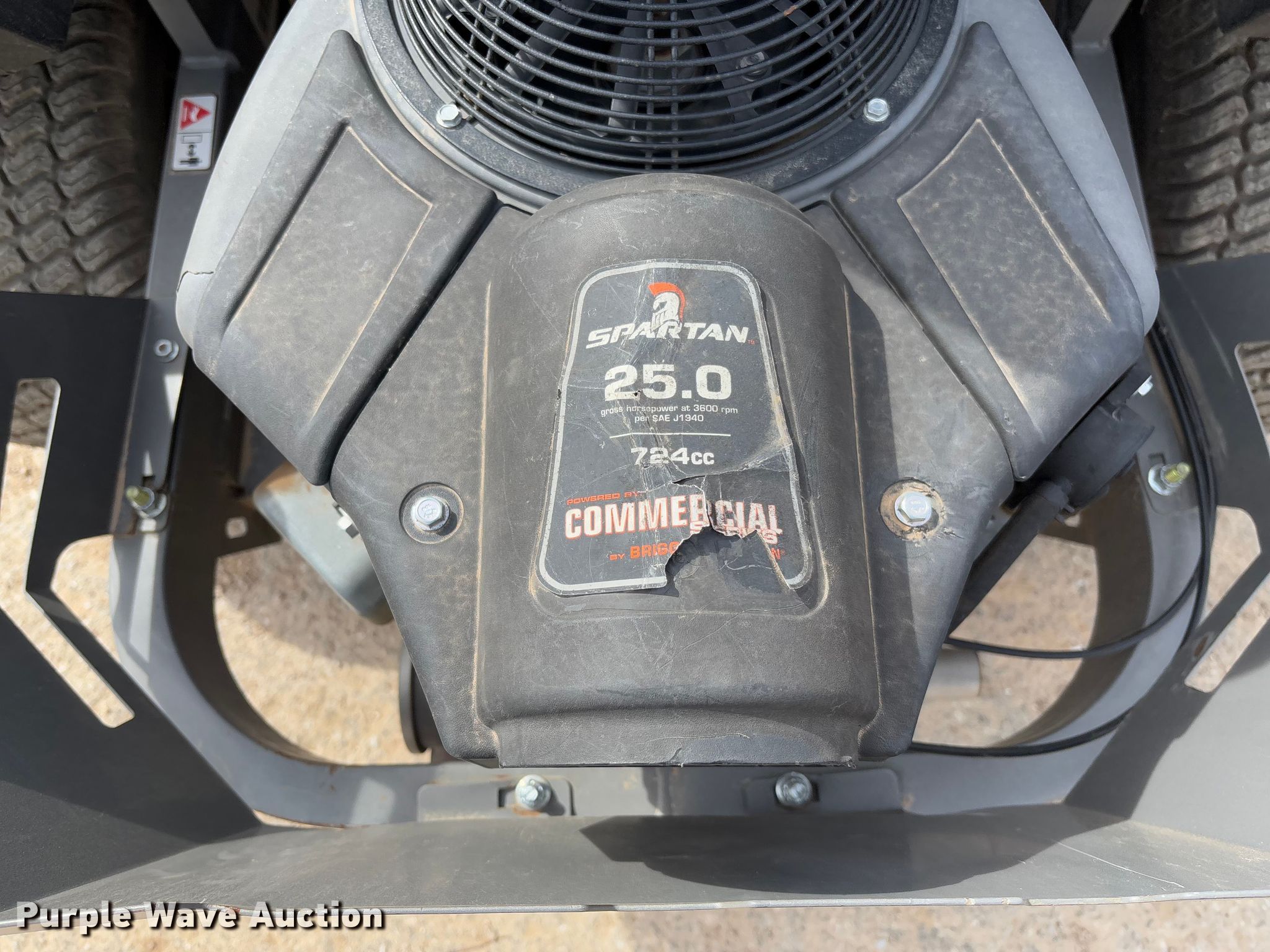 2018 Spartan RZ-HD ZTR lawn mower. Hours: 38 on meter, Cutting width: 48", Serial: SZH4848724BS0KB020287. Engine Briggs & Stratton, Displacement: 724CC, Cylinders: 2, Fuel type: Gas, HP: 25. Transmission Hydrostatic. Chassis PTO. Features Mower deck Width: 48", Spartan XTF-48. Tires Front: 13x6.50-6, Rear: 22x11.00-10. Elite Property Services. Rogers, AR 72758
