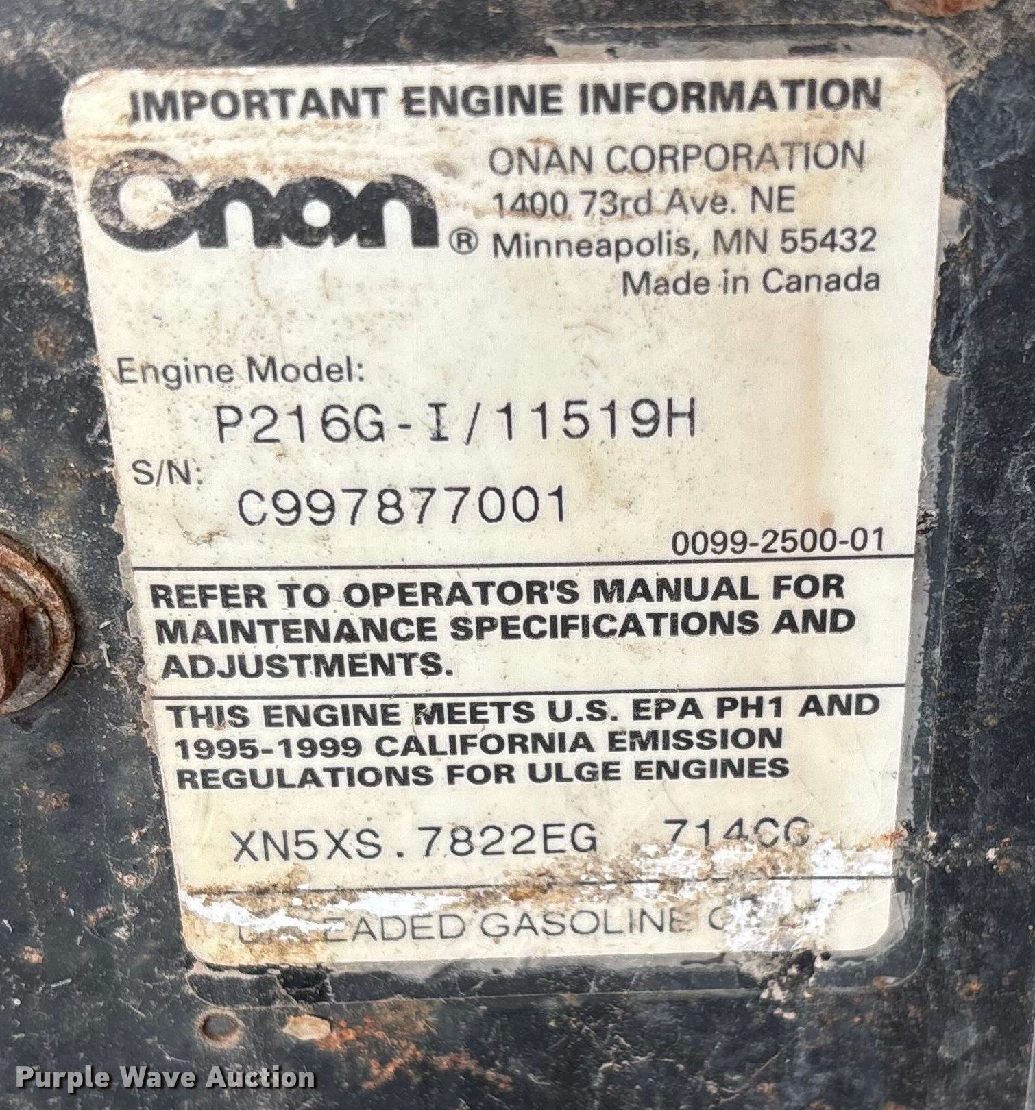 - Onan P216G-I/11519H