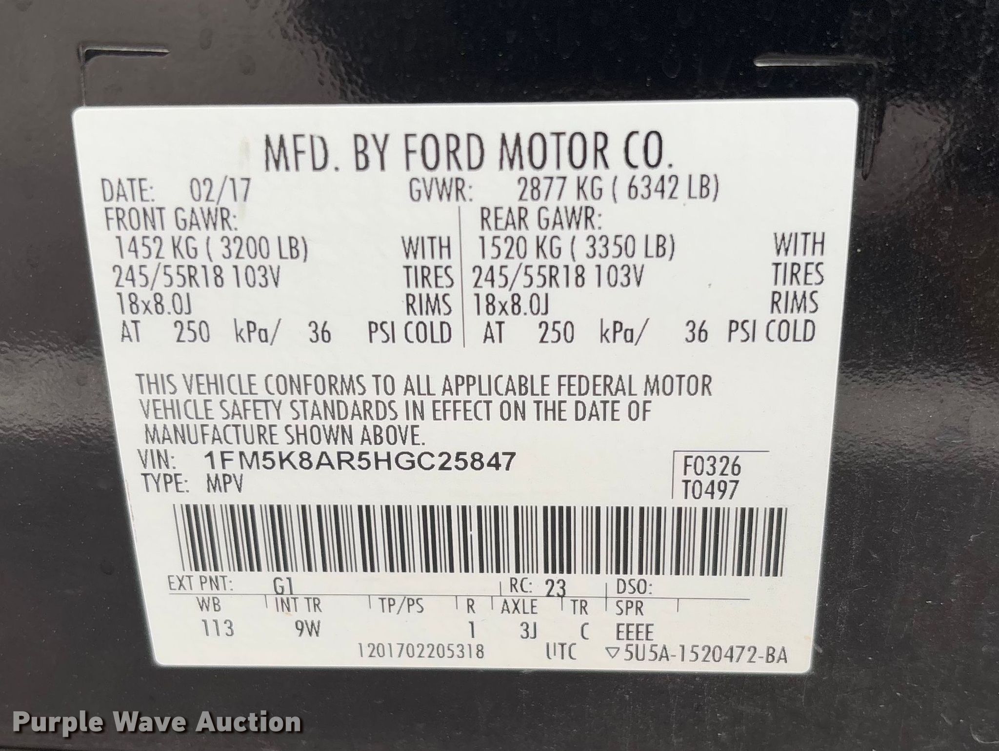 - VIN: 1FM5K8AR5HGC25847