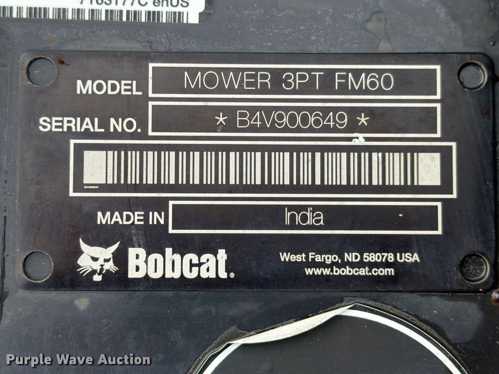 Purple Wave is selling a used Mower, Cutter, Shredder in Texas. This item is a Bobcat FM60 finish mower with the following: Serial: B4V900649, Unit #: 1351902