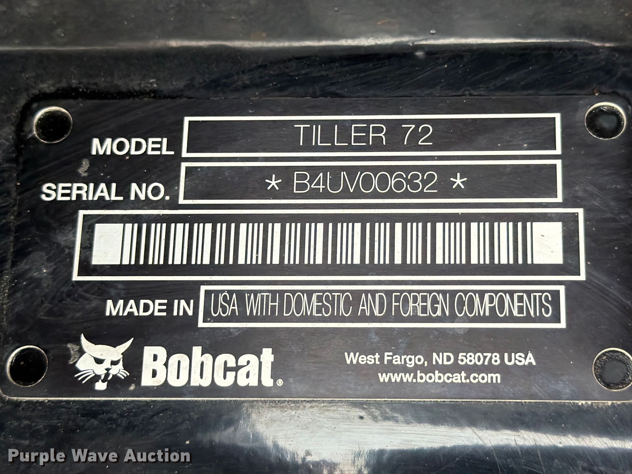 Purple Wave is selling a used Rotary Tillage in Texas. This item is a Bobcat Tiller 72 rotary tiller with the following: Overall width: 72", Serial: B4UV00632, Unit #: 1307301