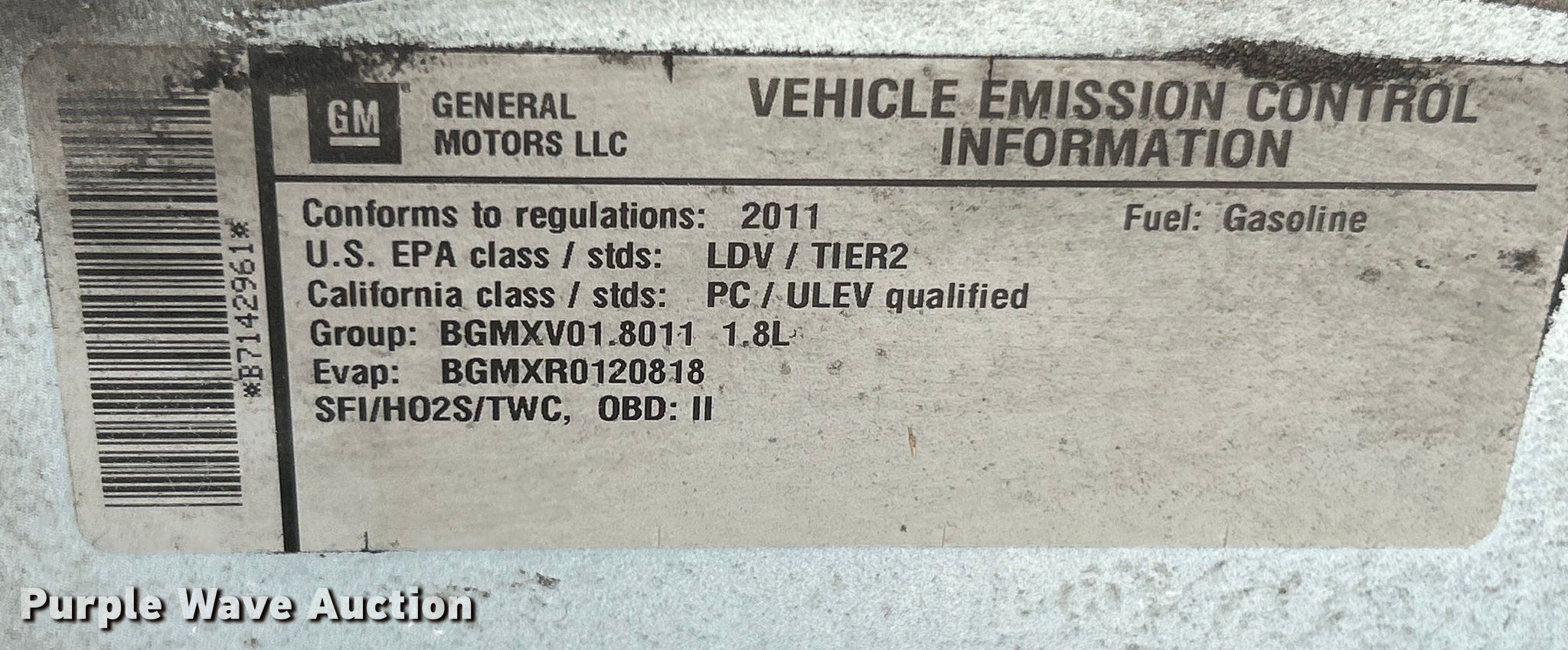 Purple Wave is selling a used Passenger Vehicle in Missouri. This item is a 2011 Chevrolet Cruze with the following: Miles: 157,515 on odometer, VIN: 1G1PC5SH6B7142961