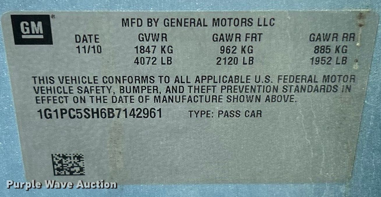 Take a look at this used 2011 Chevrolet Cruze being sold on March 25th, 2026 in the Wednesday March 25 Vehicles and Equipment Auction made by Chevrolet. Take a look at all of the item information below or take a look at similar auctions for Passenger Vehicles.