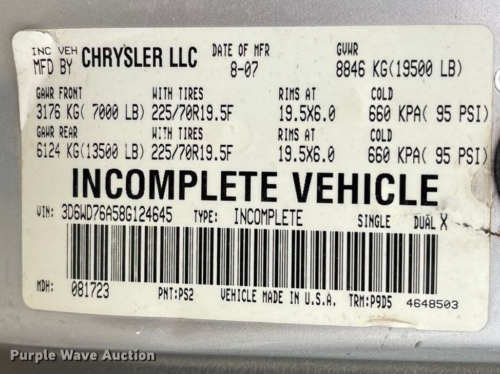 Purple Wave is selling a used Truck Chassis in Kansas. This item is a 2008 Dodge Ram 5500 truck cab and chassis with the following: Miles: 218,965 on odometer, VIN: 3D6WD76A58G124645