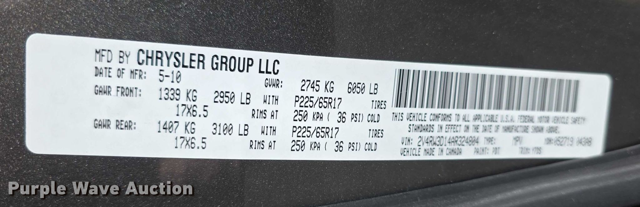 Purple Wave is selling a used Passenger Vehicle in Missouri. This item is a 2010 Volkswagon Routan SE van with the following: Miles: 114,606 on odometer, VIN: 2V4RW3D14AR324804