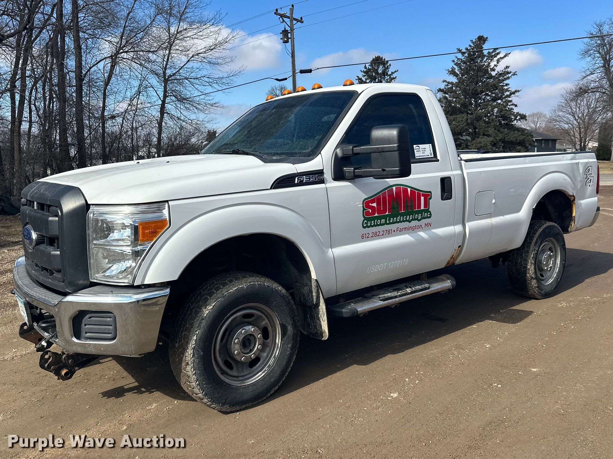 2015 Ford F350 Super Duty pickup truck. Miles: 85,514 on odometer, VIN: 1FTRF3B67FEB87953. Engine Displacement: 6.2L, Cylinders: 8, Fuel type: Gas. Transmission Automatic, Four wheel drive. Interior AC, Heat, Cruise control. Tires Size: 245/75R17. Minnesota title. Title distribution may be delayed up to 14 days from verification of funds. Summit Custom Landscaping inc.. Farmington, MN 55024
