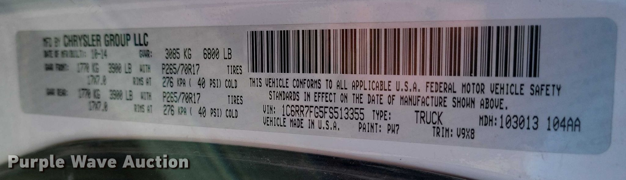 - VIN: 1C6RR7FG5FS513355