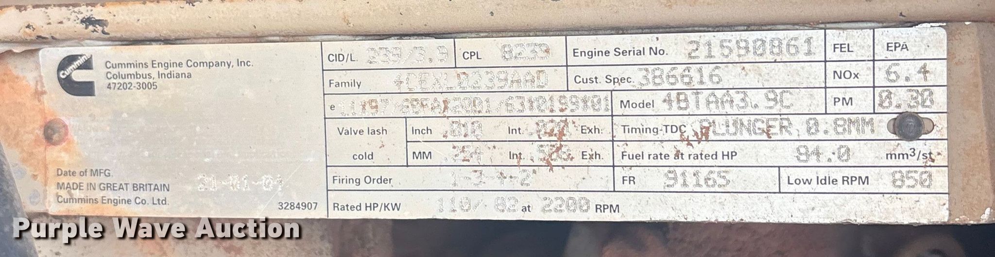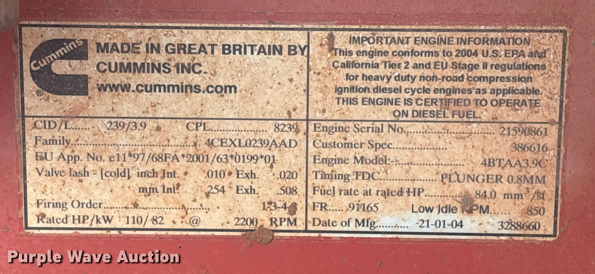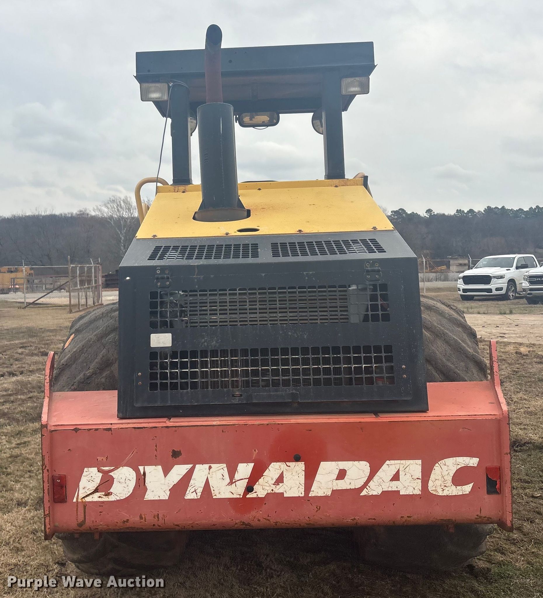 2004 Dynapac CA250PD Single Drum Vibratory Roller. Hours: 1,575 on meter, Serial: 65920330, Unit #: 55-12. Engine Cummins 4BTAA3.9C, Serial: 21590861, Displacement: 3.9L, Cylinders: 4, Fuel type: Diesel. Transmission Hydrostatic. Operators station OROPS, Vandal cover. Features Drum Drum type: Padfoot, Vibratory system: Single, Width: 82", Diameter: 64", Drum scrapers. Tires Size: 6.00/60-30.5, Steel wheels. Notes Intermittent brake button issues. Manhattan Road & Bridge. Muskogee, OK 74403
