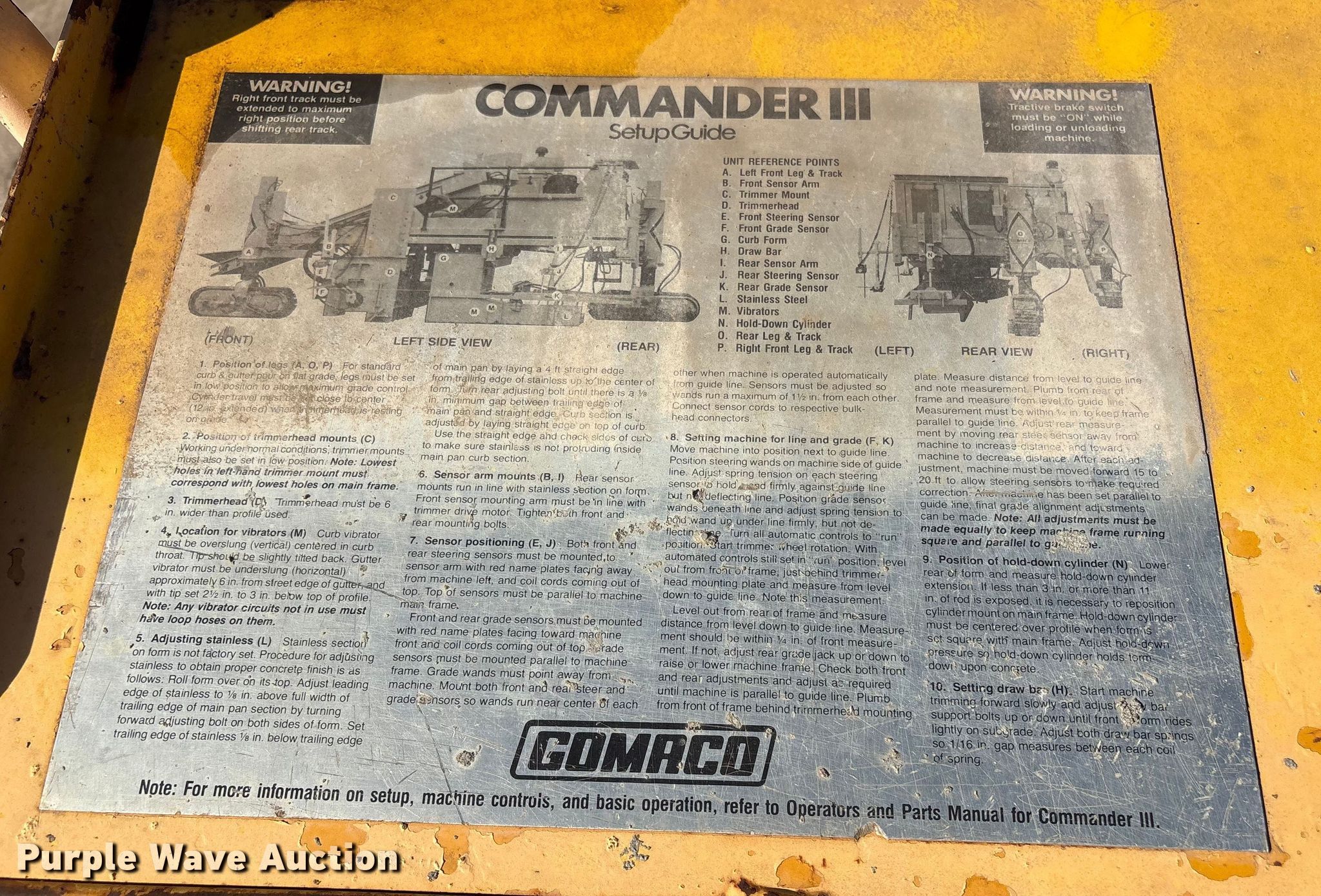 Purple Wave is selling a used Concrete Paver or Curb Machine in Oklahoma. This item is a Gomaco GT 6300 slipform paver with the following: Hours: 10,951 on meter, Serial: MC19084-01, Unit #: 54-02