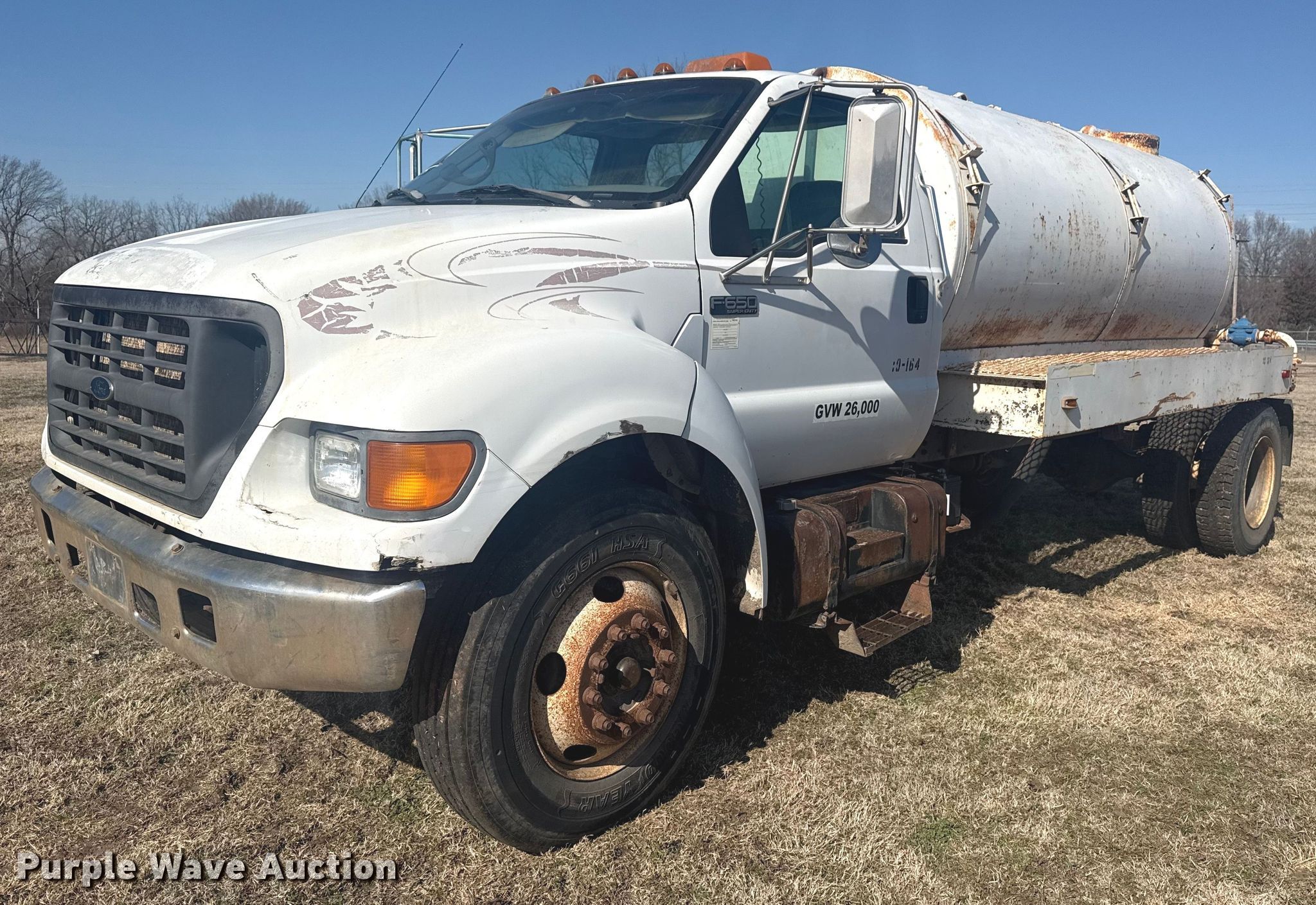 This 2000 Ford F650 Super Duty tank truck will sell to the highest bidder regardless of price.