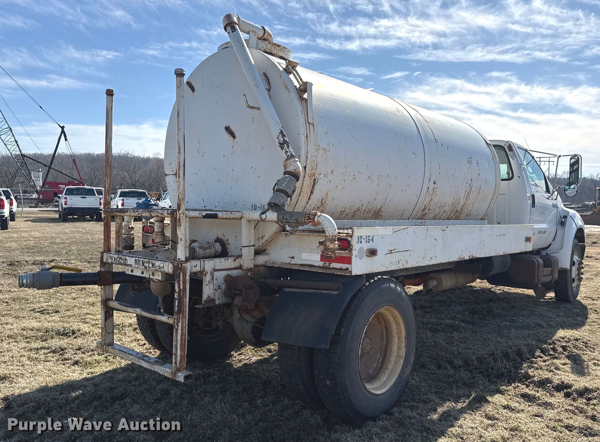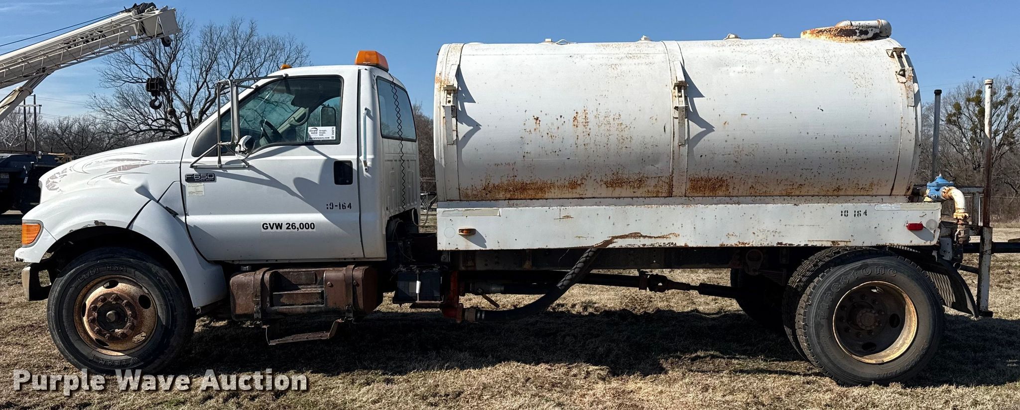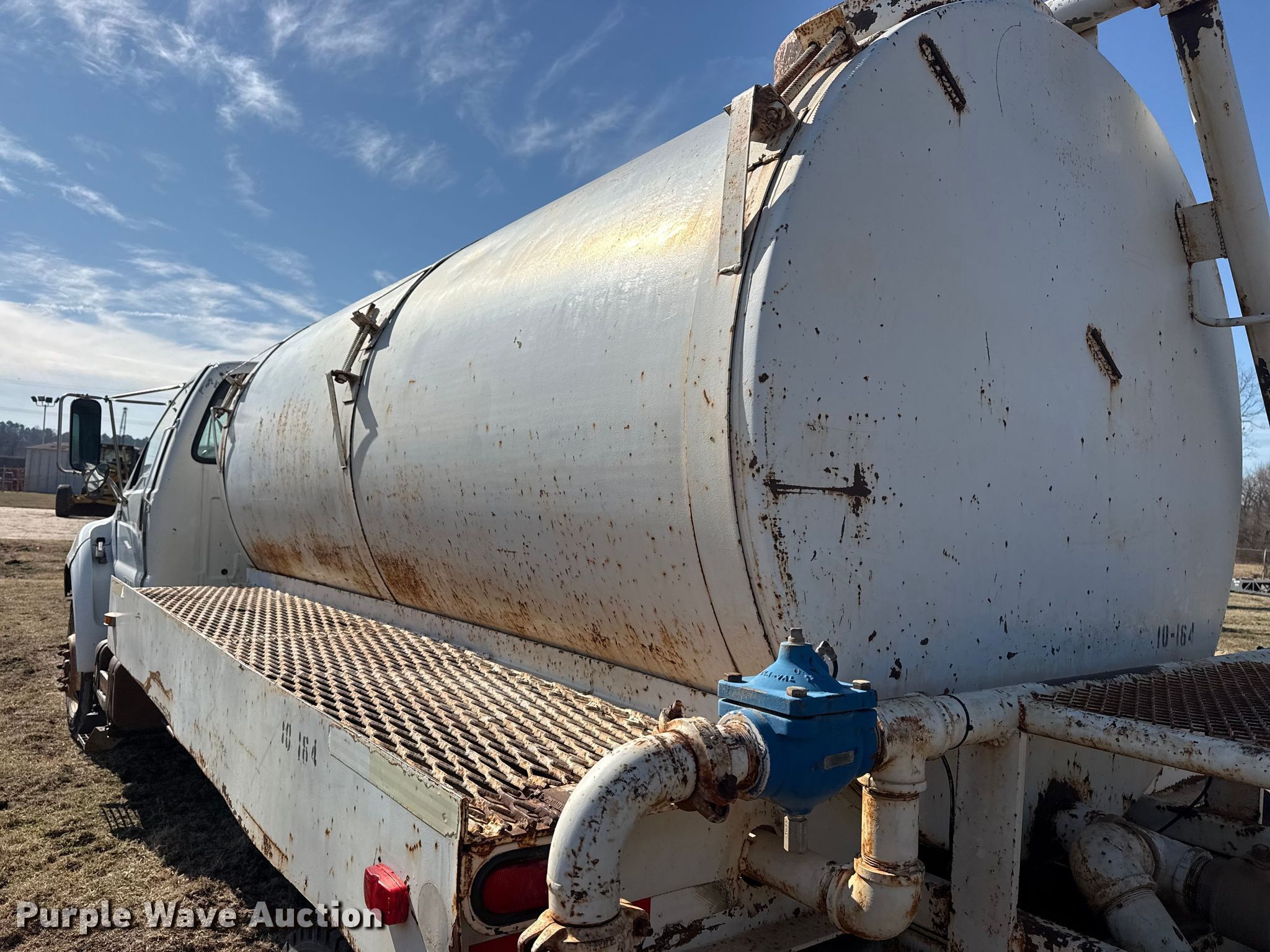 Purple Wave is selling a used Tank Truck or Water Truck in Oklahoma. This item is a 2000 Ford F650 Super Duty tank truck with the following: Miles: 284,741 on odometer, VIN: 3FDNF6548YMA08760, Unit #: 10-164