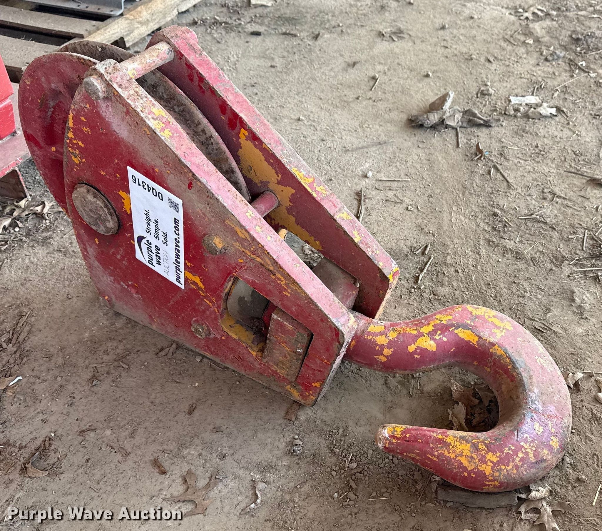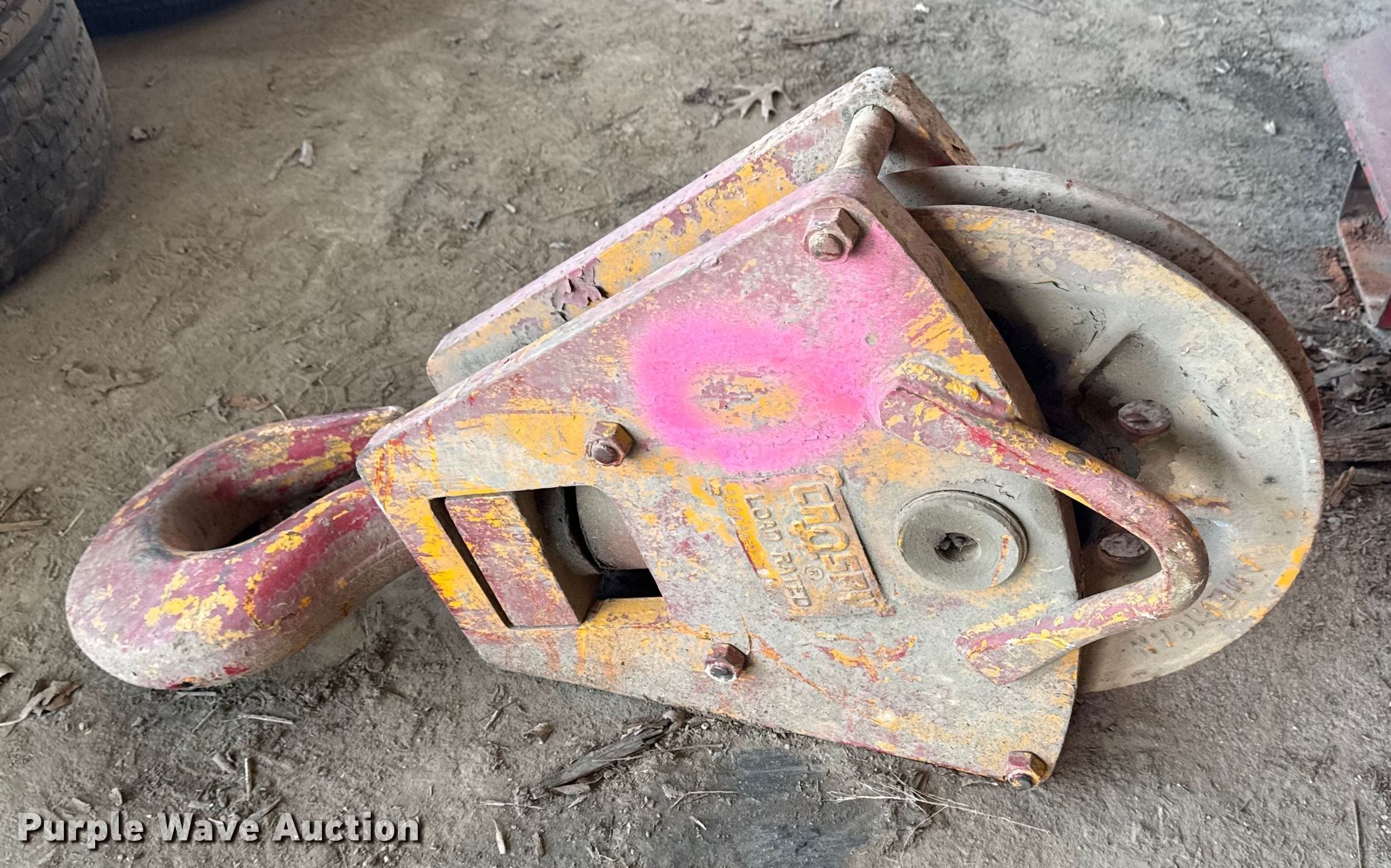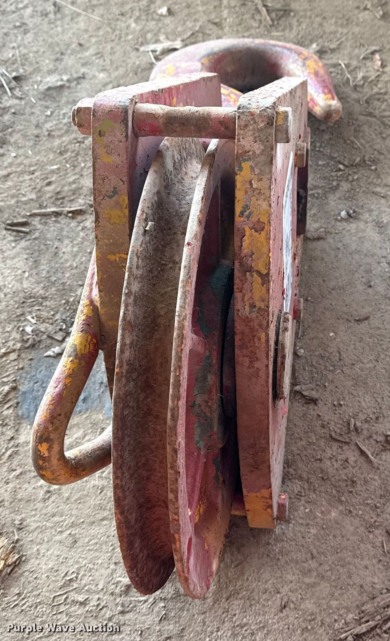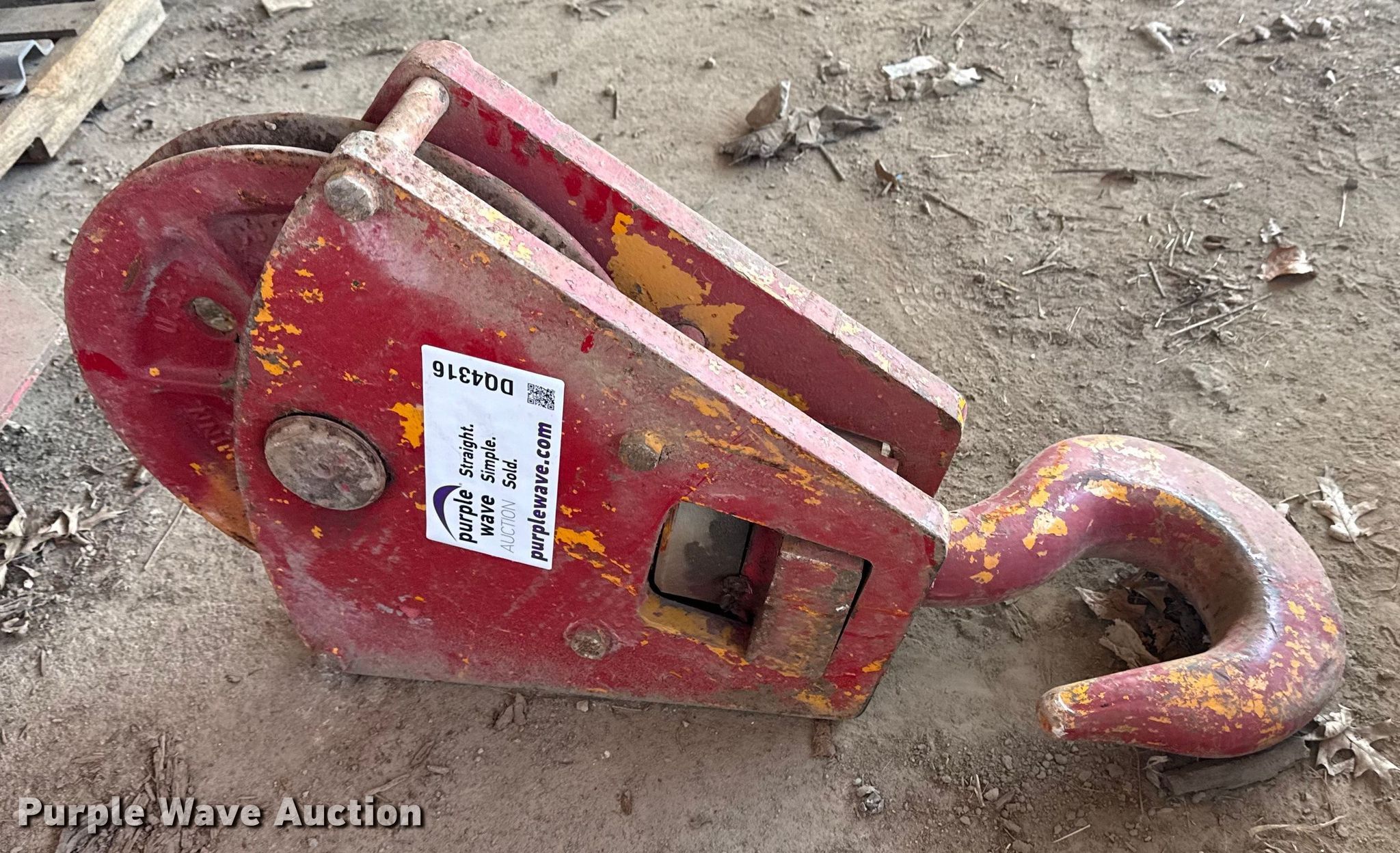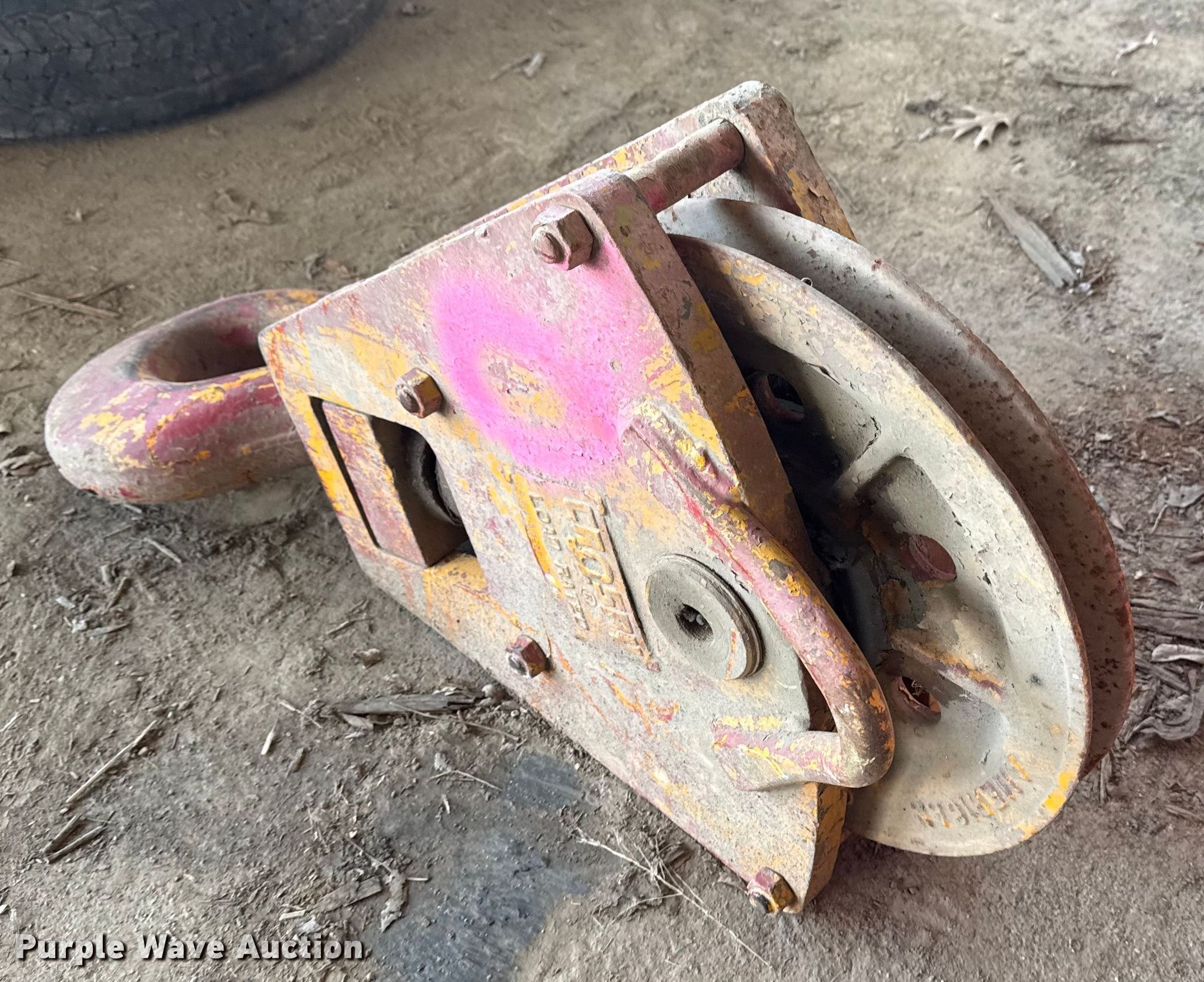 Purple Wave is selling a used Crane Attach. in Oklahoma. This item is a Crosby crane block with the following: Serial: 230080, Sheaves: Single, Sheeve capacity: 15/16