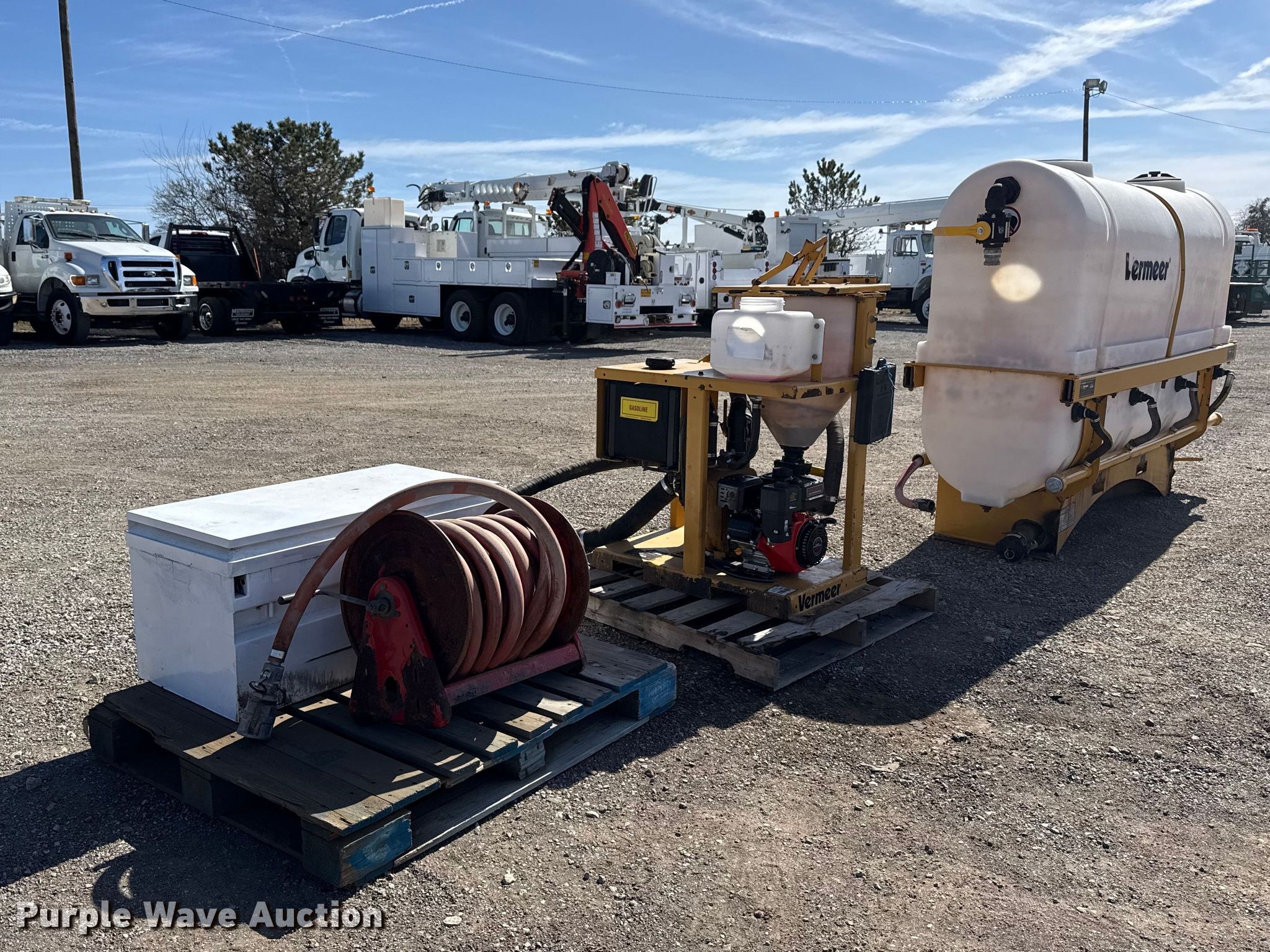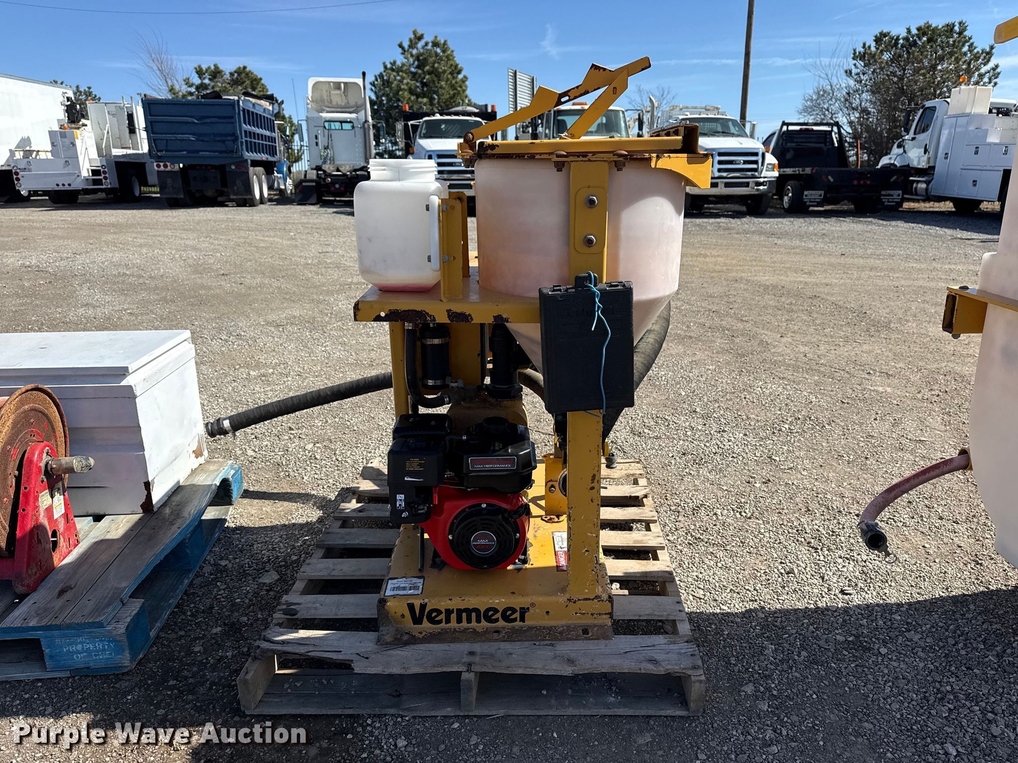 2016 Vermeer MX125 mud mixer. Serial: 1VRX030U3GF004358. Engine Predator, Displacement: 224 cc, Cylinders: 1, Fuel type: Gas. Features Poly tank Capacity: 480 gallons, Hose reel, Toolbox Dimensions:- 3' L x 19" W x 18" H, Will not open. Collinsville, OK 74021