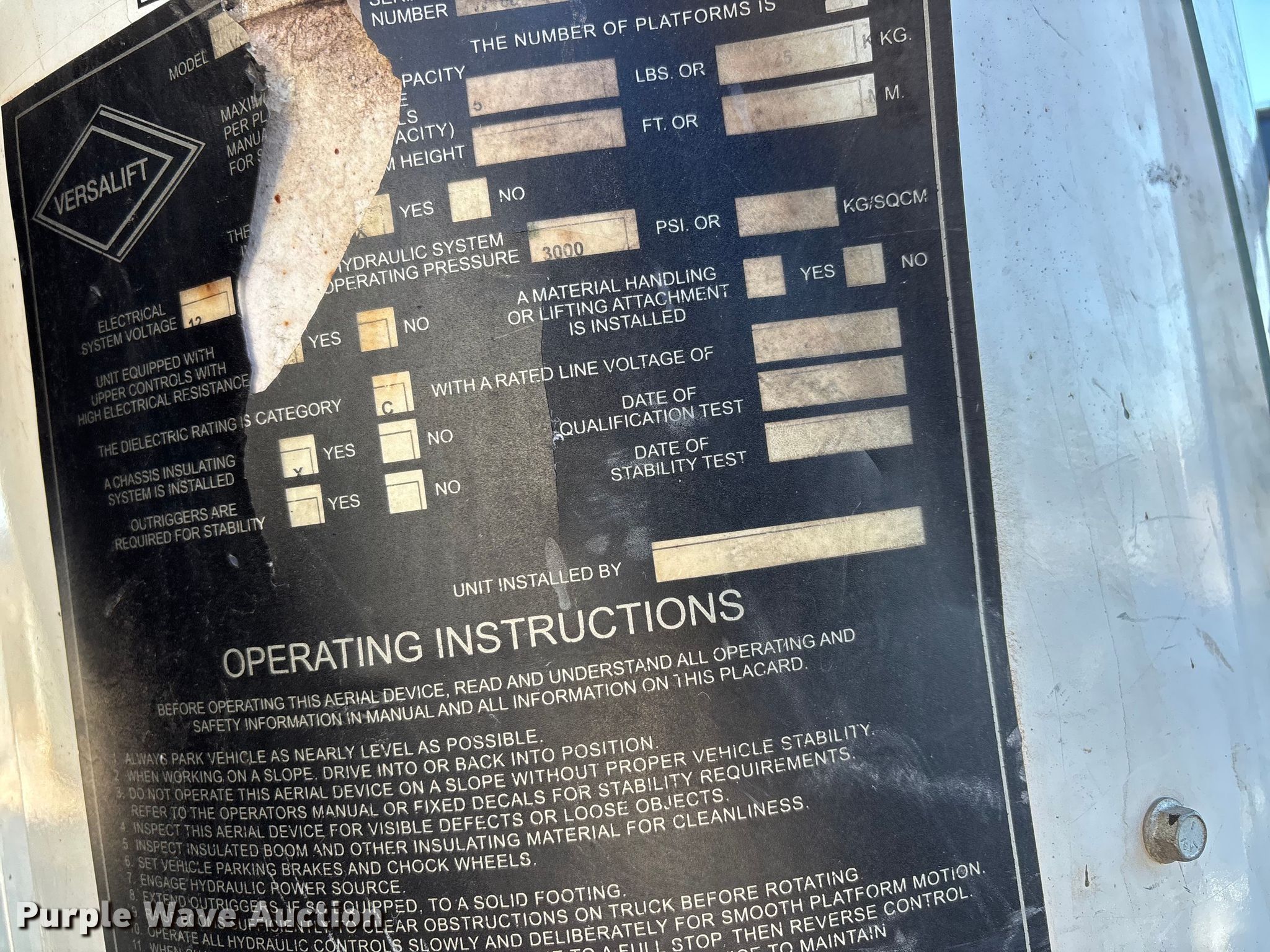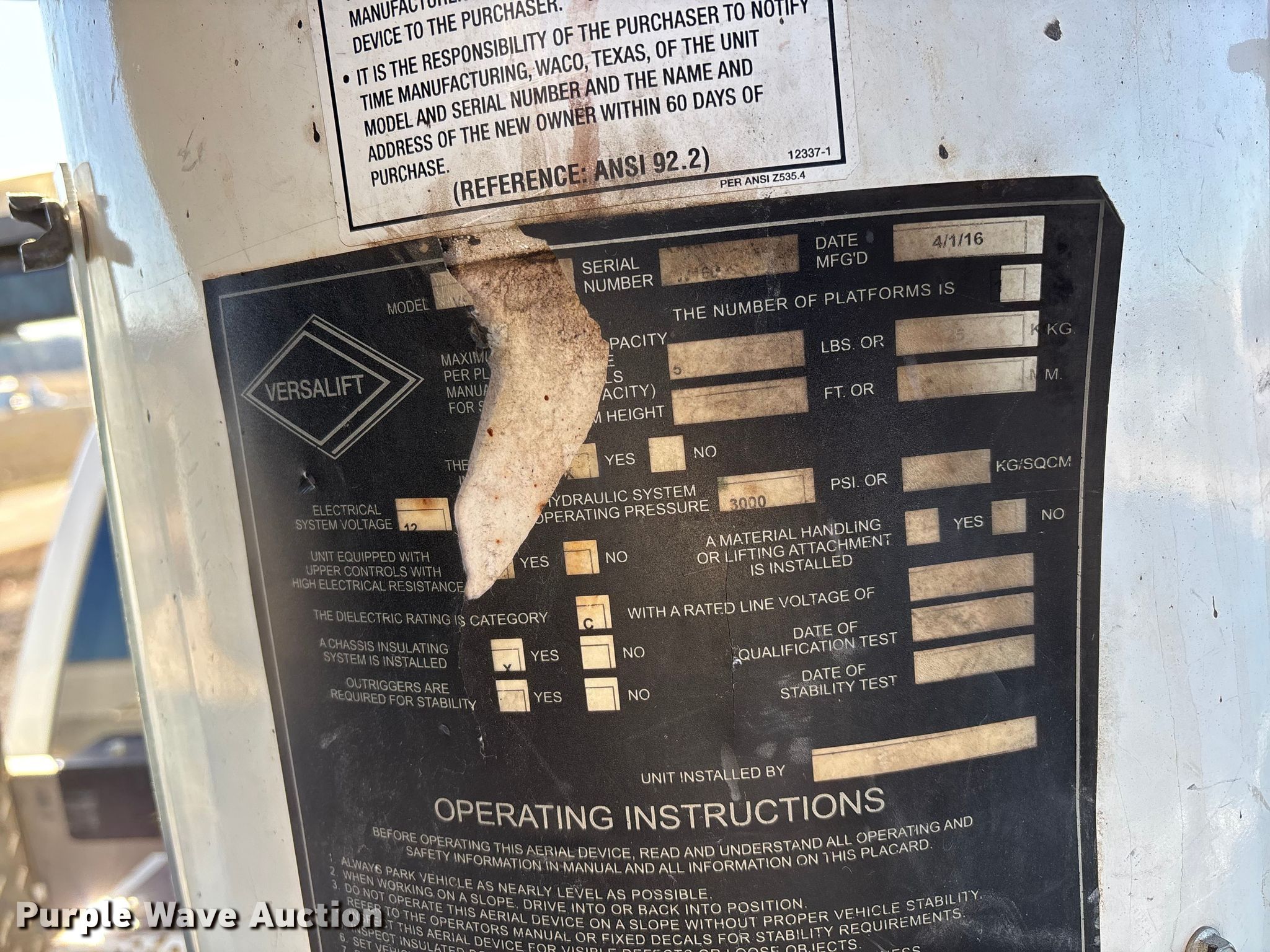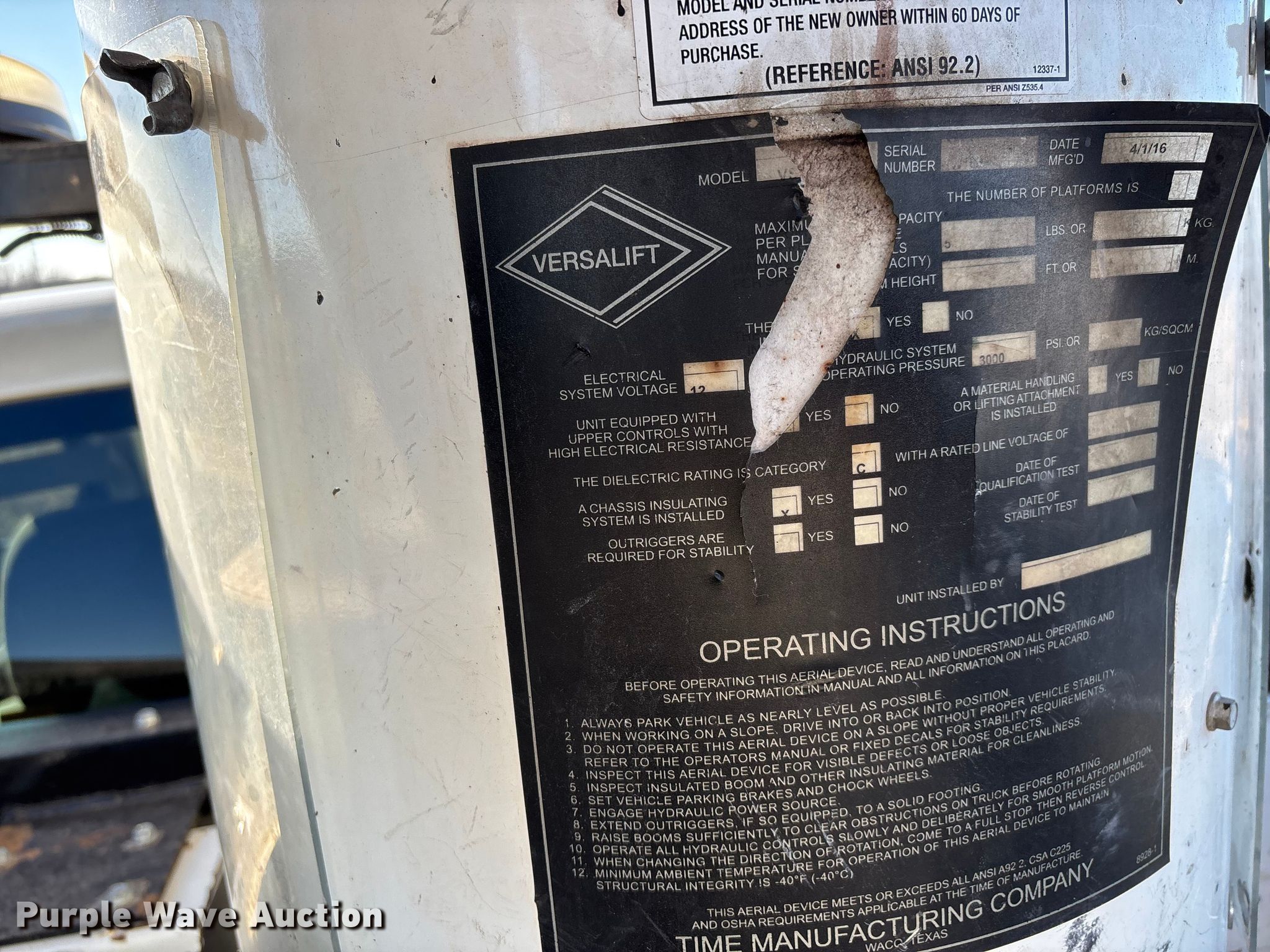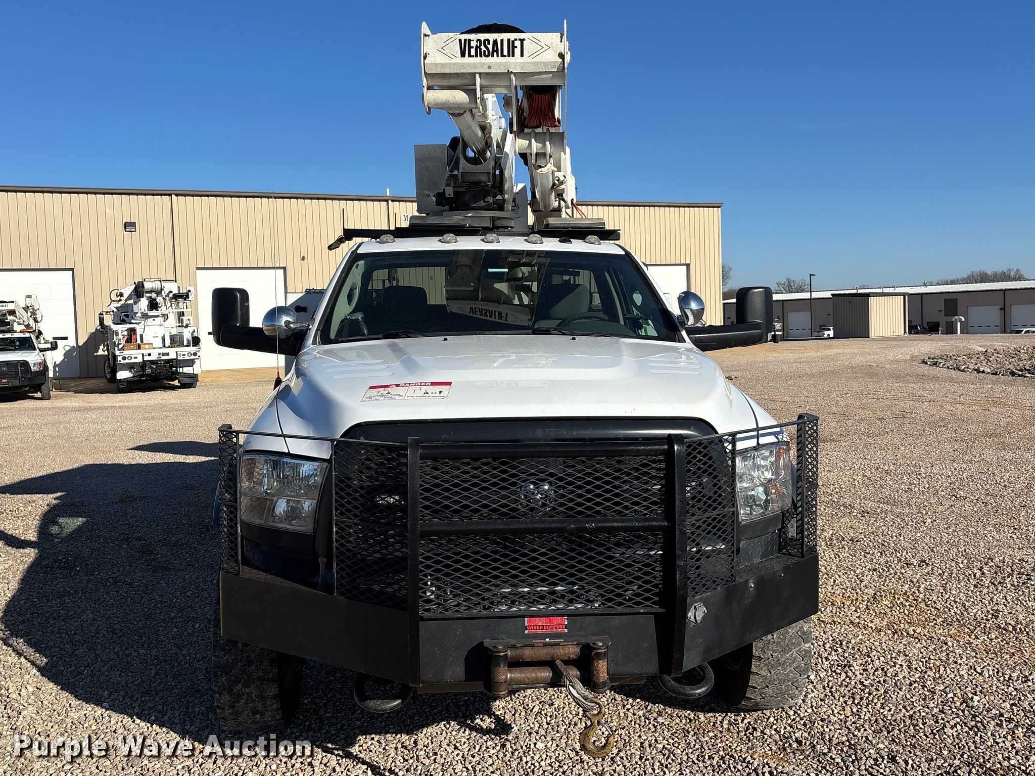 2016 RAM 5500 bucket truck. Miles: 165,173 on odometer, Miles or hours may vary, unit still in use, VIN: 3C7WRNBL8GG251555, Unit #: 20. Engine Displacement: 6.7L, Cylinders: 6, Fuel type: Diesel. Transmission Automatic. Chassis Four wheel drive, Axles: Single, Suspension: Spring, Brakes: Hydraulic, PTO, GVWR: 19,500 lbs. Interior AC, Heat, Heated mirrors, Power windows, Power locks, Cruise control, Backup camera, Auxiliary controls, Brake controller. Features Bed Utility bed, BrandFX, Serial: 1658091, Length: 11', Width: 8', Boom 2016 Versalift VST 40I, Serial: KW160090, Boom type: Articulating, Insulated, Telescopic, Elevator man basket, Boom controls Lower, Basket, Material handler, Warn Industrial Series 18 winch Capacity: 18,000 lbs. Tires Size: 245/70R19.5. Notes Owner's manual, Material handler boom parts missing, Dash warning indicator: Check engine, Center console missing. Missouri title. Title distribution may be delayed up to 14 days from verification of funds. Crawford Electric Cooperative. Bourbon, MO 65441