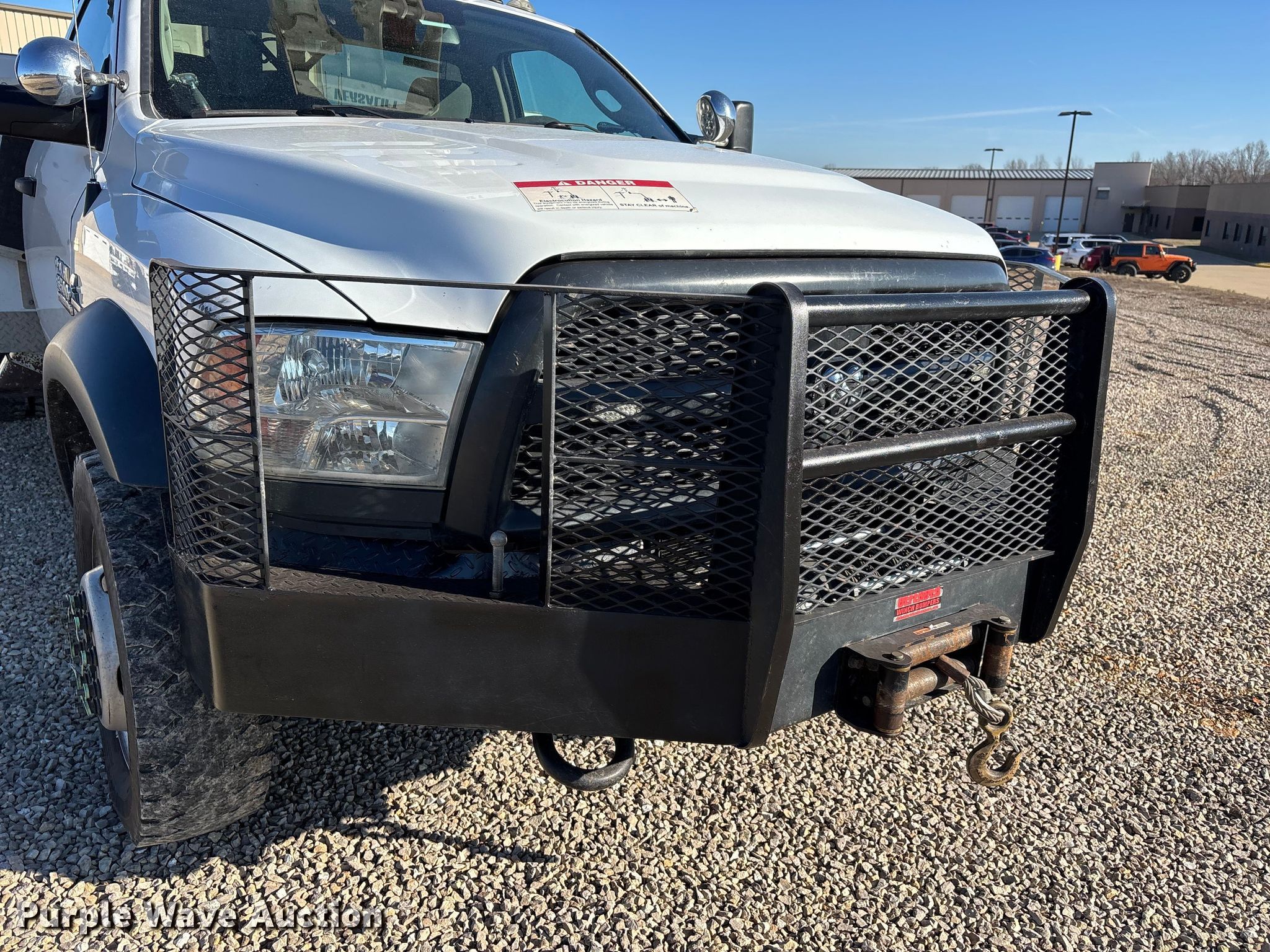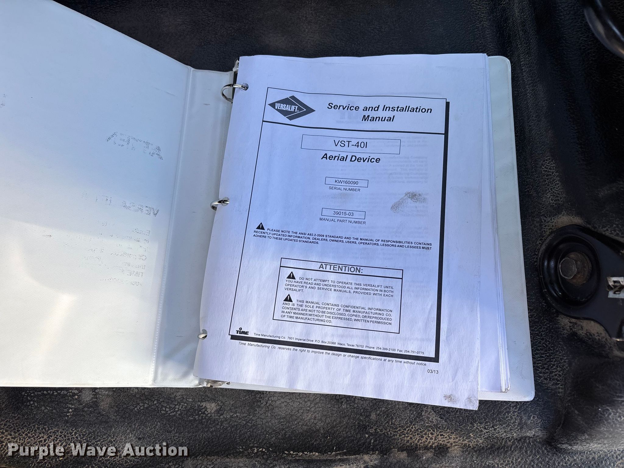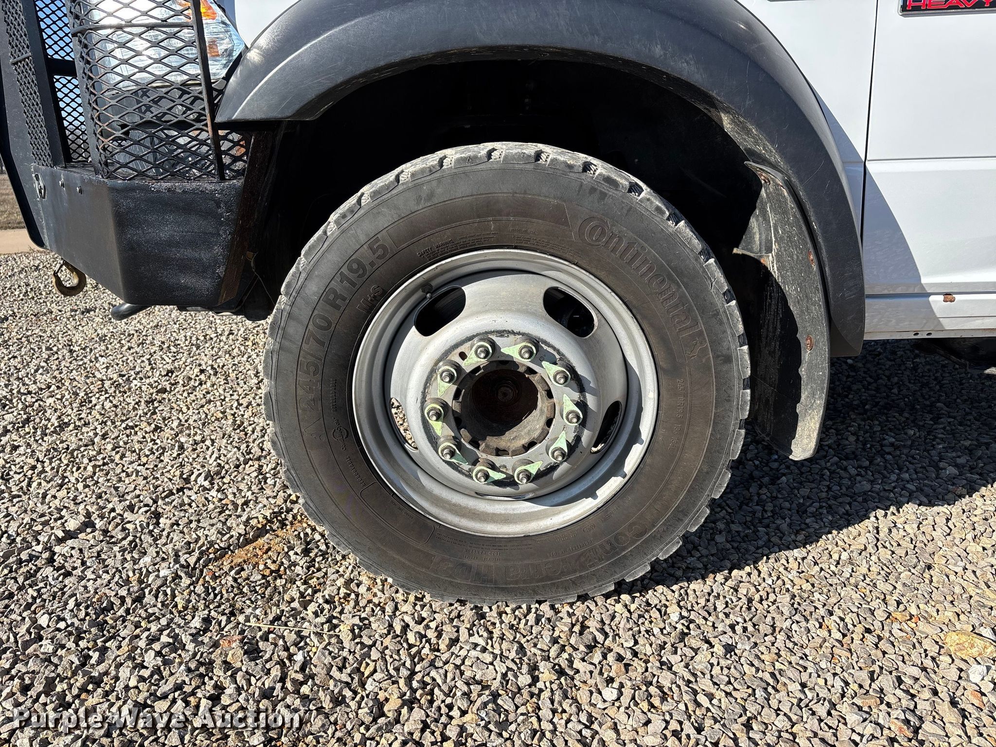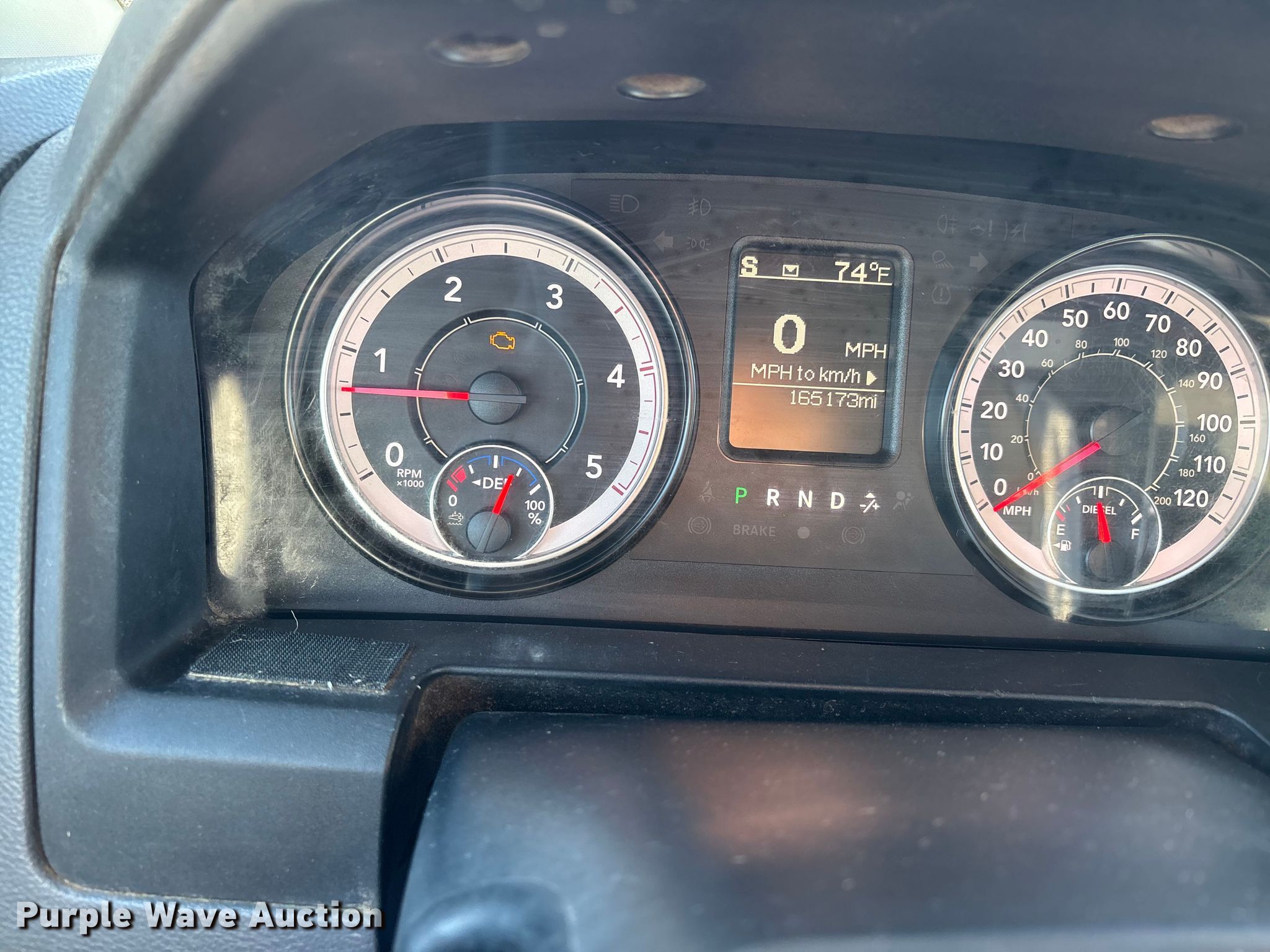2016 RAM 5500 bucket truck. Miles: 165,173 on odometer, Miles or hours may vary, unit still in use, VIN: 3C7WRNBL8GG251555, Unit #: 20. Engine Displacement: 6.7L, Cylinders: 6, Fuel type: Diesel. Transmission Automatic. Chassis Four wheel drive, Axles: Single, Suspension: Spring, Brakes: Hydraulic, PTO, GVWR: 19,500 lbs. Interior AC, Heat, Heated mirrors, Power windows, Power locks, Cruise control, Backup camera, Auxiliary controls, Brake controller. Features Bed Utility bed, BrandFX, Serial: 1658091, Length: 11', Width: 8', Boom 2016 Versalift VST 40I, Serial: KW160090, Boom type: Articulating, Insulated, Telescopic, Elevator man basket, Boom controls Lower, Basket, Material handler, Warn Industrial Series 18 winch Capacity: 18,000 lbs. Tires Size: 245/70R19.5. Notes Owner's manual, Material handler boom parts missing, Dash warning indicator: Check engine, Center console missing. Missouri title. Title distribution may be delayed up to 14 days from verification of funds. Crawford Electric Cooperative. Bourbon, MO 65441