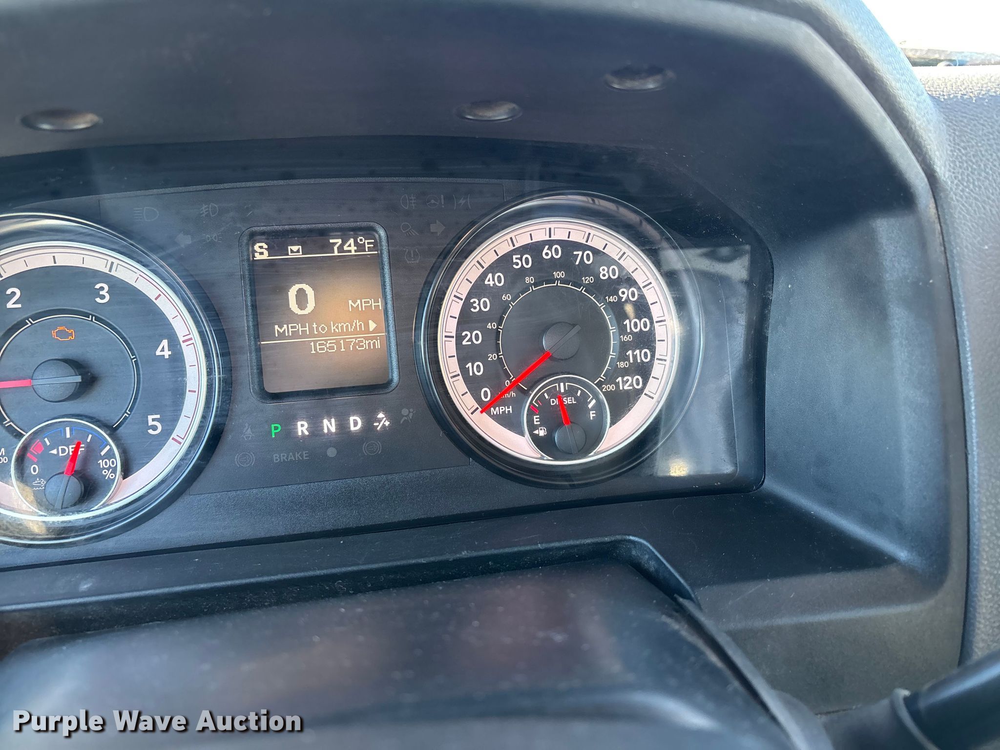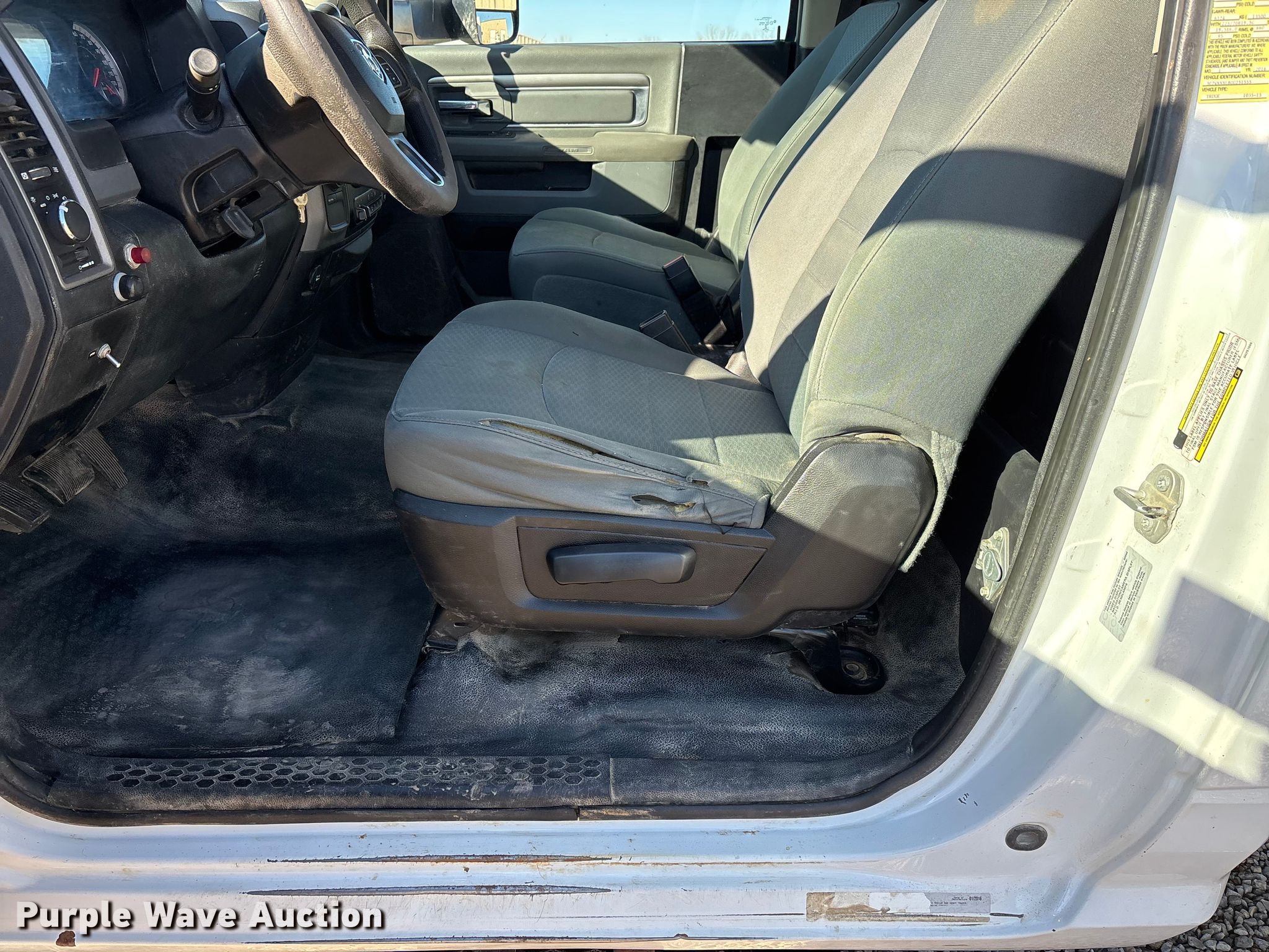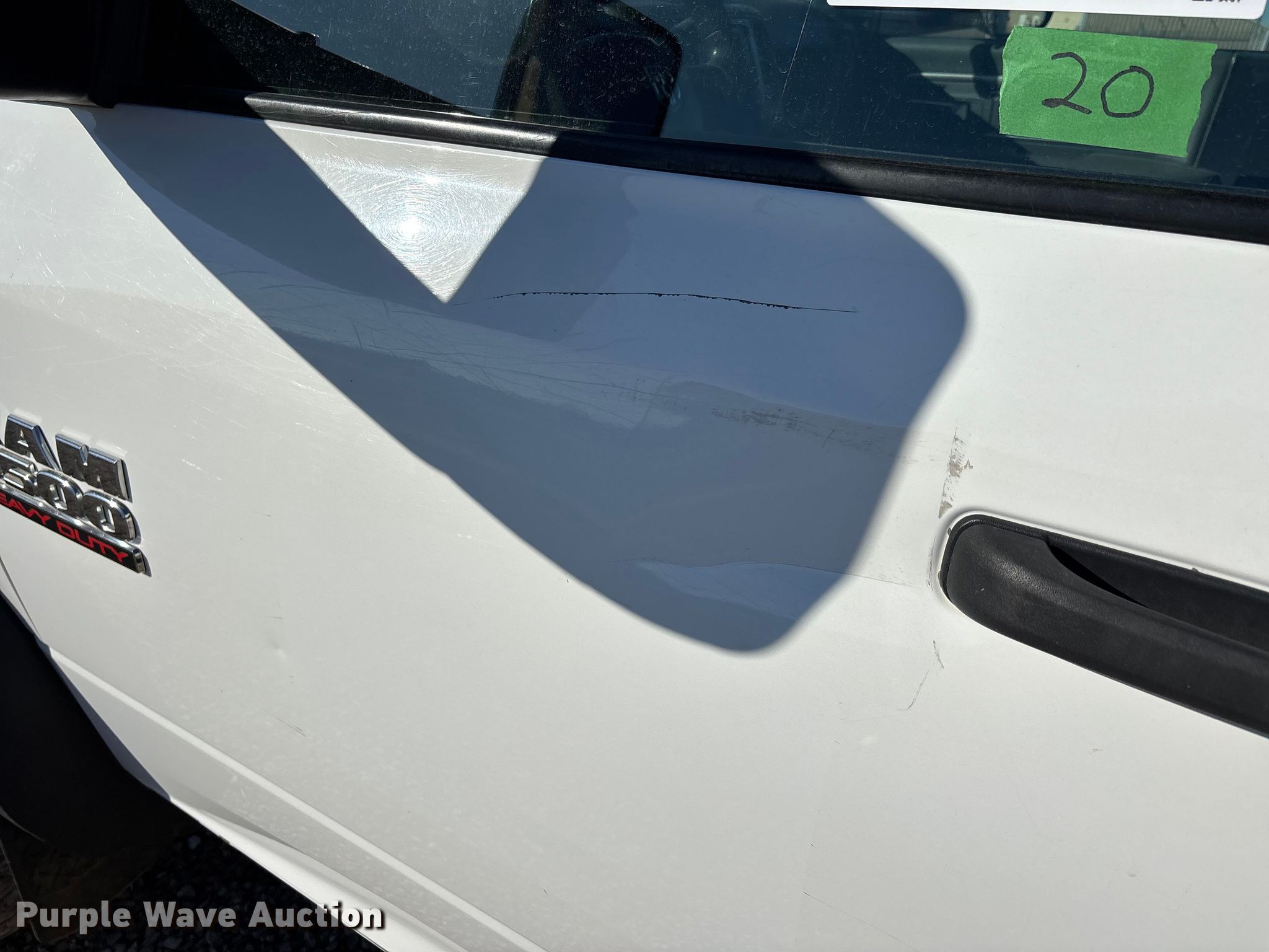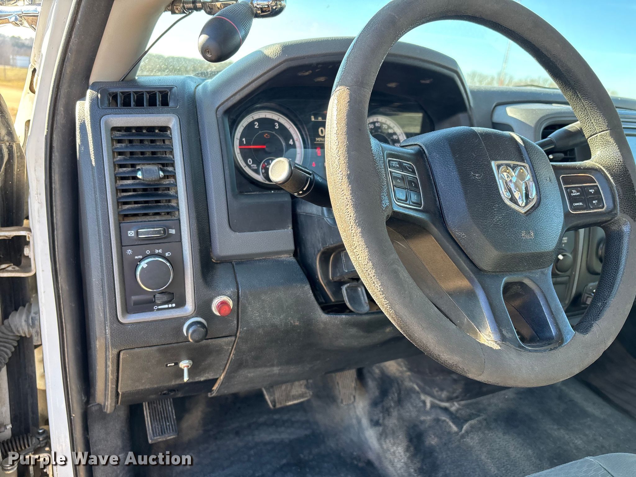 2016 RAM 5500 bucket truck. Miles: 165,173 on odometer, Miles or hours may vary, unit still in use, VIN: 3C7WRNBL8GG251555, Unit #: 20. Engine Displacement: 6.7L, Cylinders: 6, Fuel type: Diesel. Transmission Automatic. Chassis Four wheel drive, Axles: Single, Suspension: Spring, Brakes: Hydraulic, PTO, GVWR: 19,500 lbs. Interior AC, Heat, Heated mirrors, Power windows, Power locks, Cruise control, Backup camera, Auxiliary controls, Brake controller. Features Bed Utility bed, BrandFX, Serial: 1658091, Length: 11', Width: 8', Boom 2016 Versalift VST 40I, Serial: KW160090, Boom type: Articulating, Insulated, Telescopic, Elevator man basket, Boom controls Lower, Basket, Material handler, Warn Industrial Series 18 winch Capacity: 18,000 lbs. Tires Size: 245/70R19.5. Notes Owner's manual, Material handler boom parts missing, Dash warning indicator: Check engine, Center console missing. Missouri title. Title distribution may be delayed up to 14 days from verification of funds. Crawford Electric Cooperative. Bourbon, MO 65441