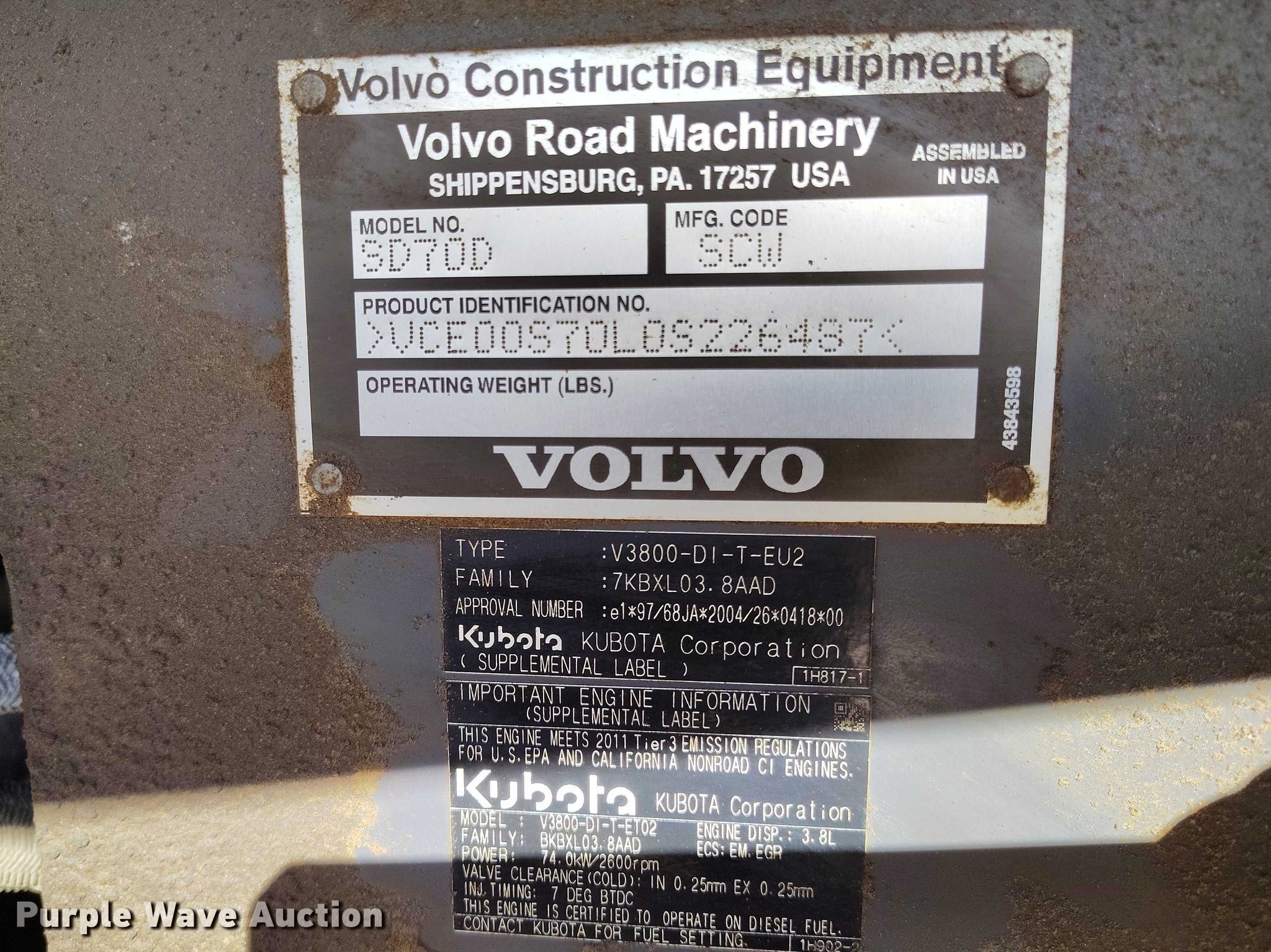 Take a look at this used 2012 Volvo SD70D single drum vibratory roller being sold on March 26th, 2026 in the Thursday March 26 Construction Equipment Auction made by Volvo. Take a look at all of the item information below or take a look at similar auctions for Rollers and Compaction.