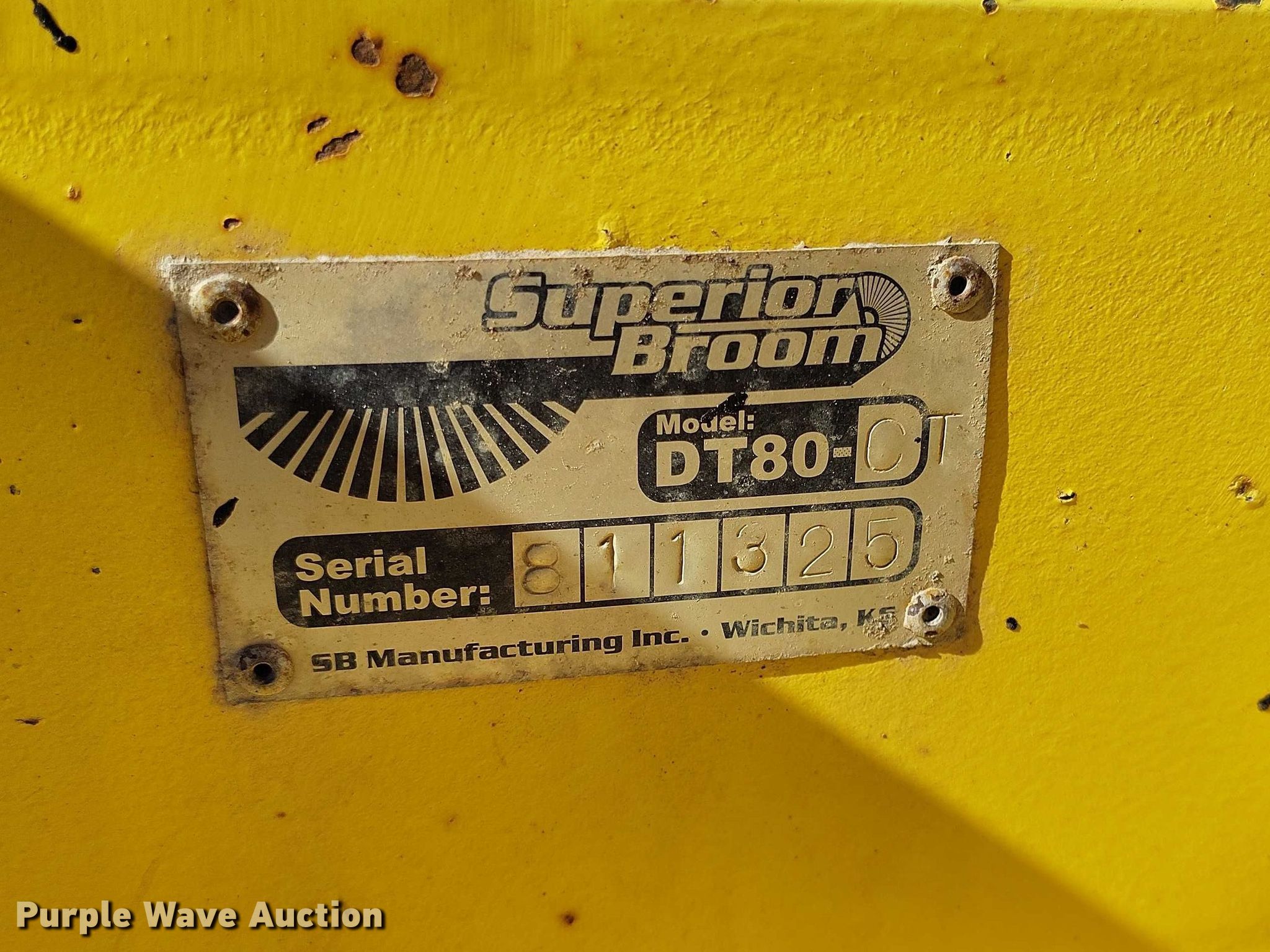 Purple Wave is selling a used Broom in Colorado. This item is a Superior DT80-CT broom with the following: Hours: 1,722 on meter, Serial: 812325, Unit #: 94.16W