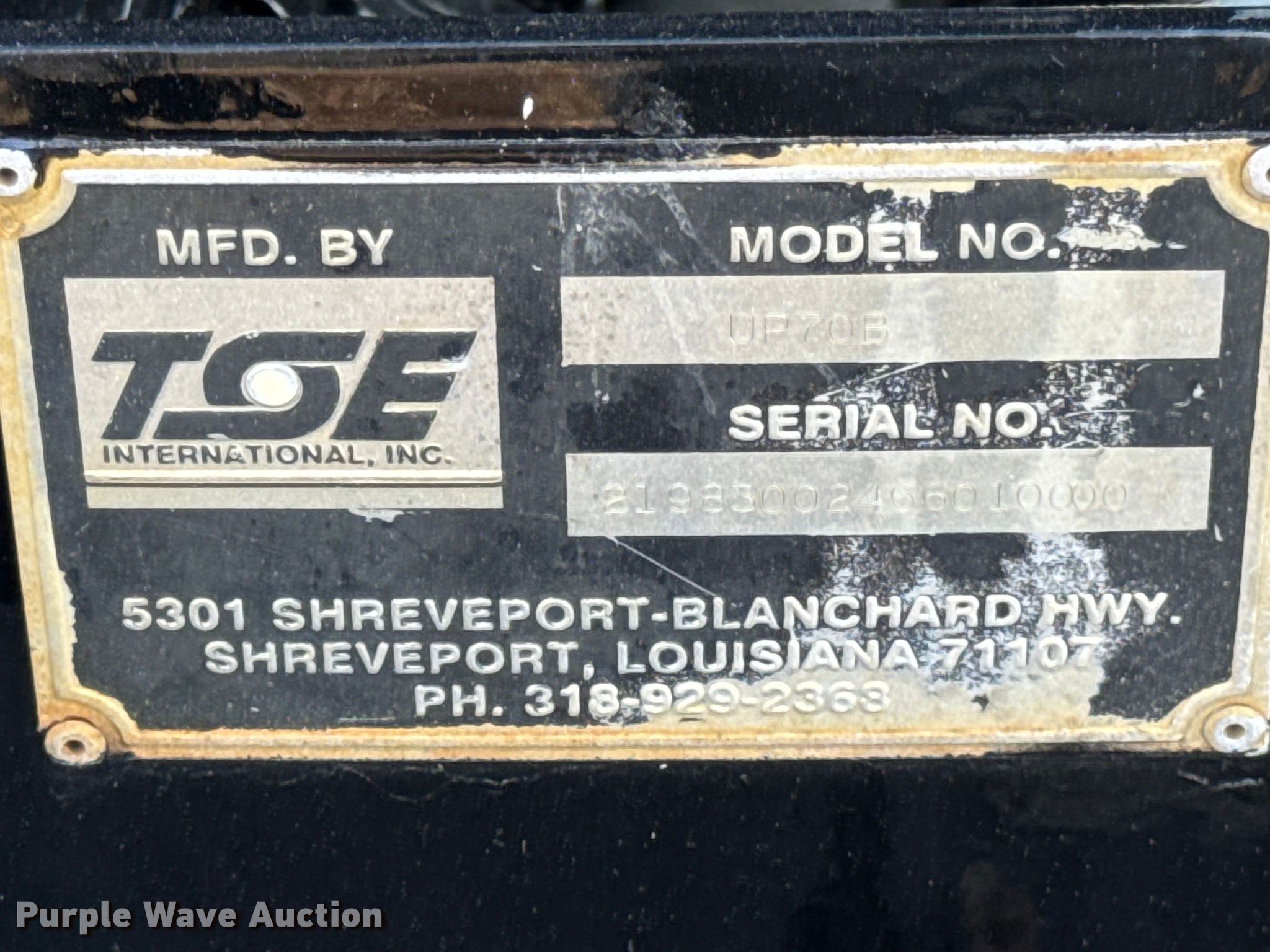 Purple Wave is selling a used Truck Part and Attach. in Illinois. This item is a TSE UP70B cable puller bed with the following: Serial: 21983002466010000
