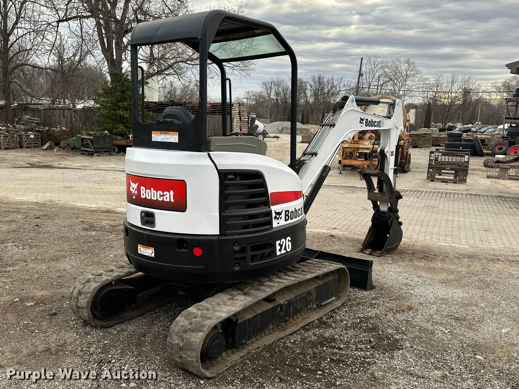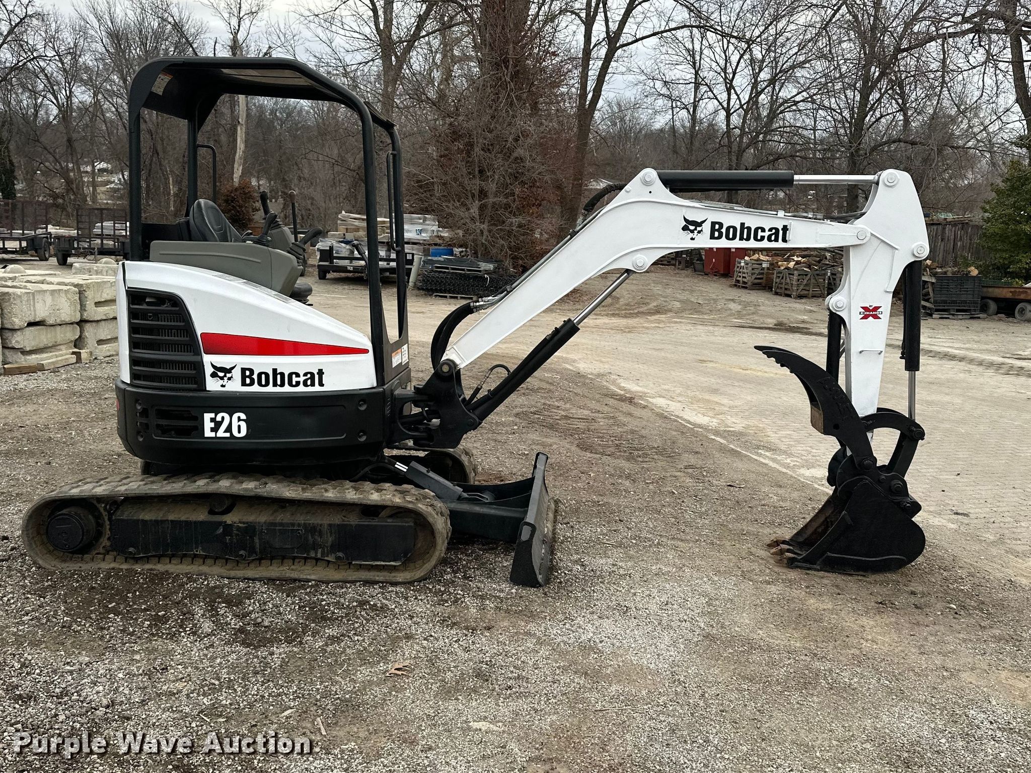 Take a look at this used 2014 Bobcat E26 mini excavator being sold on March 26th, 2026 in the Thursday March 26 Construction Equipment Auction made by Bobcat. Take a look at all of the item information below or take a look at similar auctions for Excavators.