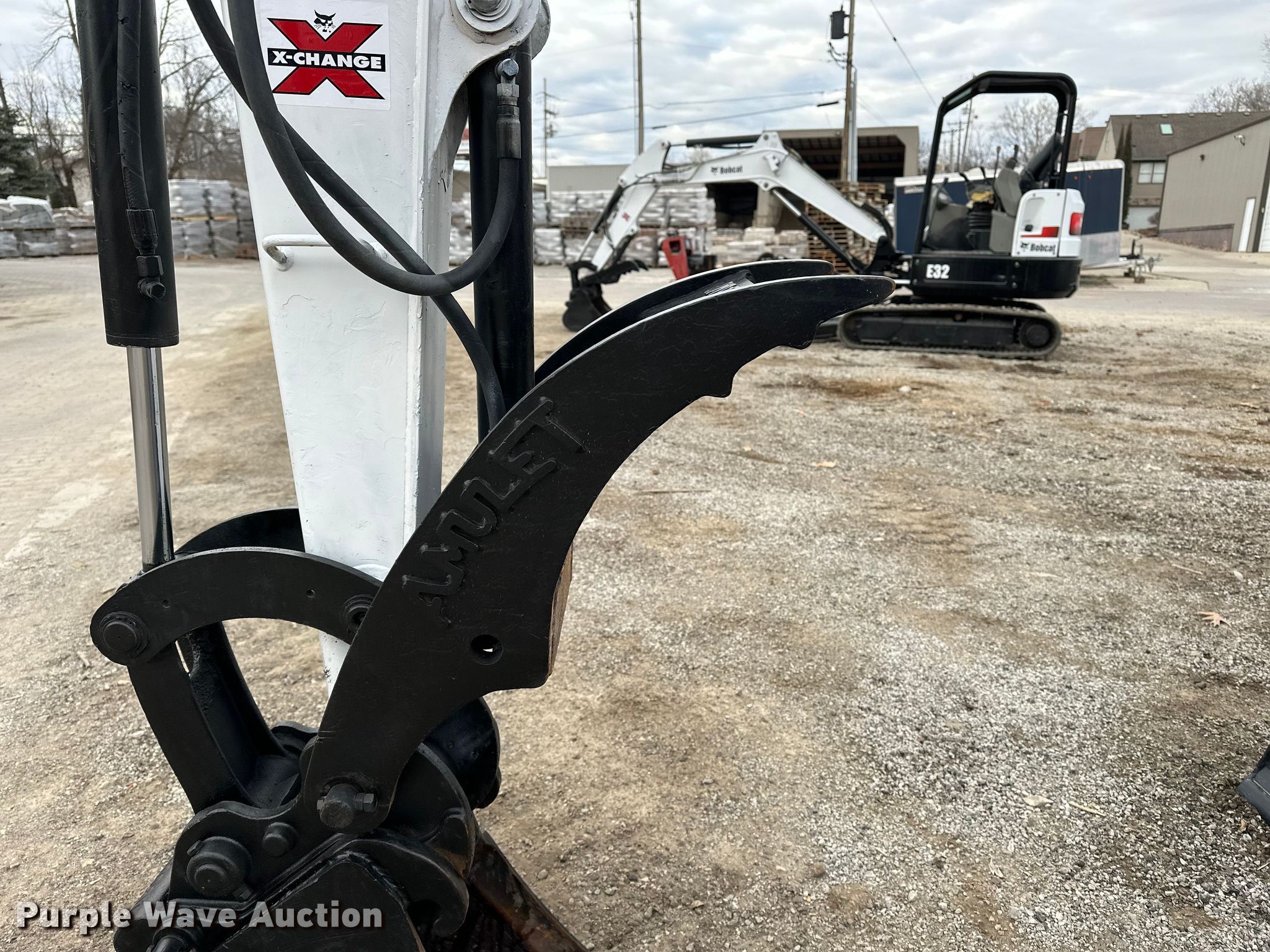 2014 Bobcat E26 mini excavator. Hours: 2,919 on meter, Serial: B33211628. Engine Kubota V1505-EF01, Displacement: 1.5L, Cylinders: 4, Fuel type: Diesel. Transmission Hydrostatic. Operators station OROPS. Features Standard, Two-way, Backfill blade Width: 60", Boom Swing, Stick Stick length: 44", Quick coupler: Mechanical Bobcat, Thumb: Hydraulic Amulet, Bucket Width: 12", Teeth: 3. Tracks Width: 12", Rubber. BC Hardscapes. Claycomo, MO 64119