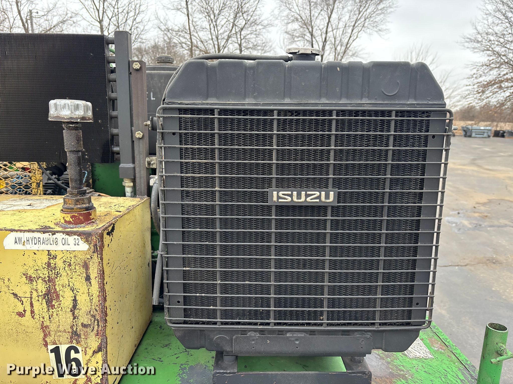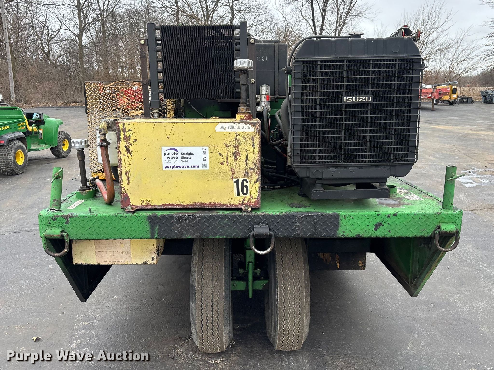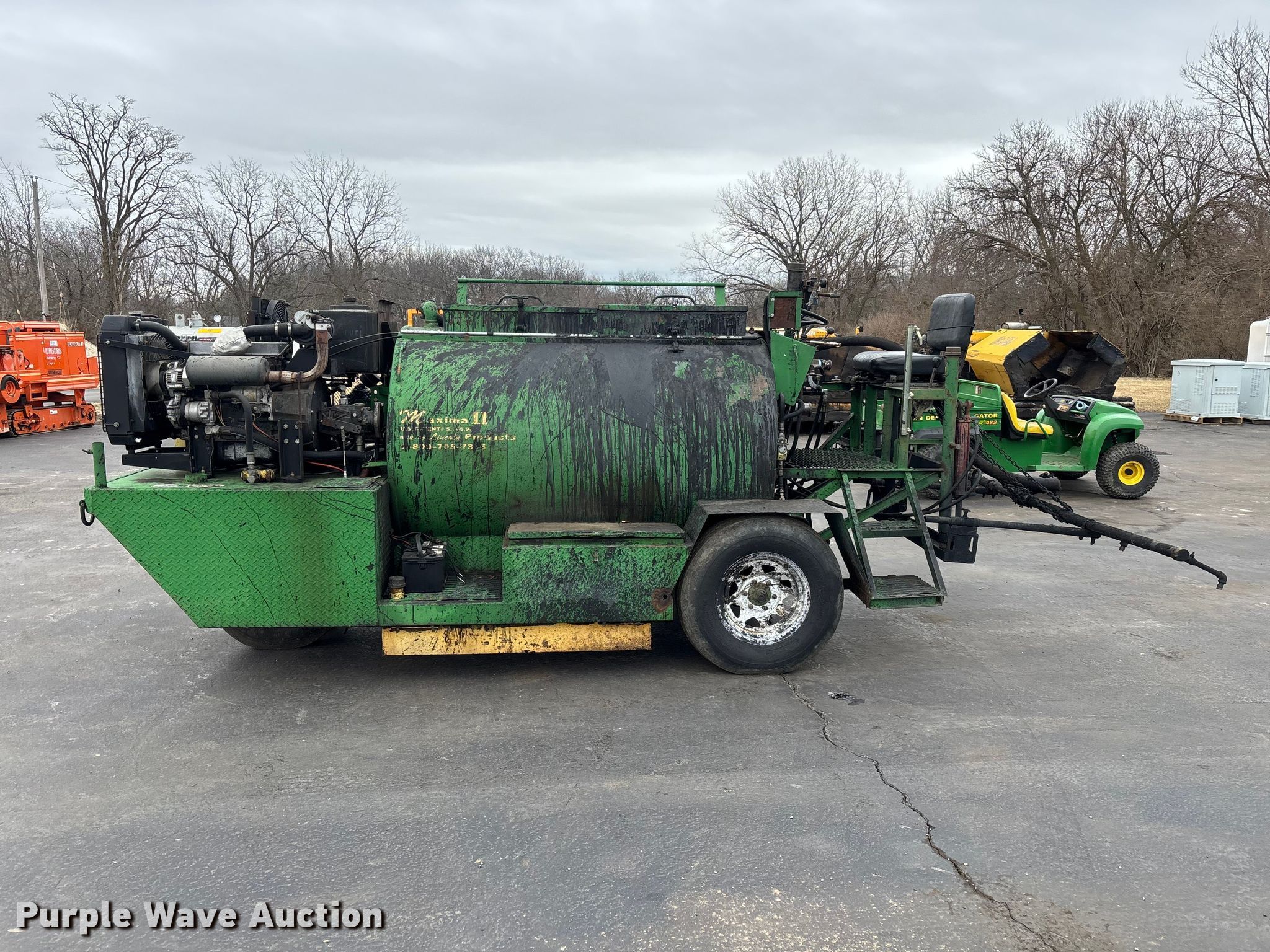 Maxima II seal coat machine. Dimensions. Overall Length: 16' 2", Width: 7' 11". Engine ISUZU, Cylinders: 4, Fuel type: Diesel. Transmission Hydrostatic. Features Spray bar: 95", Hydraulic driven air compressor, Diaphragm pump. Tires Front: 7.00-15LT, Rear: 7.50-16LT. Hoerr's Blacktop and Sealcoating. Trivoli, IL 61569