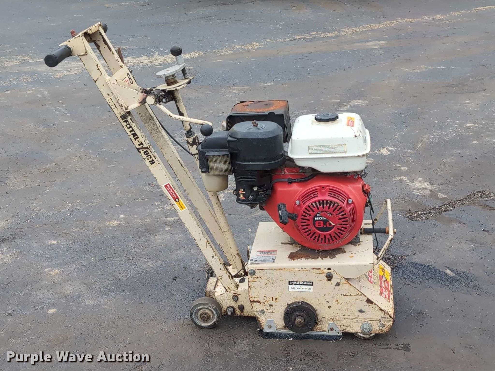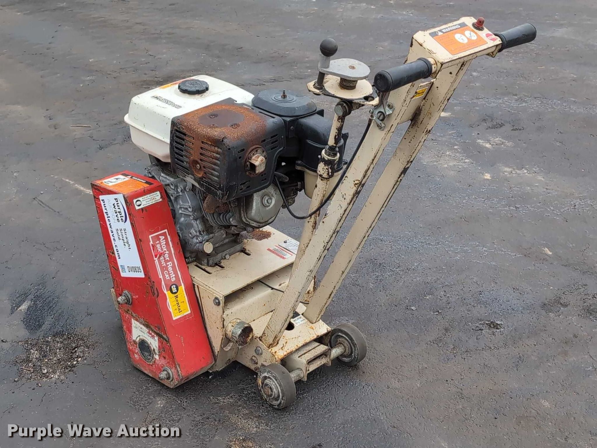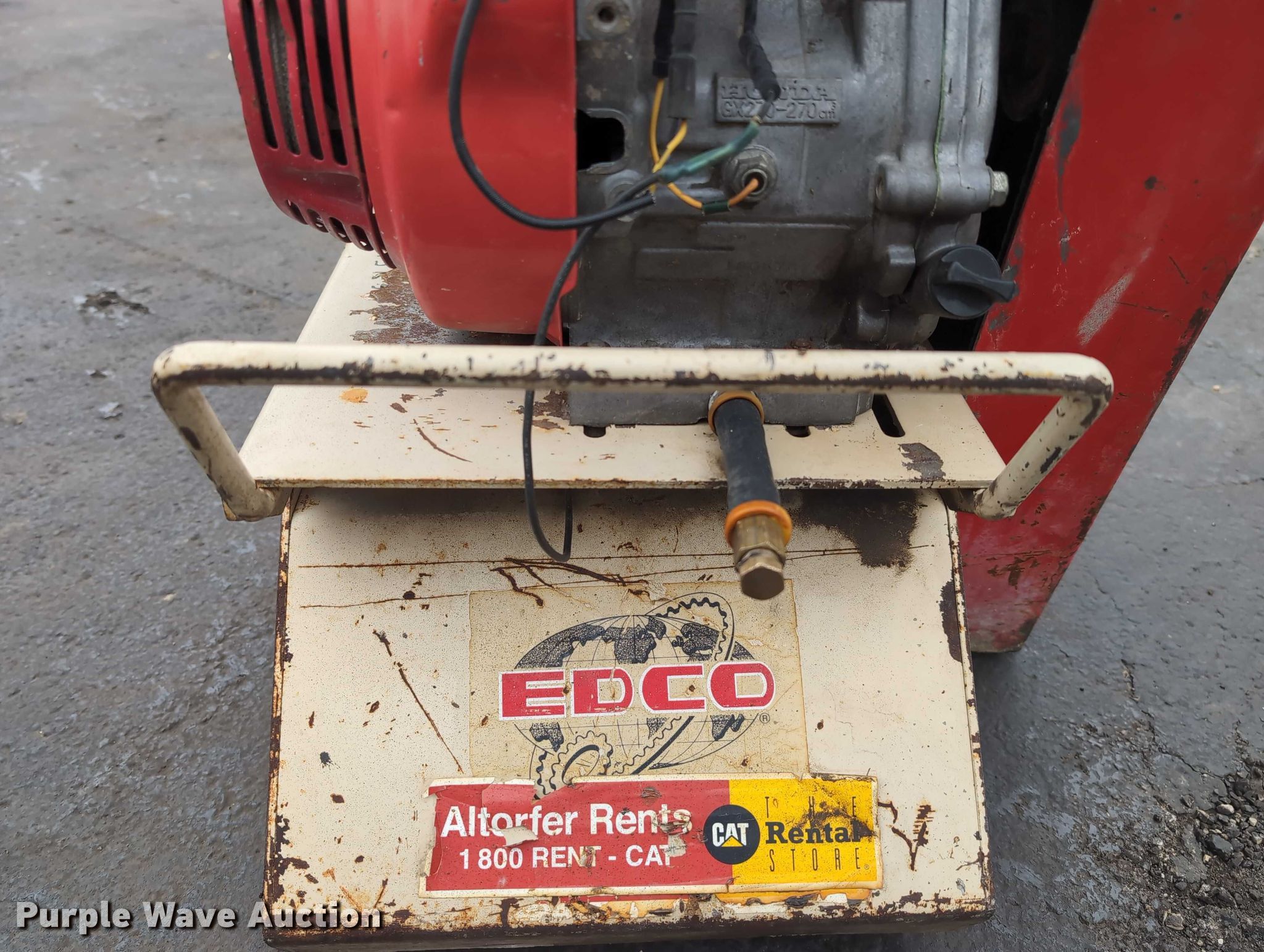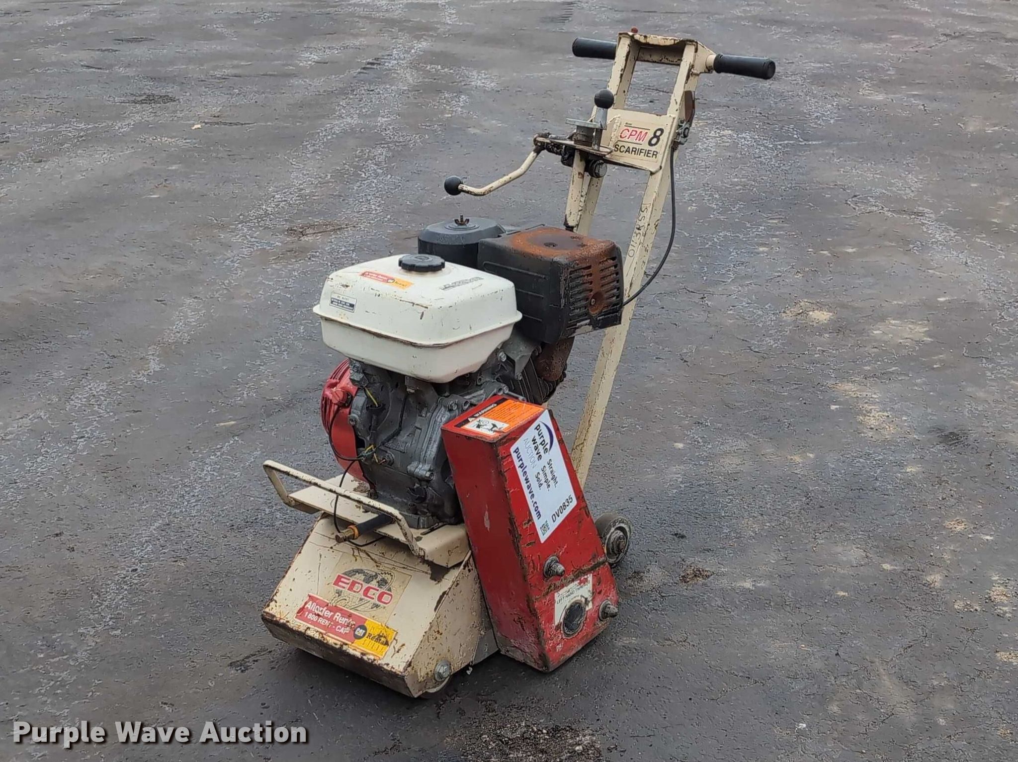 Purple Wave is selling a used Tools in Illinois. This item is a Edco CPM8-9H walk behind scarifier with the following: Honda GX270, Cylinder: Single, Fuel type: Gas, HP: 8, Scarifier drum width: 8", Serial: 13398