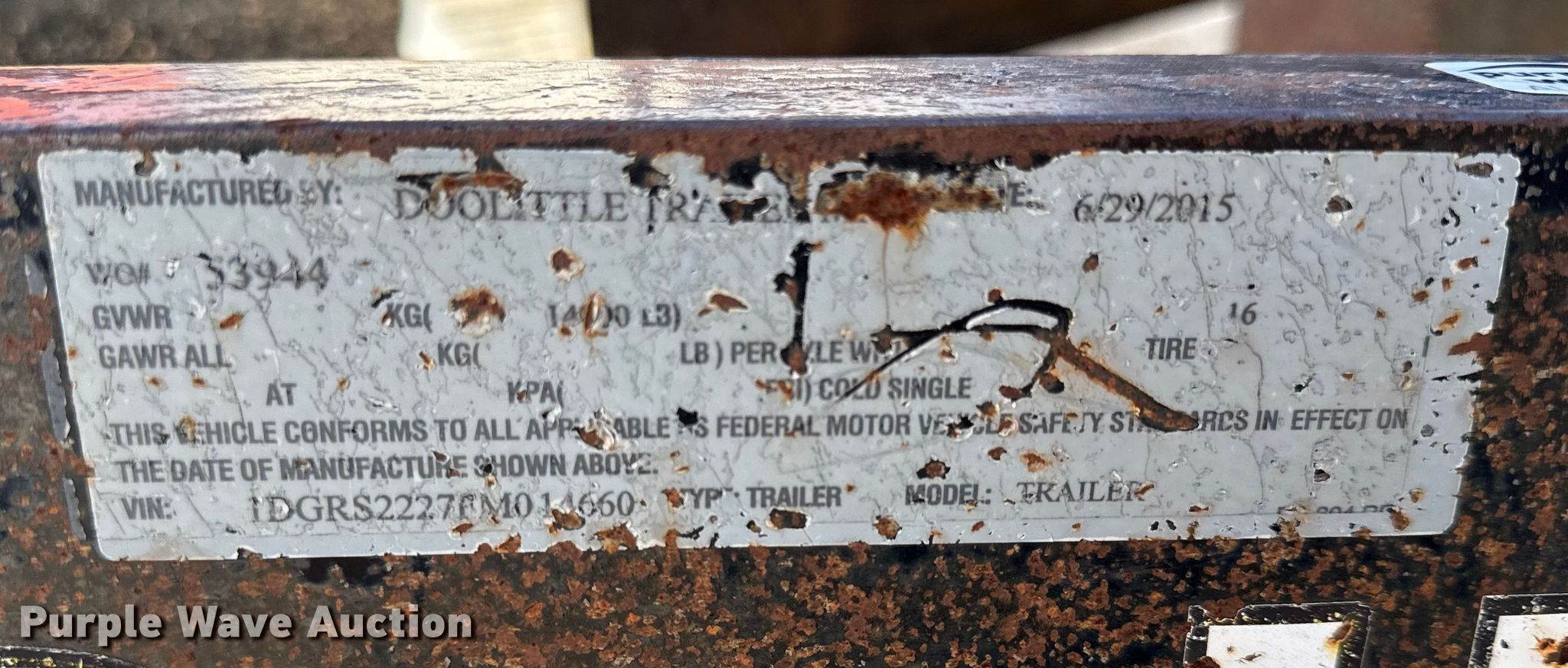 Purple Wave is selling a used Equip. Trailer in Kansas. This item is a 2015 Doolittle XTHD8222 equipment trailer with the following: VIN: 1DGRS2227FM014660