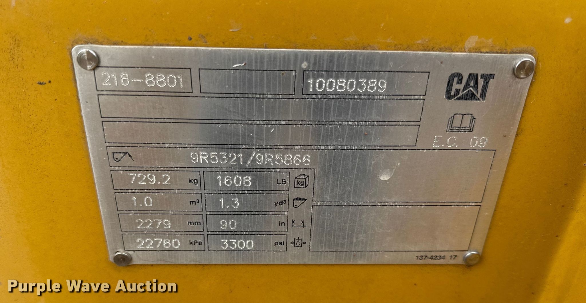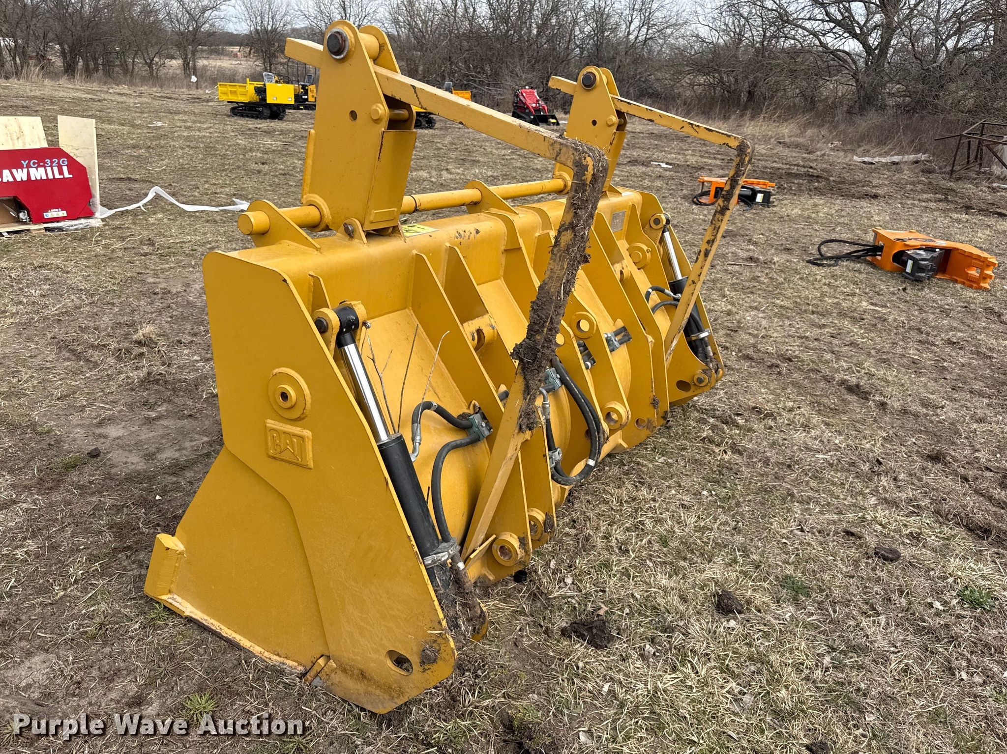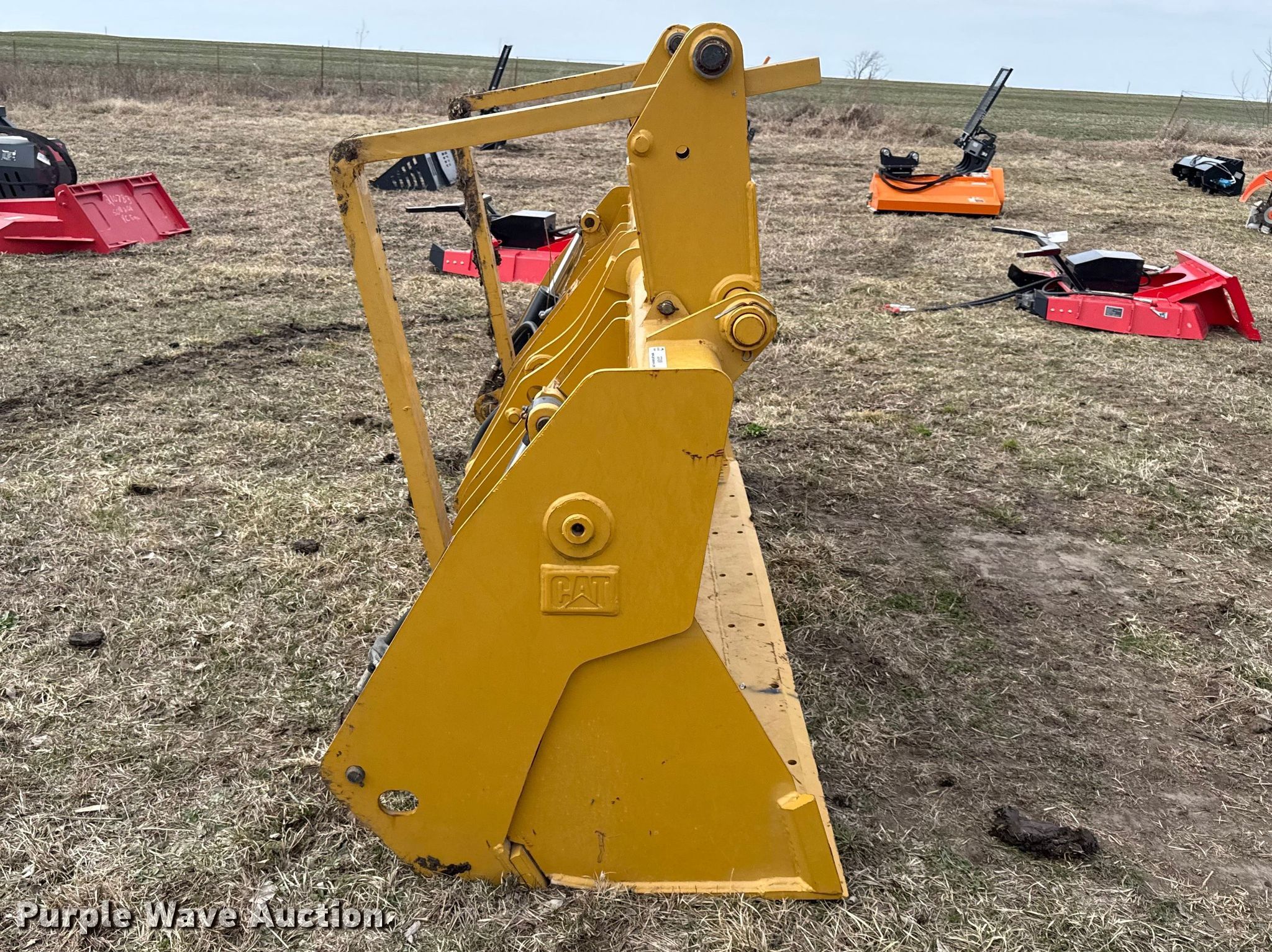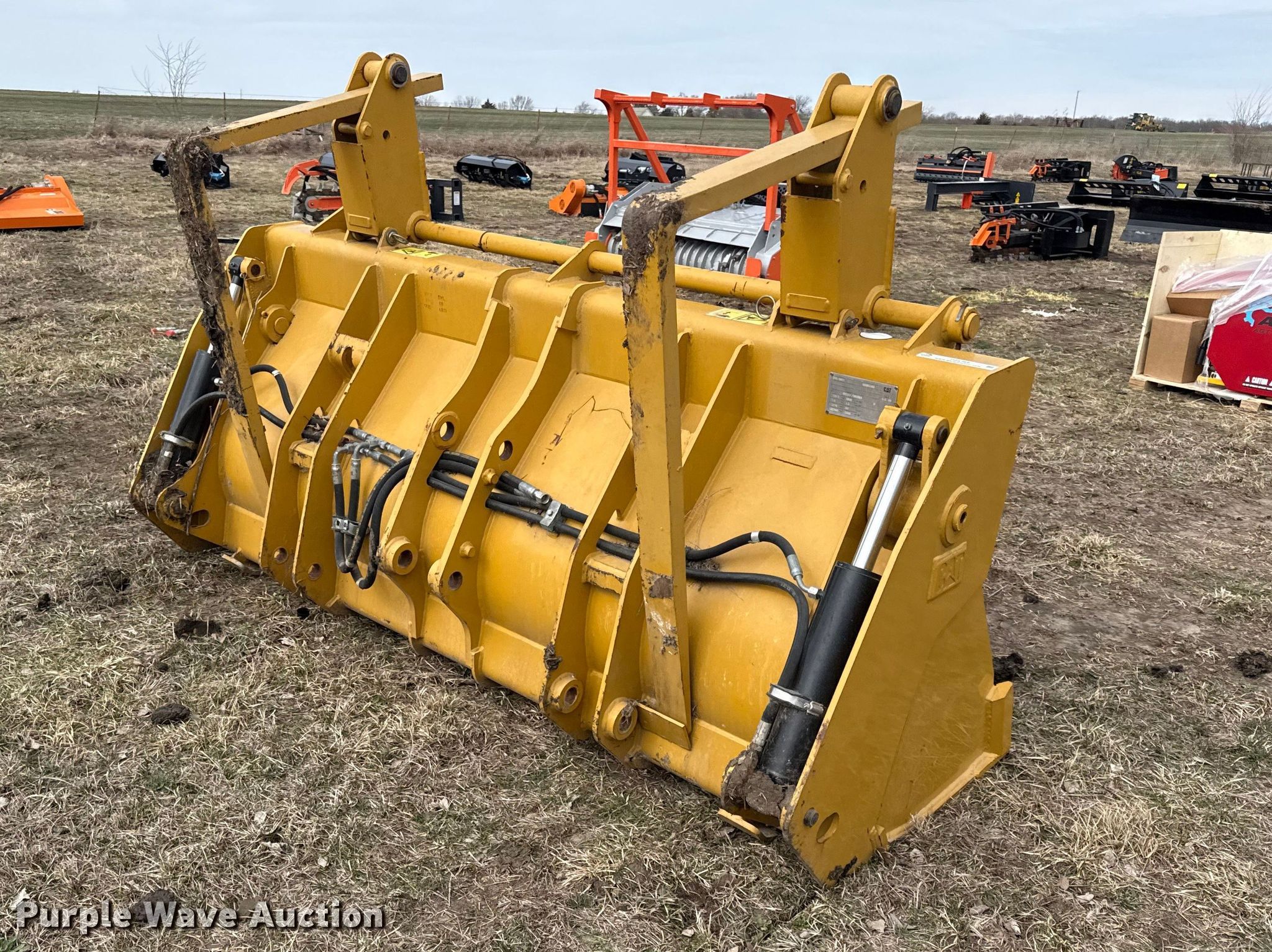 Purple Wave is selling a used Wheel Loader Attach. in Kansas. This item is a Caterpillar 216-8801 four-in-one wheel loader bucket with the following: Width: 90", Pallet forks: 42" L, Unused