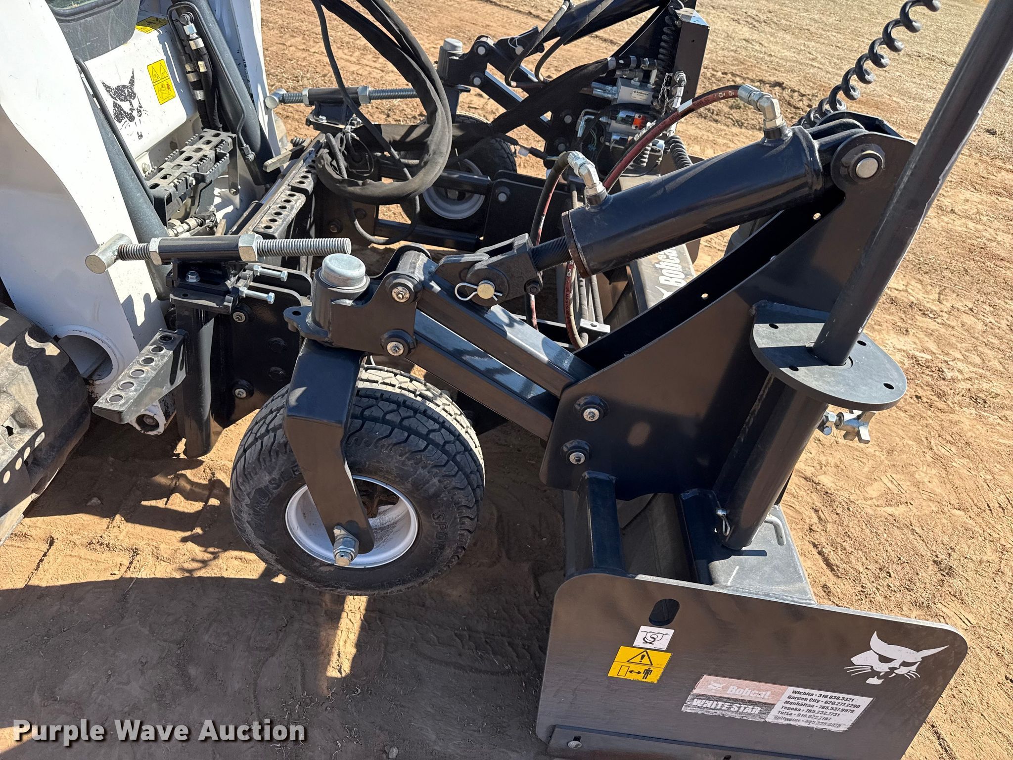 2024 Bobcat T740 tracked skid steer loader. Hours: 801 on meter, Serial: B6K111136. Engine Cylinders: 4, Fuel type: Diesel. Transmission Hydrostatic, Two speed travel. Operators station Enclosed cab, AC, Heat, Backup camera, Bucket control: Hand, Pattern changer, Electronic Monitoring System panel. Features Auxiliary hydraulics, Auxiliary electrical outlet, Quick coupler: Hydraulic, 2023 Bobcat HD84 box blade Serial: B4T900290, Bobcat grade control, Tire size: 215/60-8. Tracks Width: 18". American Iron Construction. Carrier, OK 73727