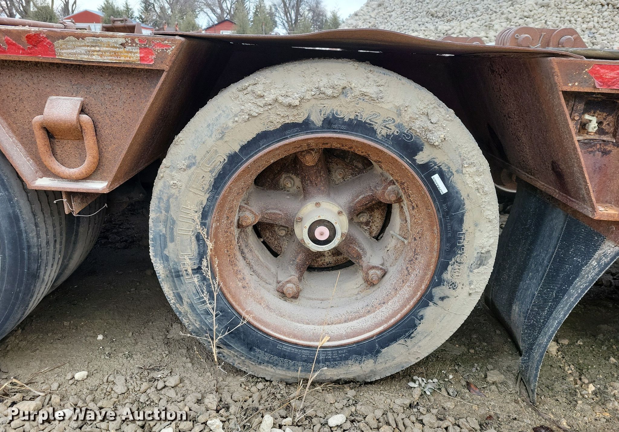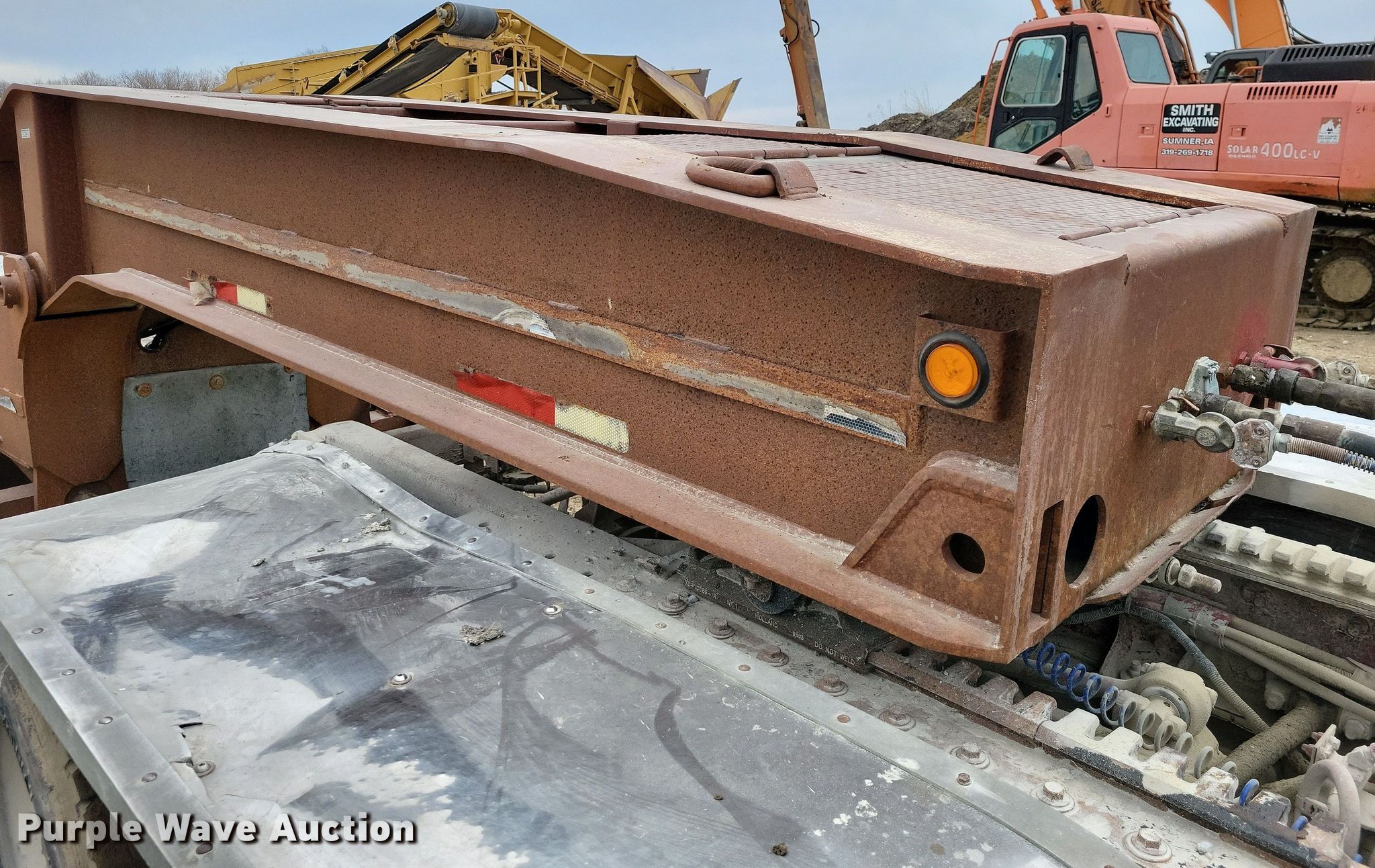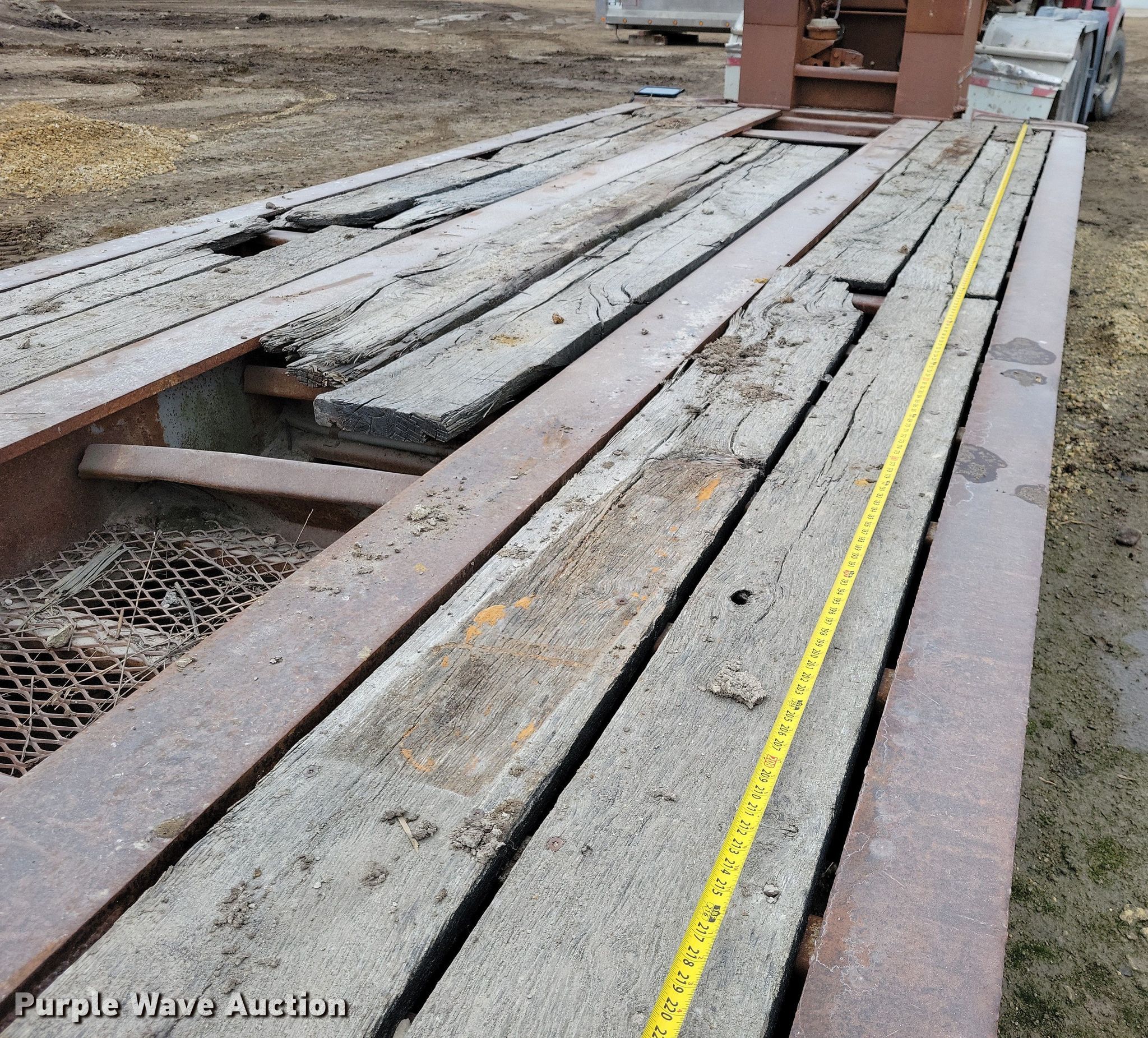 1990 Trail King TK100DG lowboy equipment trailer. VIN: IA046038. Dimensions Overall Length: 54', Width: 102", Deck Length: 21' 4", Width: 102", Deck height: 22" Length: 3' 9". Features Deck type: Wood, Outriggers: Swing-out Board size: 12", Neck type: Detachable, Hydraulic controls: Manual. Chassis Suspension: Air, Brakes: Air, Axles: Quad. Tires Steel wheels, Size: 255/70R22.5. Notes Truck not included, Outriggers rust damage. Iowa title. Title distribution may be delayed up to 14 days from verification of funds. Smith Excavating, Inc.. Sumner, IA 50674