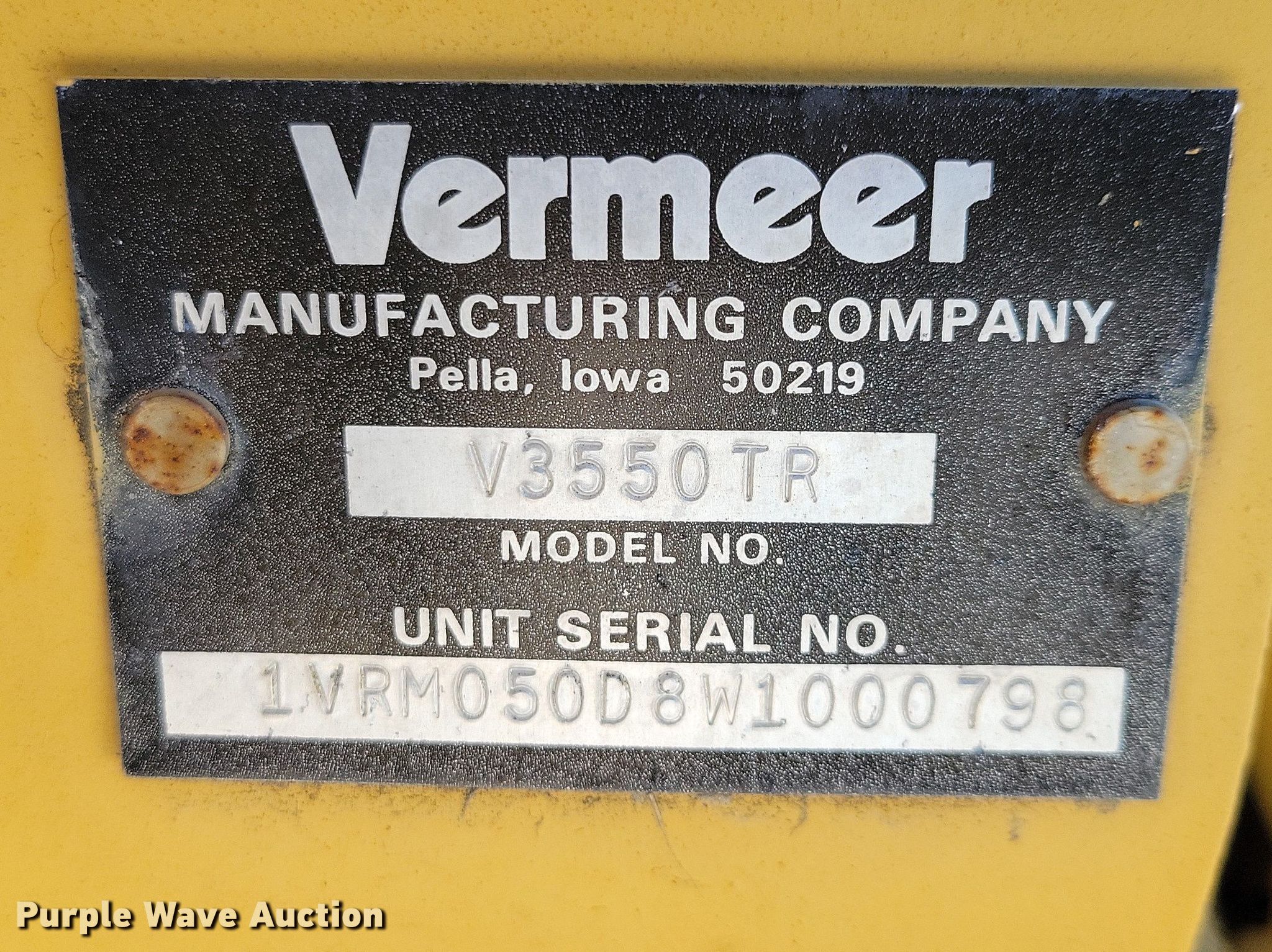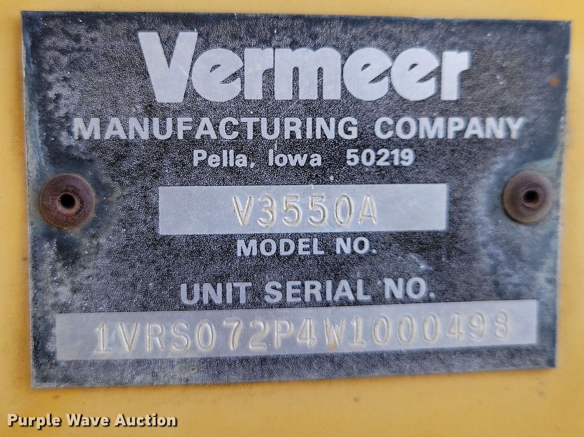 Purple Wave is selling a used Trencher or Rock Saw in Missouri. This item is a 1997 Vermeer V-3550A trencher with the following: Hours: 1,632 on meter, Serial: 1VRS072P4V1000498