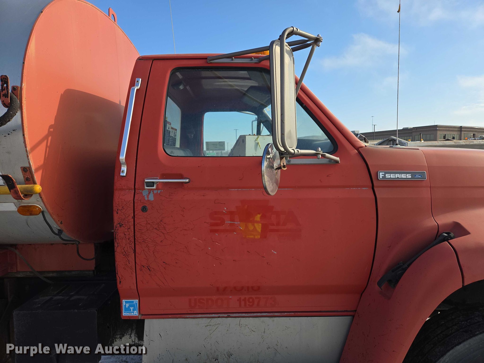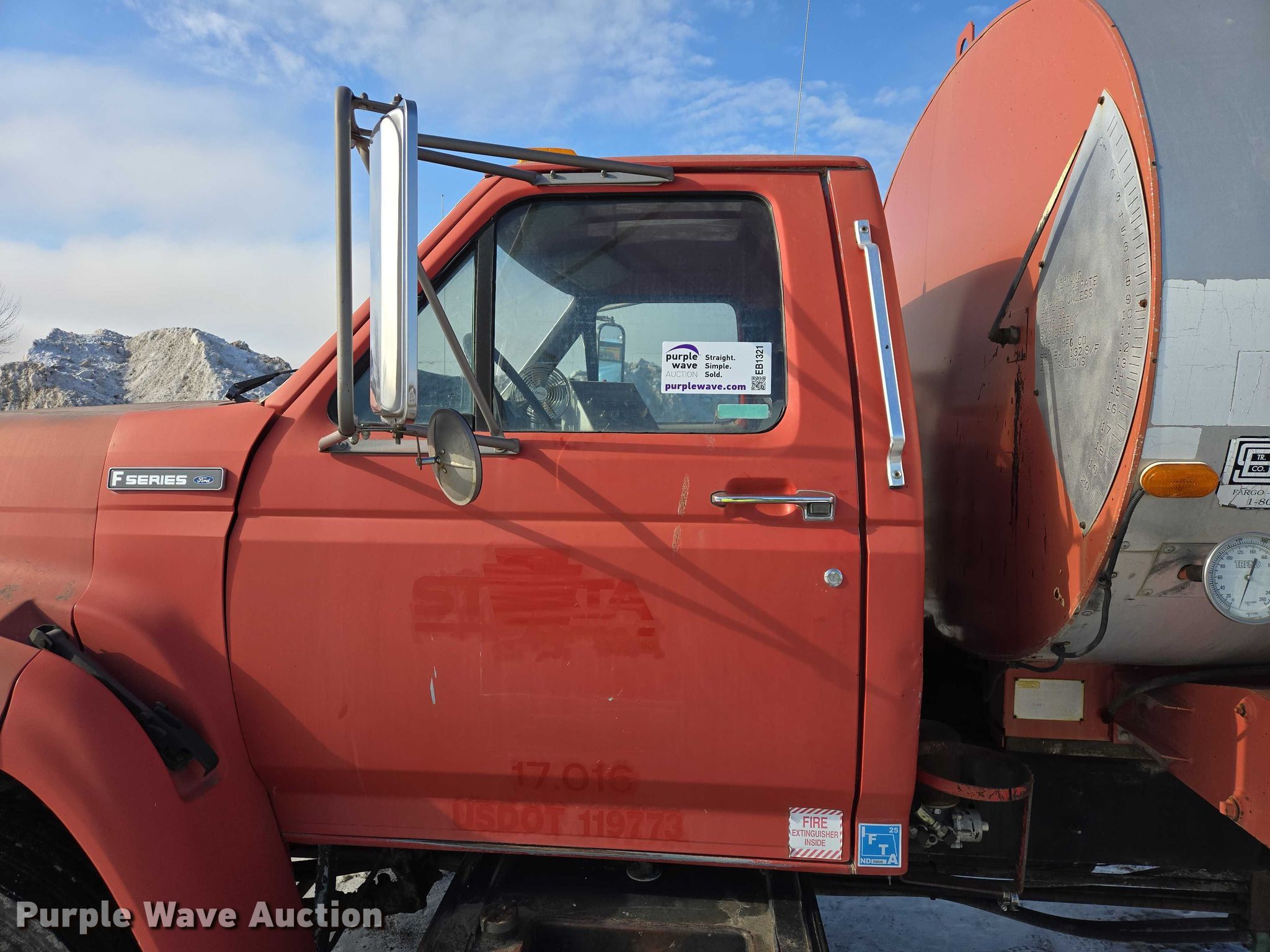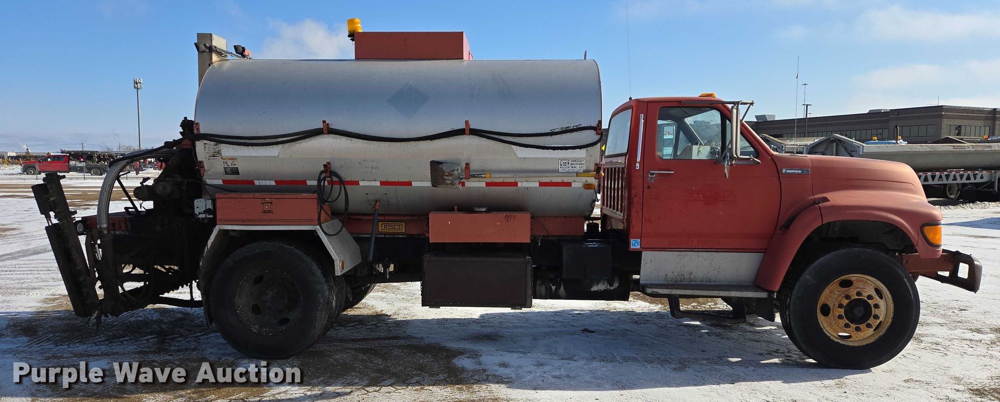 Purple Wave is selling a used Oil Distributor Truck in North Dakota. This item is a 1995 Ford F800 oil distributor truck with the following: Miles: 79,246 on odometer, Hours: 623 on meter, VIN: 1FDXF80C9SVA43680, Unit #: 48.031016-17016