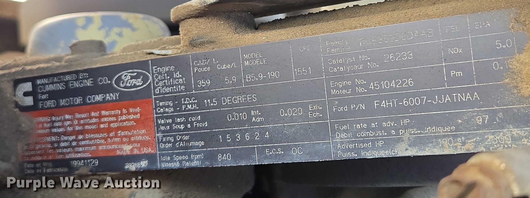 - Displacement: 5.9.L