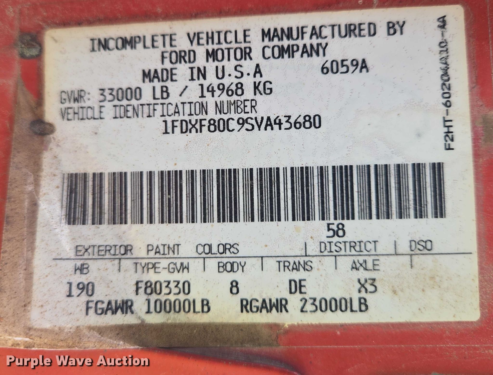 - VIN: 1FDXF80C9SVA43680