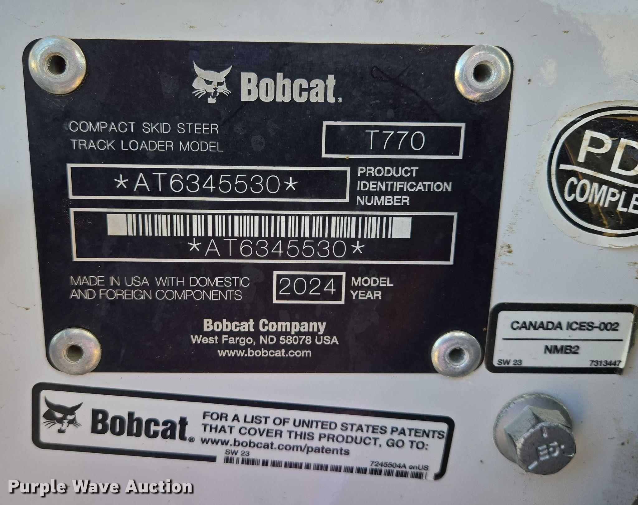 Purple Wave is selling a used Tracked Skid Steer Loader in South Dakota. This item is a 2024 Bobcat T770 tracked skid steer loader with the following: Hours: 1,648 on meter, Serial: AT6345530