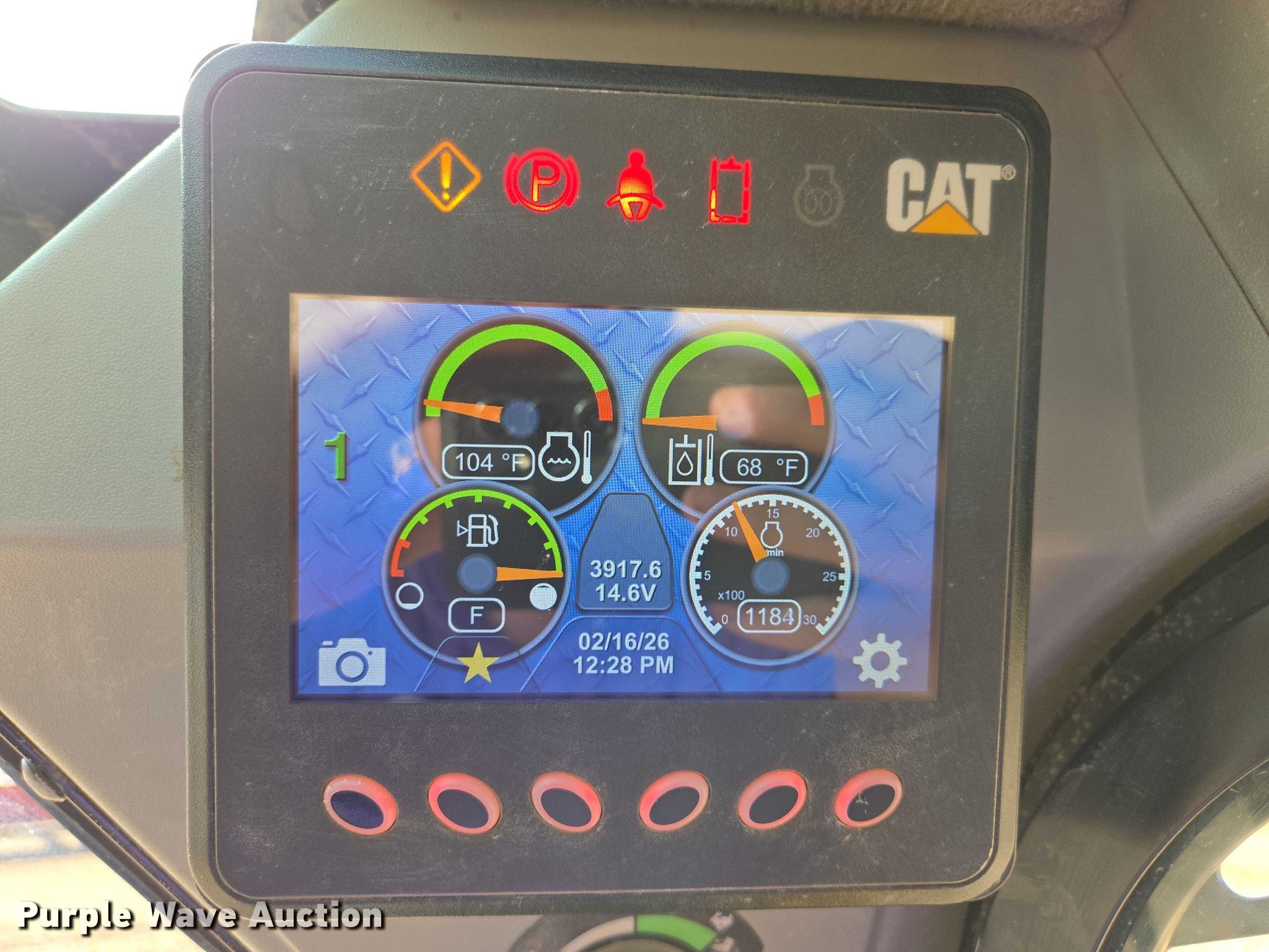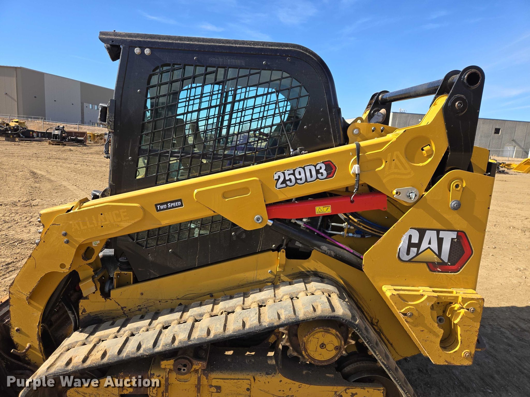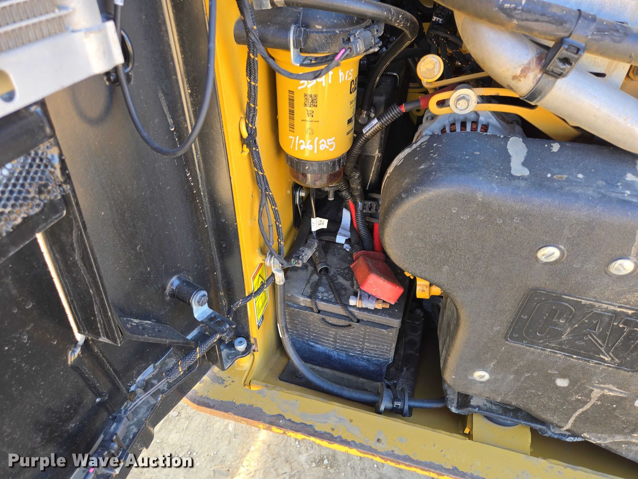 2022 Caterpillar 259D3 tracked skid steer loader. Hours: 3,918 on meter, Serial: CAT0259DVCW918611. Engine Caterpillar C3.3B-CR-T-EF04, Displacement: 3.3L, Cylinders: 4, Fuel type: Diesel. Transmission Hydrostatic, Two speed travel. Operators station Enclosed cab, AC, Heat, Backup camera, Bucket control: Hand, Electronic Monitoring System panel. Features Auxiliary hydraulics, Auxiliary electrical outlet, Quick coupler: Hydraulic, Counter weights, Bucket Caterpillar, Width: 74", Cutting edge: Bolt-on. Tracks Width: 15". Butler CAT. Sioux Falls, SD 57107