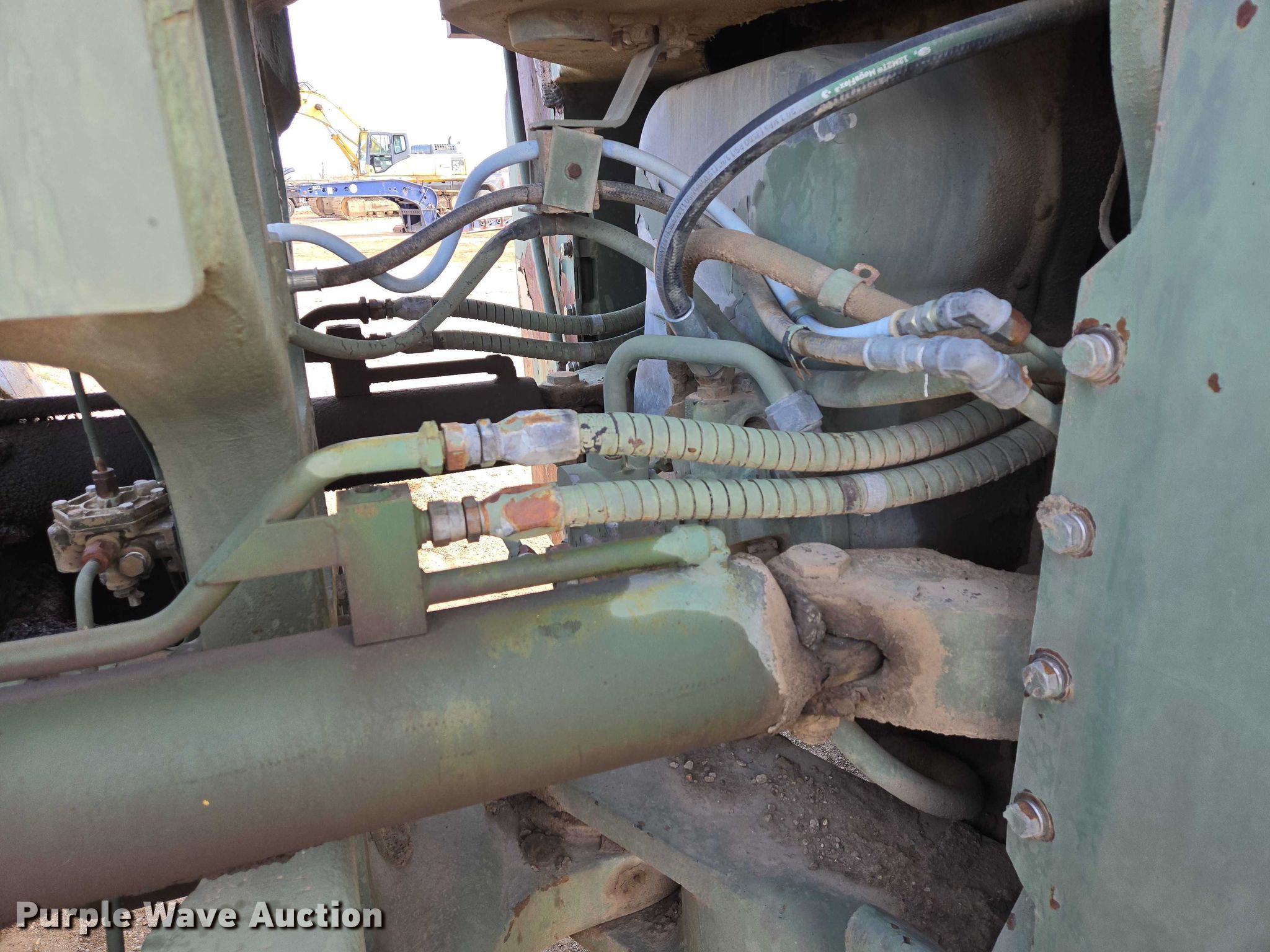1967 Clark 290M scraper. Hours: 1,016 on meter, Serial: 62590. Engine Cummins, Cylinders: 6, Fuel type: Diesel. Transmission Powershift, 4F - 2R. Chassis Brakes: Air. Operators station OROPS. Features Hydraulic lift, Scraper controls: Lever controls No. of controls: 3, Rear push block, 136" W blade. Tires Size: 29.5-29. CT Sibson Gravel. Beardsley, MN 56211