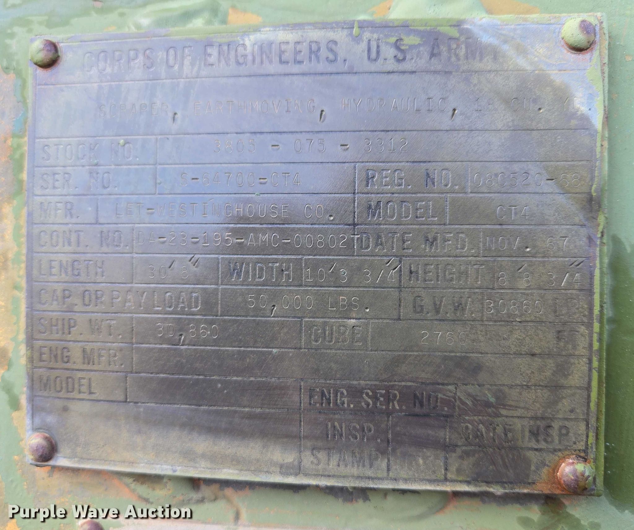 1967 Clark 290M scraper | Thursday March 26 Construction Equipment Auction